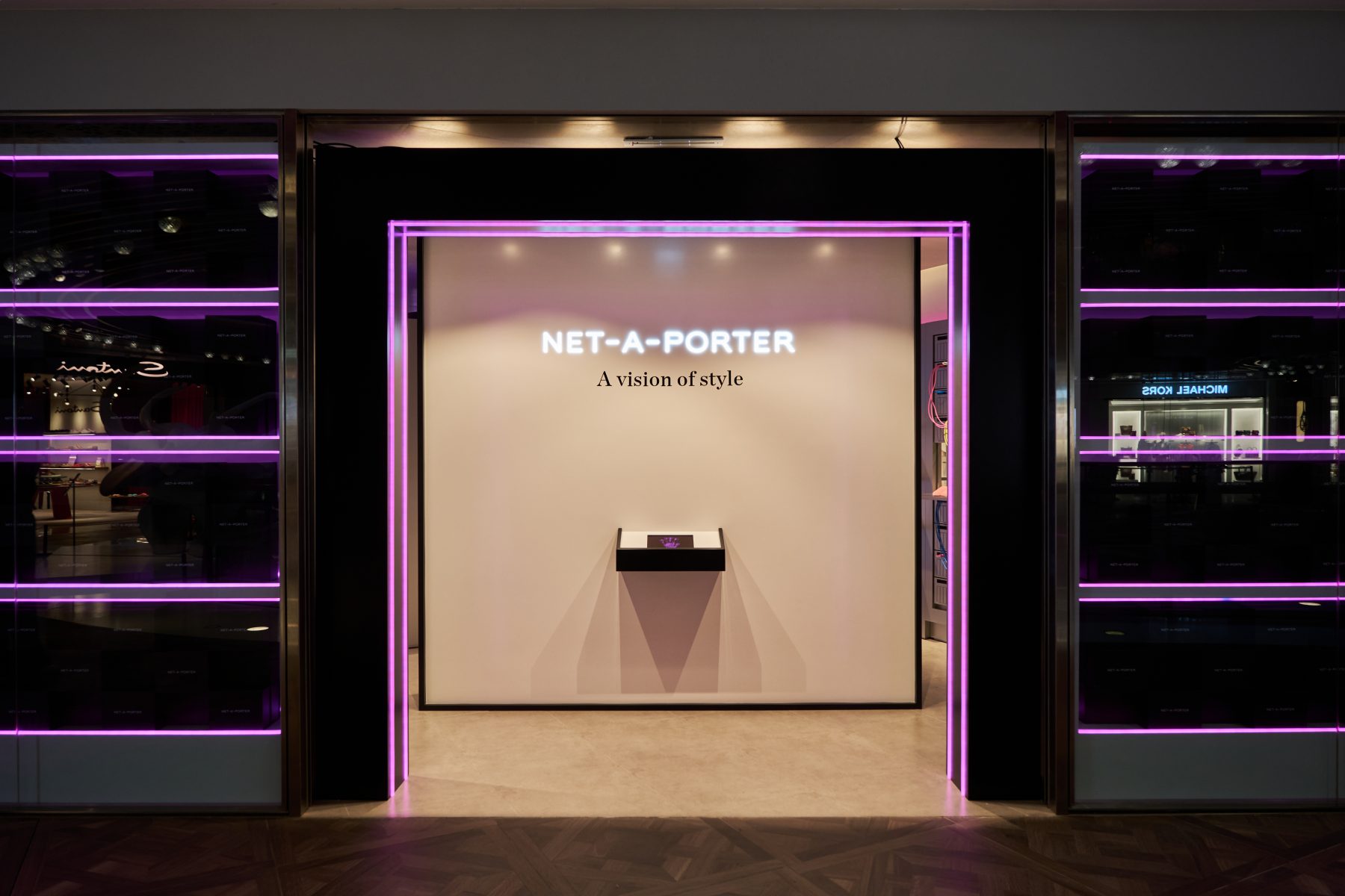 NET-A-PORTER 聯同a’strict為 K11 MUSEA 獨家打造誘人的粉紅國度,當中韓國媒體藝術家組合 a’strict更在展區內設置《瀑布 – 流沙》作品,以高清影像營造粉紅色流沙瀑布。