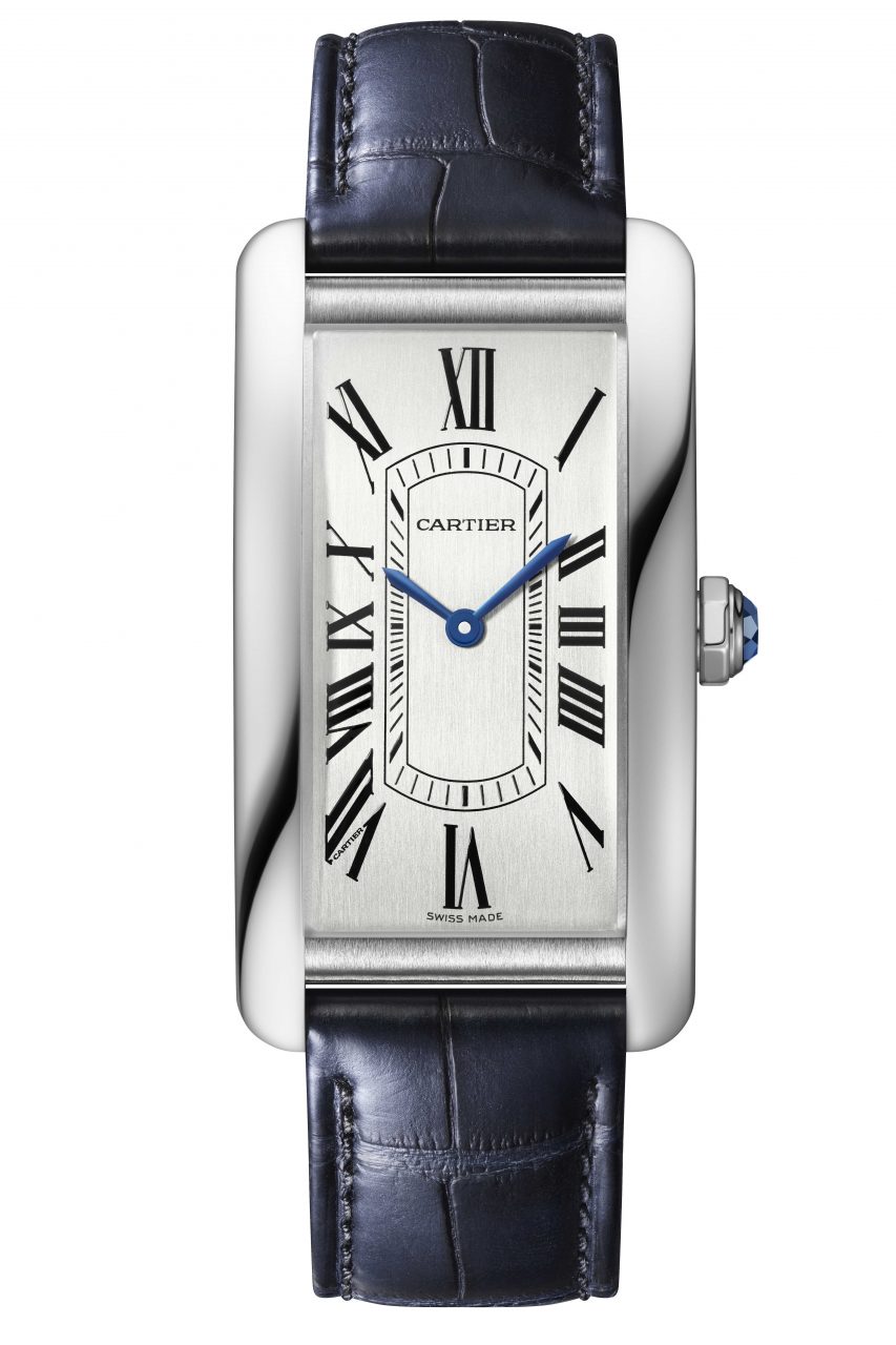 至於獲得較多嶄新演繹的,是於1989年面世的Tank Americaine,今年全新推出迷你(28 x 15.2毫米)、小型(35 x 19.4毫米)及大型款(44.4 x 24.4毫米)等不同版本。其特色弧形錶殼的設計靈感自然源於Tank Cintrée腕錶,今年更在錶盤、錶耳及錶帶作出不少微調,務求成就一個更纖薄更修長更流線更燙貼手腕的全新版本。錶殼主要以玫瑰金、白金及精鋼演繹,並可配皮革錶帶或金屬錶鏈,還有在錶殼焦點的左右兩邊連接錶耳的垂直面鑲嵌了鑽石的版本。小型及迷你款搭載石英機芯,大型款搭載全新1899 MC自動上鏈機芯。