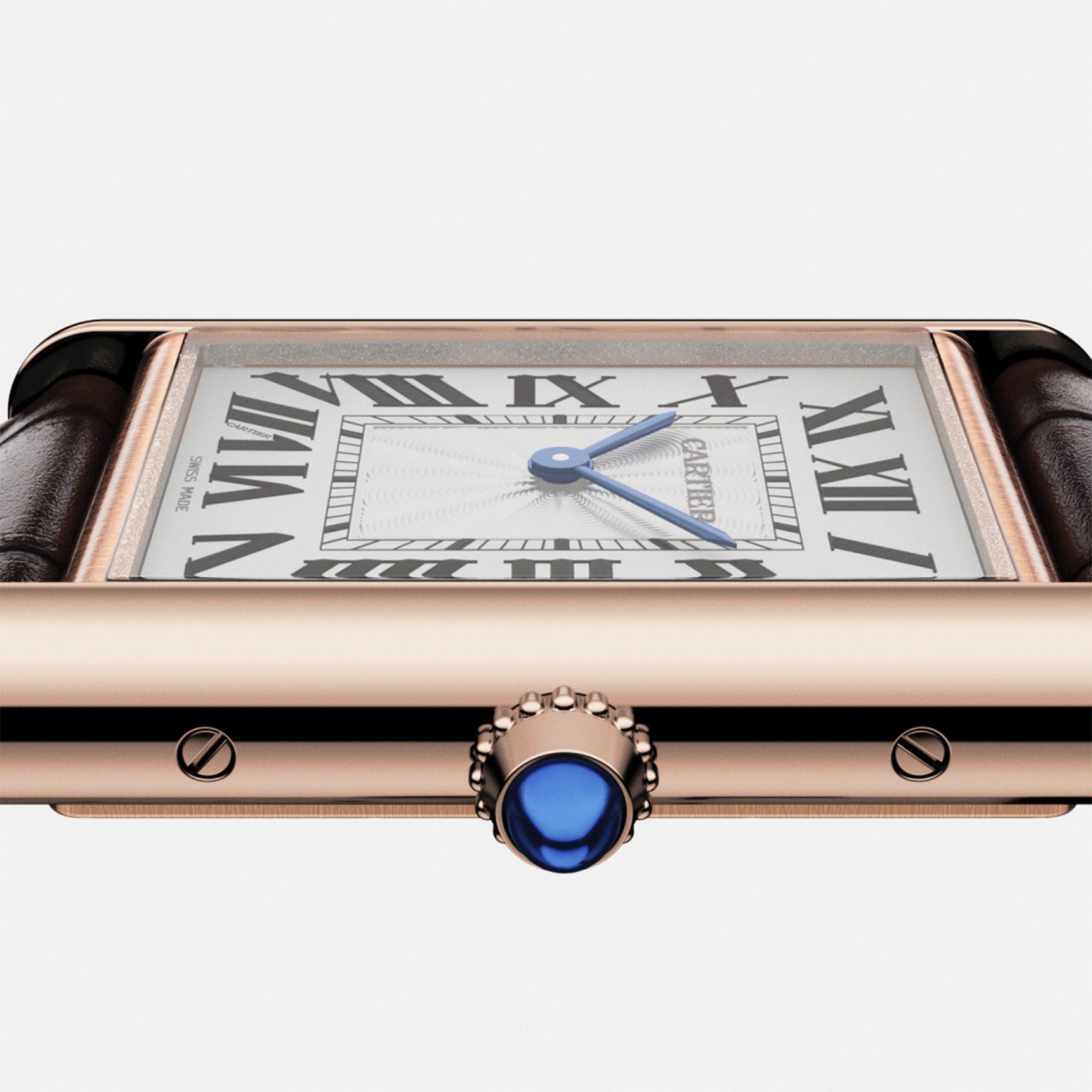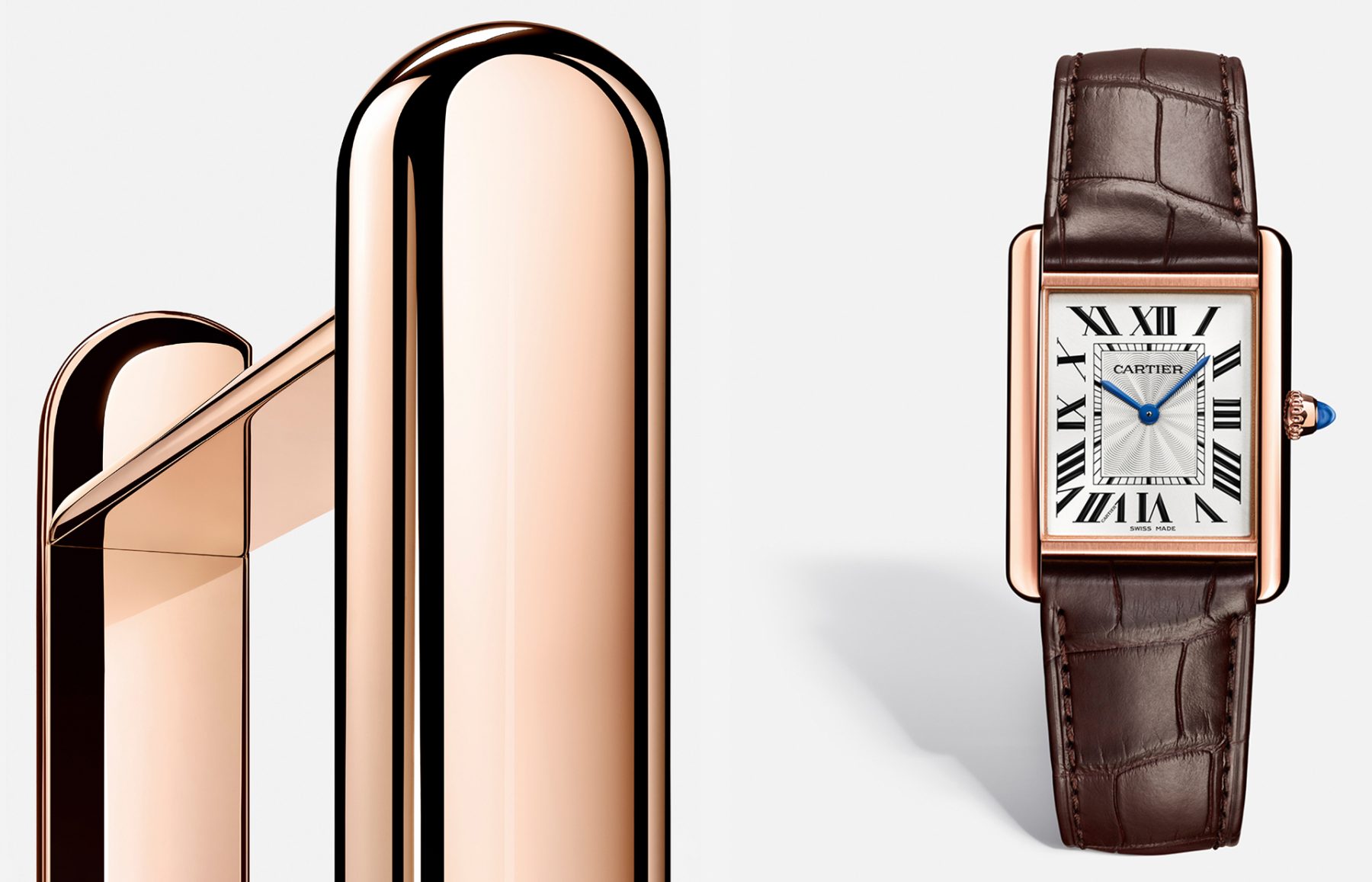 事實上,卡地亞腕錶的經典款式,除了Tank,還有1904年誕生的Santos,而這一切,當然要歸功於創意才華橫溢的品牌第三代傳人Louis Cartier。1917年,歐洲正藉第一次世界大戰,雖然大環境是不幸的,但戰爭裏常見來自協約國的坦克車卻成為Louis Cartier的靈感來源,繼Santos後,構思出Tank的造型,取名Tank Normale。整枚腕錶的設計概念,其實源於俯瞰坦克車形態而來,左右兩邊車輪成為錶殼的重要支撐線,上下延伸成為錶耳,中間的炮塔便是核心的錶盤所在。而為了平衡方形錶殼的流線演繹,左右兩個直線錶耳便需要和錶帶做出天衣無縫的連接,挑戰品牌製錶匠的心思和功力。Tank Normale到1919年才能正式面世,但Louis Cartier的澎拜創意並沒有因而止步。不到兩年,再一次刷新眾人目光的Tank Cintrée於1921年誕生,名字是法文curve弧形的意思,只見錶殼左右兩邊的直線給拉長並以弧形演繹,佩戴時更貼近手腕,其細心妙意,叫人動容,難怪在百年後的今天,已經成為Tank的招牌經典型號,往往只在具紀念價值的特別時刻才會出現嶄新的演繹,成為不少收藏家追捧的目標。一年後的1922年,Tank在面世短短五年便得到重新設計,結合了Tank Normale和Tank Cintrée的優點,錶殼獲得拉伸延長,錶耳更纖细,邊角更圓潤,更直接以Louis Cartier之名稱之。自此之後的100年,Tank便以其垂直錶耳、鐵路靈感分鐘軌、羅馬數字時標及特別設計的錶冠等四大特色,成為品牌不斷創新的演繹平台。