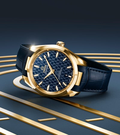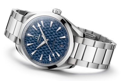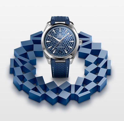 歷史課上完了還是回過頭來看看手錶吧。Omega 總廠為東奧推出的紀念款最早有兩支,一支是藍面的海馬 Aqua Terra,一支是白面白圈的海馬 300 潛水錶,這兩款乍看之下貌不驚人,不過一旦看懂了其中埋的哏以後卻意外地會對它們好感大增。Aqua Terra 這款的藍面其實是由一整片呈現微妙扭曲的格紋組成的,而這套格紋的點子正是來自本屆奧運的主視覺 logo;這種格紋有個專有名詞叫「市松」,是日本傳統和服花紋的一種——基本上炭治郎穿的就算市松,只是最古典的配色是以藍白為主,這次東奧運用這個純粹和風的元素構成了大會極具現代感的 logo,以設計方法來說乃是相當高明的一種轉換,而 Omega 沿用了這套語彙的紀念款同樣也成了 Aqua Terra 中最有設計感的一支(附帶一提,就在我們截稿前 Omega 又為這款追加了一大(41mm)一小(38mm)兩種 18K 黃金錶殼的版本)。