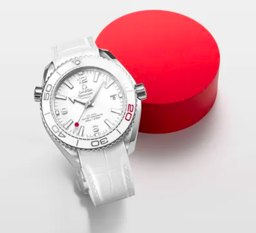 白面白圈的海馬 300 潛水錶看起來像是女錶(連錶徑也是稍小的 39.5 mm),但其中藏的彩蛋卻是讓男生也會手癢的;錶圈分鐘數字中的20這裡換成了紅色,選擇20自然是在呼應 2020 年,而紅色跟底下的白色一搭正好構成了日本國旗的配色。將這種國旗哏玩得更直接的是面盤上的秒針,紀念款將海馬 300 潛水錶秒針末端的棒棒糖圓點也改成了紅色,這麼一來它跟背景的白色面盤不但配色是日本國旗,連造型都符合了日之丸的形狀,對日本人來說堪稱是愛國商品。