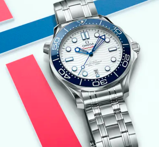 前面兩款早在 2019 年就已經上市了,比較微妙的是今年四月 Omega 又追加了第三支東奧紀念款。跟前兩款比起來這款沒那麼多故事,整支看起來就是一款白面藍圈的海馬 300 潛水錶,然而儘管貌不驚人,但實際上在同系列現行的產品線中並沒有相同的配色,以紀念款來說仍然有其特殊之處。說它微妙是在講它的發行時間,由於東奧延後了整整一年,如今我們不確定 Omega 是原本就排定了這第三款要壓到開幕前推出,還是因為延後一年話題已經退燒了所以才另外多做一款來重新炒熱新聞,畢竟 Omega 算是大流行下的重災戶(奧運和 007 都延了一年),想多做點什麼來拉起這筆投資的效益也是非常合情合理的。