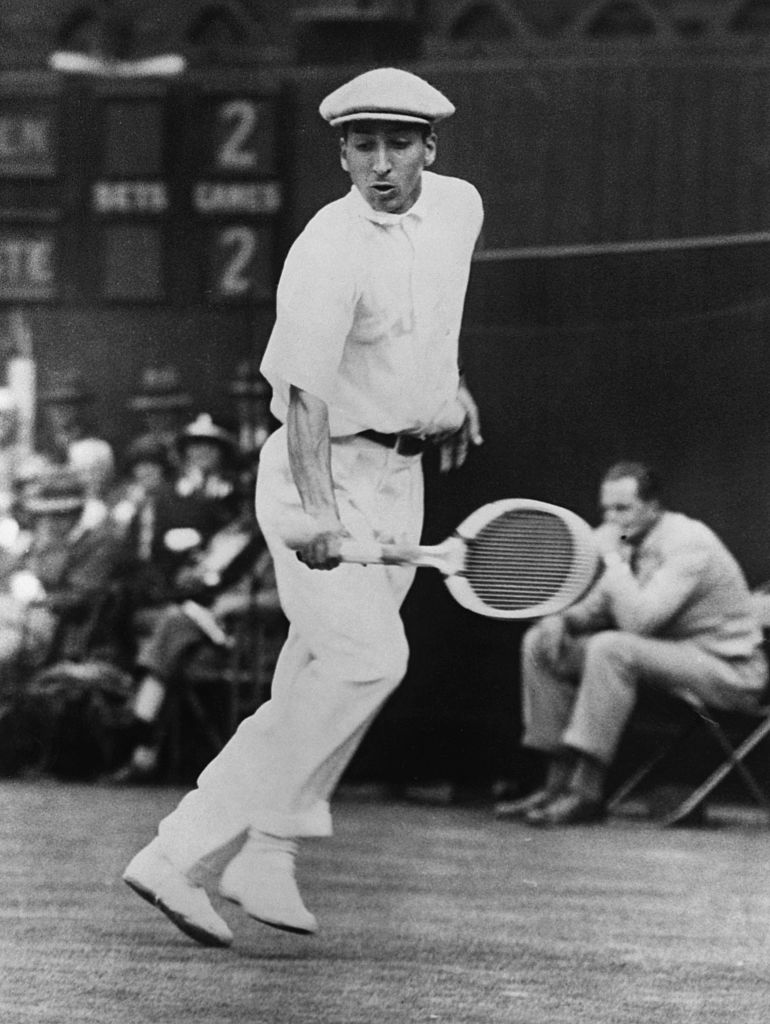 (Original Caption) Rene Lacoste at Wimbledon playing against Bill Tilden. (Photo by George Rinhart/Corbis via Getty Images)