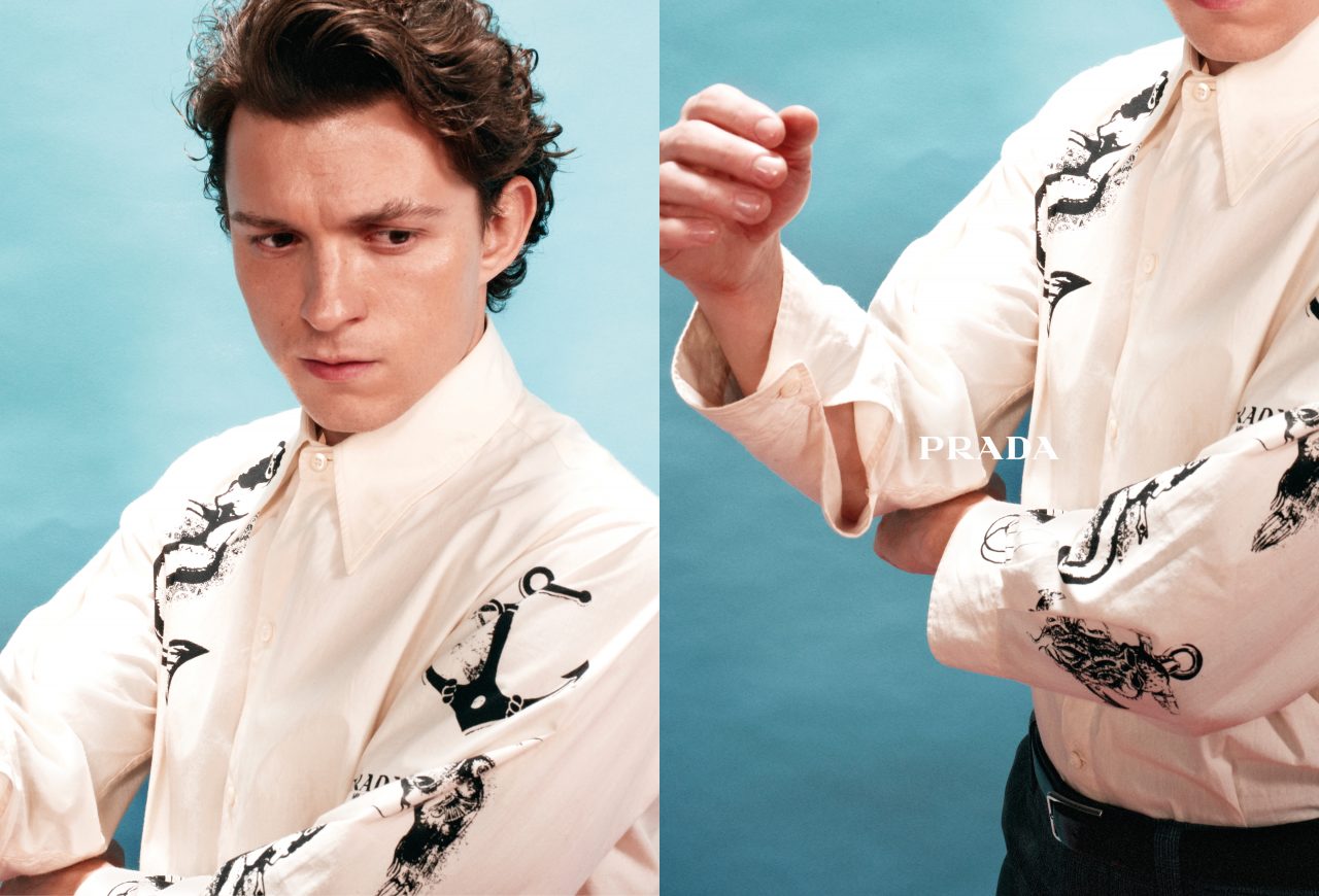 現年 25歲 的 Tom Holland  無疑是當下最受歡迎的年輕男演員 ,最近上映的 《蜘蛛俠:不戰無歸》更是票房亮眼;今年更會在   Sony Pictures 2022 年首部主打動作鉅片《秘境探險Uncharted》擔任男主角,氣勢一時如虹,難怪這次 Prada 會邀請他擔任形象大片的男主角。