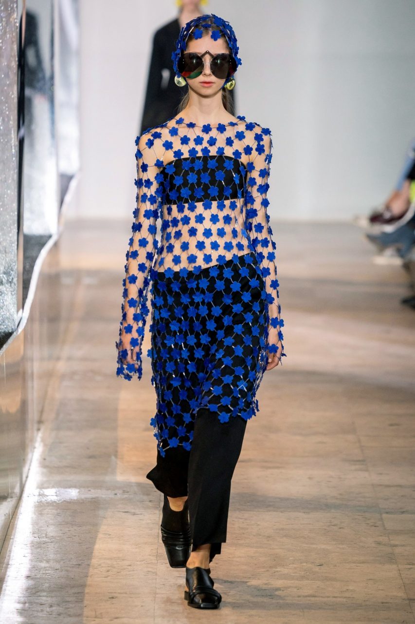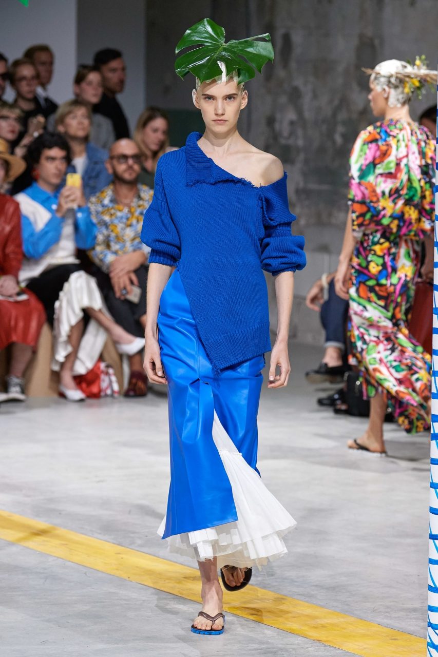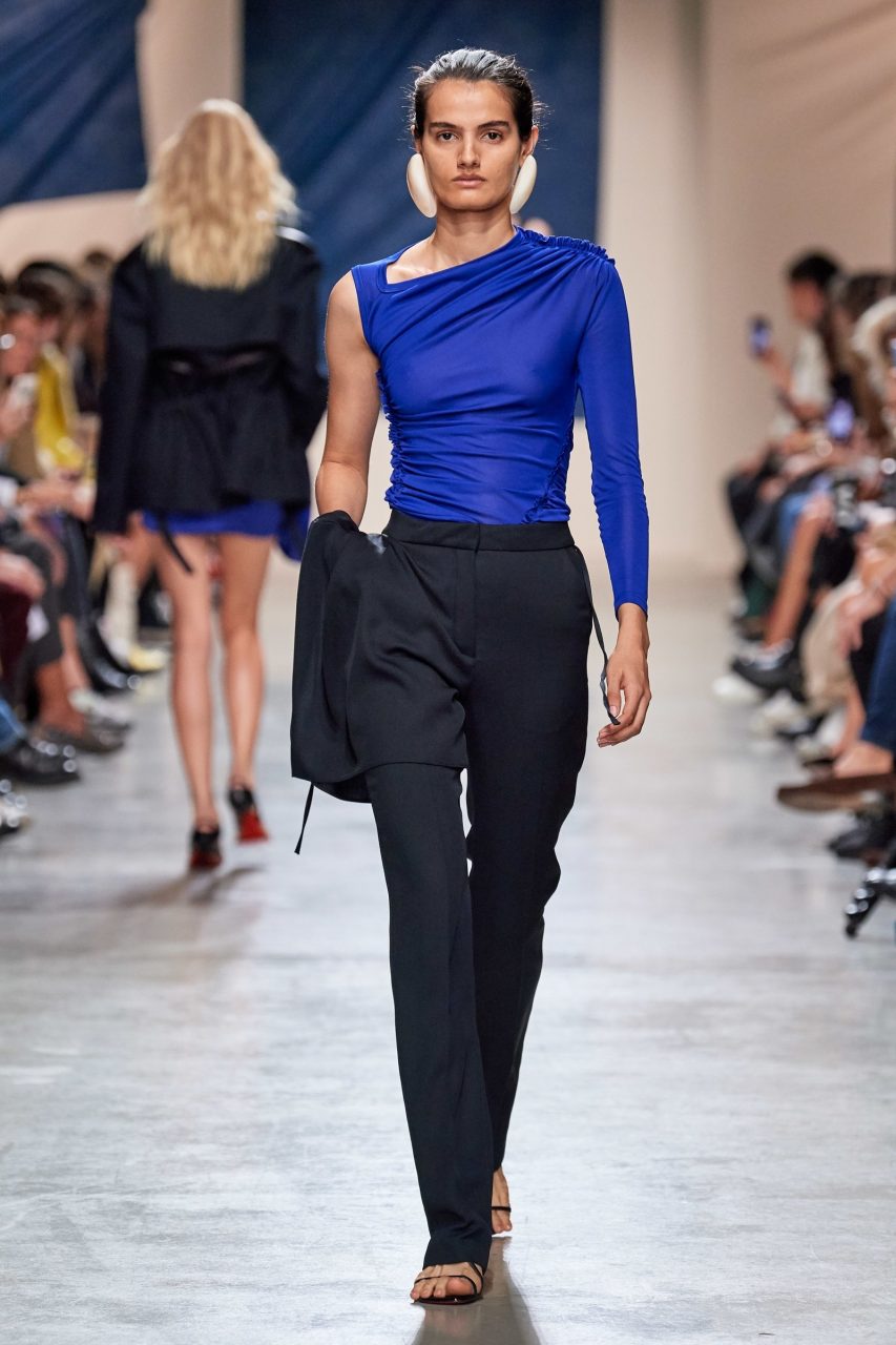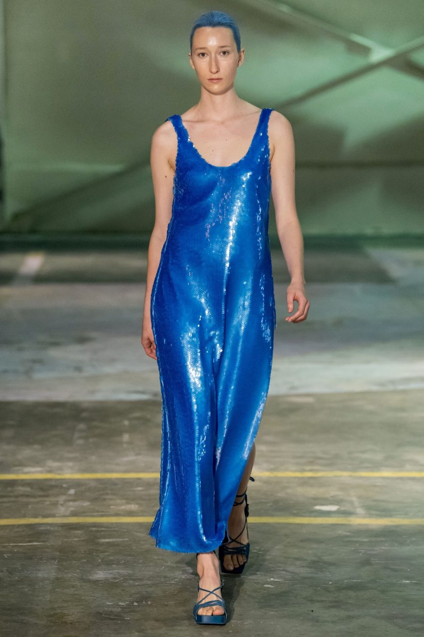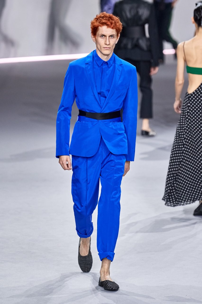 不過在時裝界,寶藍色並非是日常單品的色彩取向。過去一年中,Hedi Slimane 的 Celine 、Riccardo Tisci 的 Burberry 還有 Ashley 和 Mary Kate Olsen 所設計的 The Row 都不約而同地以寶藍色的設計,展示對中產階級文化的演繹。Demna Gvasalia 在 Balenciaga 2020春夏系列便鋪天蓋地地運用寶藍色,以加強團結力量的政治信息。想不到在系列發佈的尾聲,模特兒穿上經典藍的絲絨晚裝映入眼簾,斗大的圓形裙擺設計便瞬間與場地融為一體;而 Haider Ackermann 則把經典藍設計在西裝套裝上;Eckhaus Latta 的藍色則以珠片的設計打造;Gucci 的連身開胸裙子,展示出乾淨俐落的輪廓。