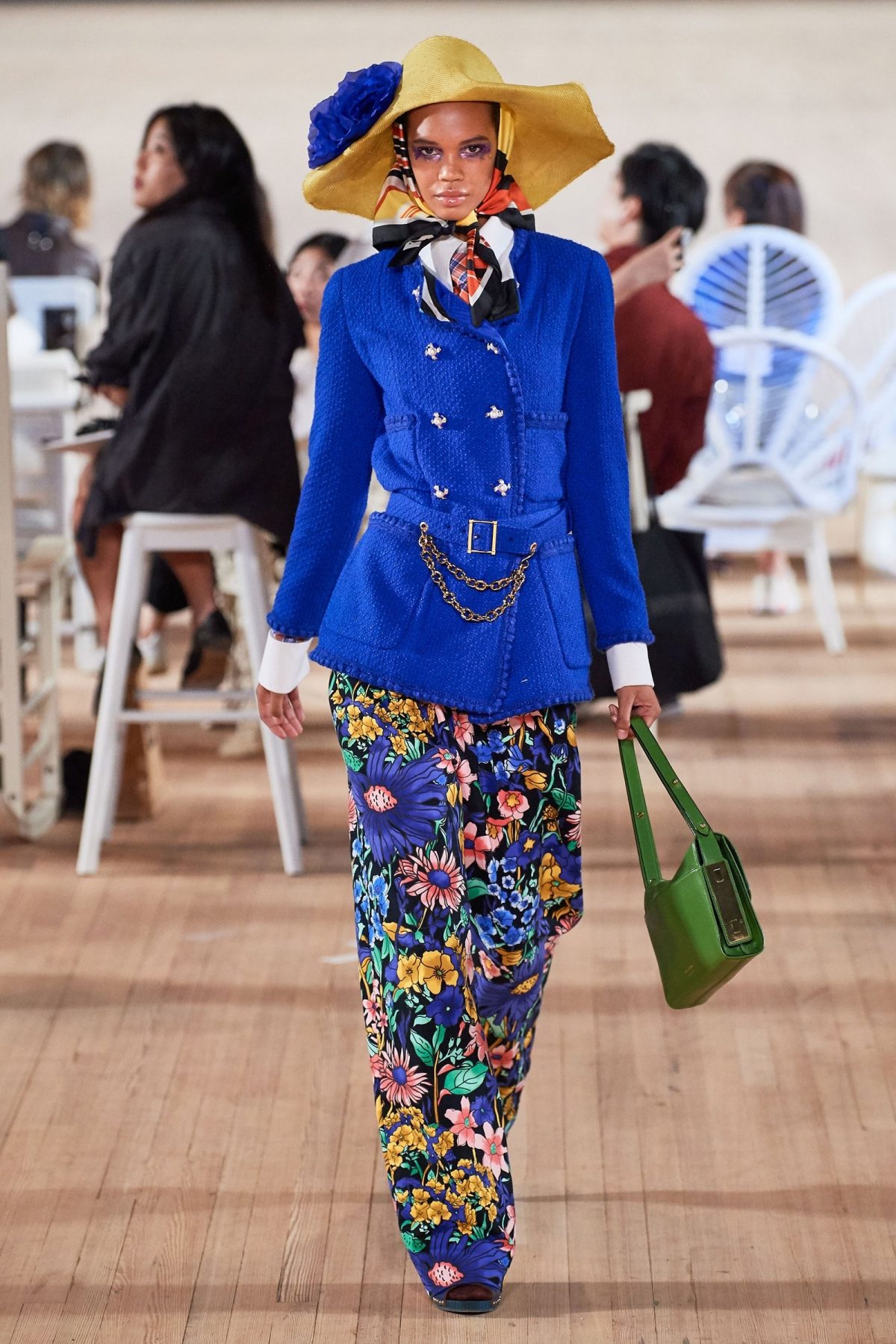 不過在時裝界,寶藍色並非是日常單品的色彩取向。過去一年中,Hedi Slimane 的 Celine 、Riccardo Tisci 的 Burberry 還有 Ashley 和 Mary Kate Olsen 所設計的 The Row 都不約而同地以寶藍色的設計,展示對中產階級文化的演繹。Demna Gvasalia 在 Balenciaga 2020春夏系列便鋪天蓋地地運用寶藍色,以加強團結力量的政治信息。想不到在系列發佈的尾聲,模特兒穿上經典藍的絲絨晚裝映入眼簾,斗大的圓形裙擺設計便瞬間與場地融為一體;而 Haider Ackermann 則把經典藍設計在西裝套裝上;Eckhaus Latta 的藍色則以珠片的設計打造;Gucci 的連身開胸裙子,展示出乾淨俐落的輪廓。