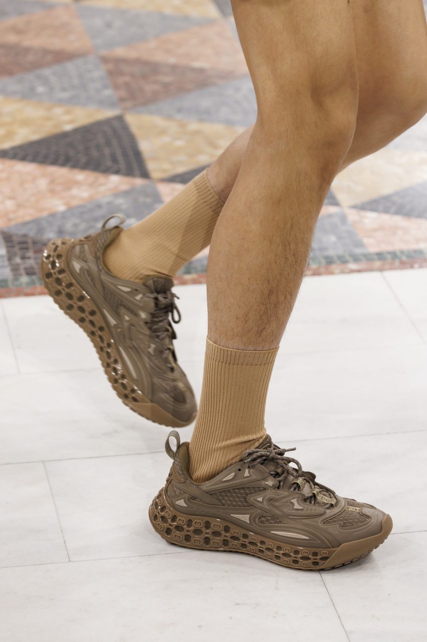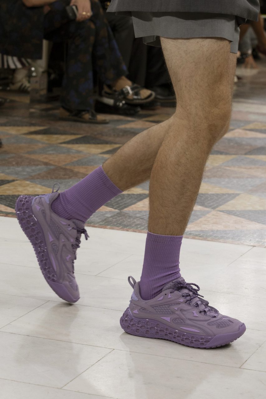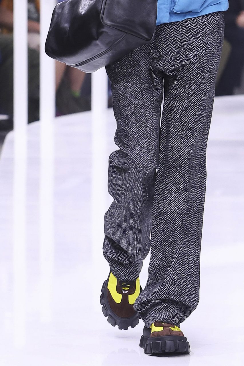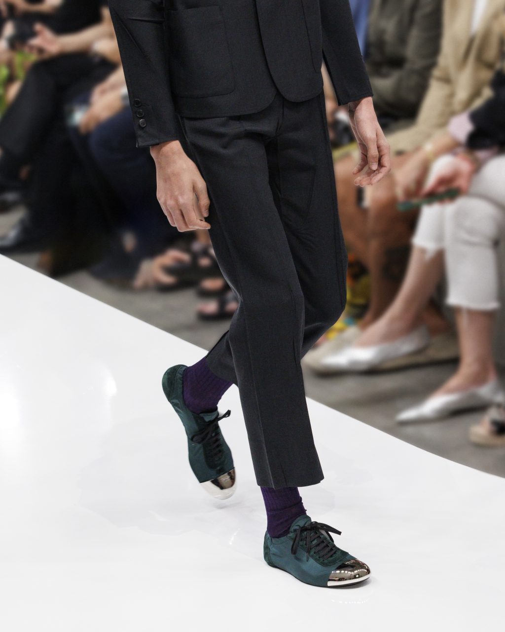 今季loafers及波鞋佔多數,不過像女裝平底鞋般的修腳loafers亦愈見普及,自問擁有幼長小腿的男士可以一試。典型的男裝皮鞋經過重新演繹,皮革顯得更貼服,鞋底亦更柔軟;當然厚底浮誇輪廓的皮鞋及波鞋仍然在不少時裝品牌中可見,此熱潮似乎仍未減退。
