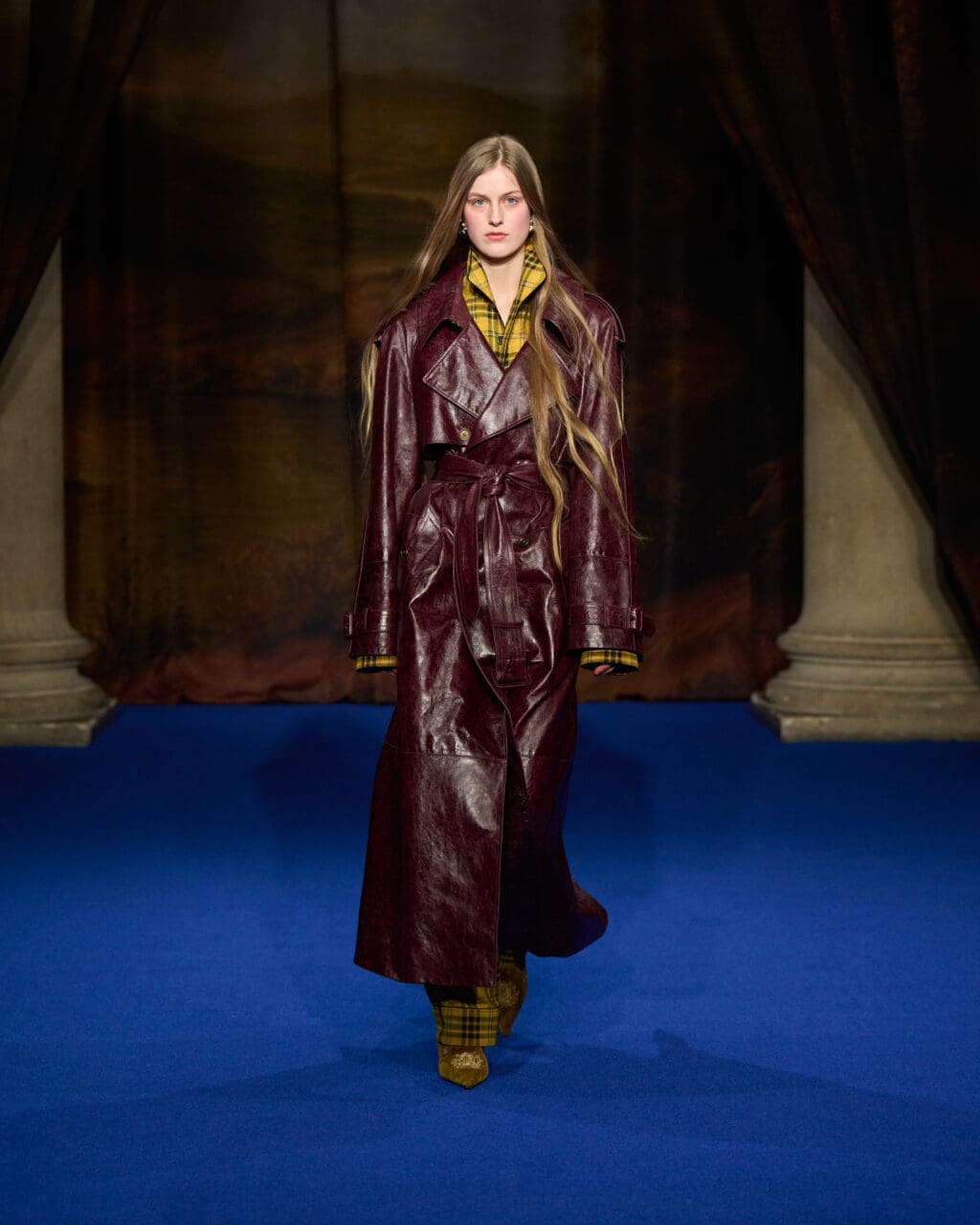 而自 Joshua Schulman 出任 Burberry CEO 以來,便提倡專注於經典設計,如經典風衣和格紋圍巾。故在 2025 秋冬系列,Burberry 最具代表性的「大衣」自然成為 Daniel Lee 設計的主角。
