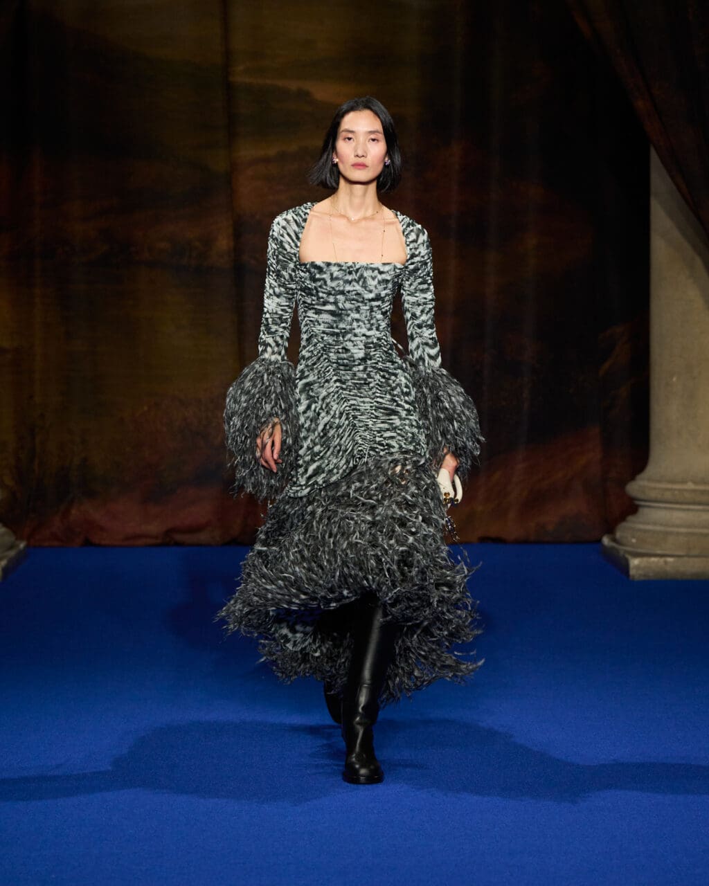 古老莊園內的精湛工藝與奢華布料吸引深深吸引了他,Daniel Lee 在今季仔細研究了各款壁紙布樣,以及手工地毯及掛毯等家具面料,並將這些元素融入當代穿搭造型中。