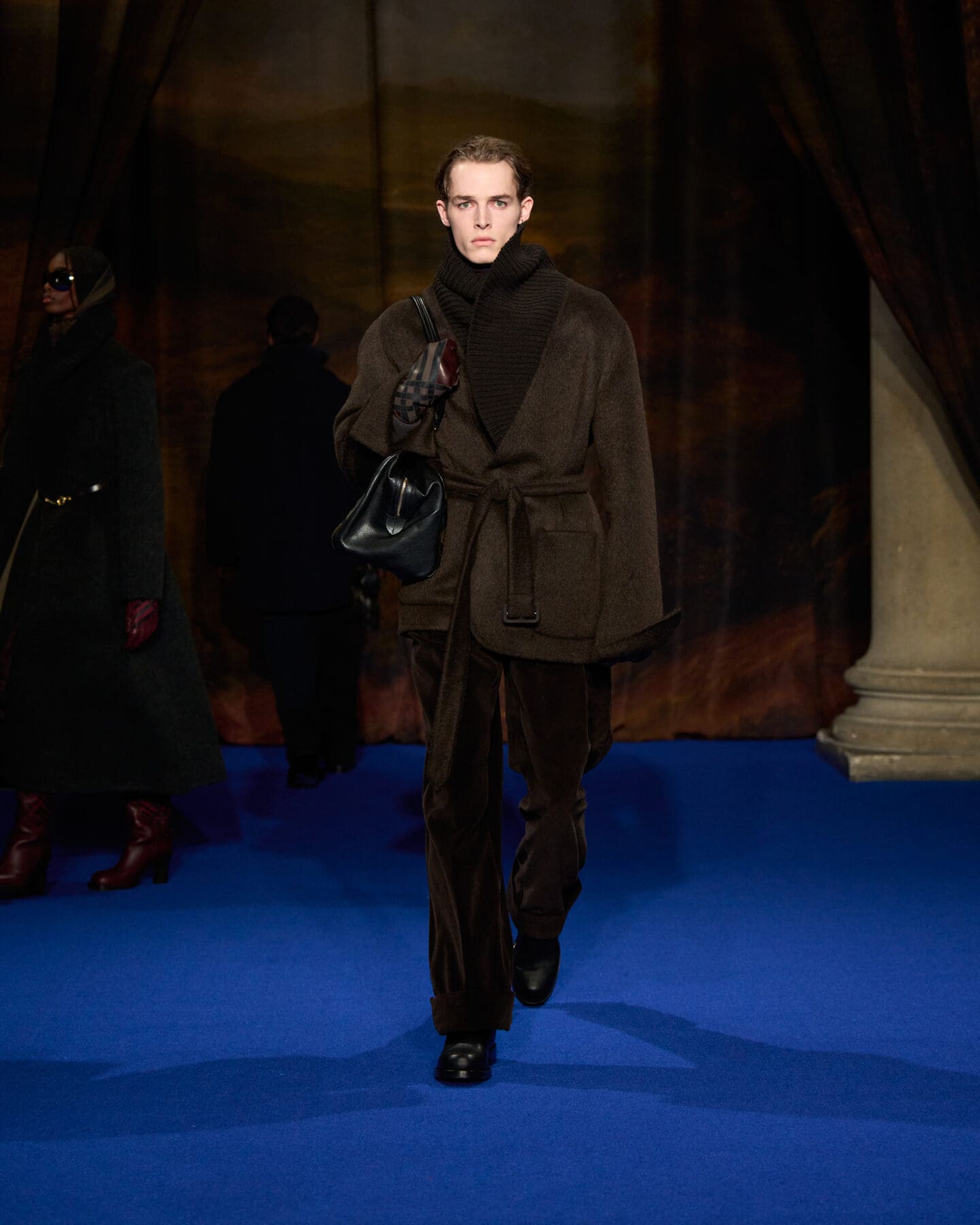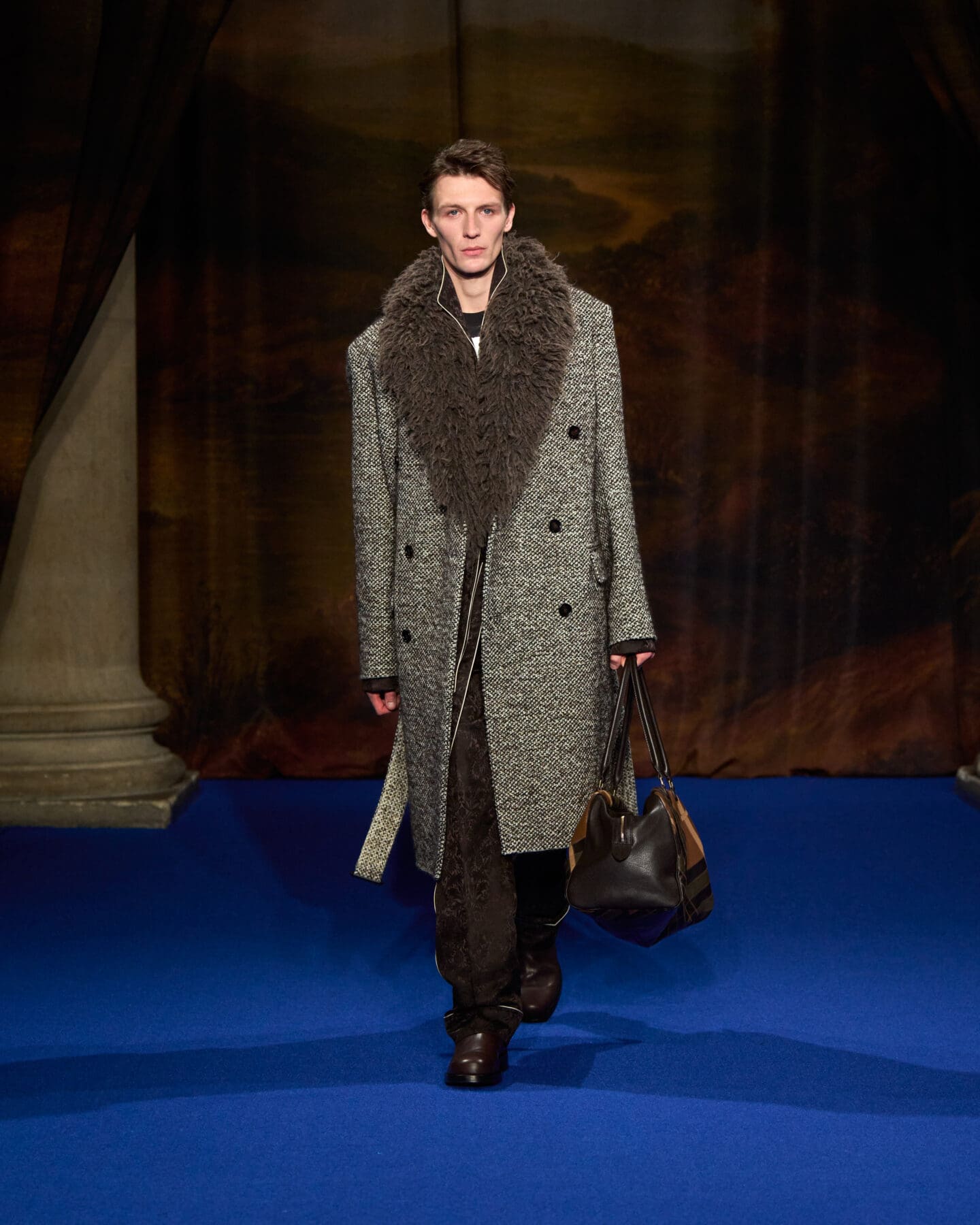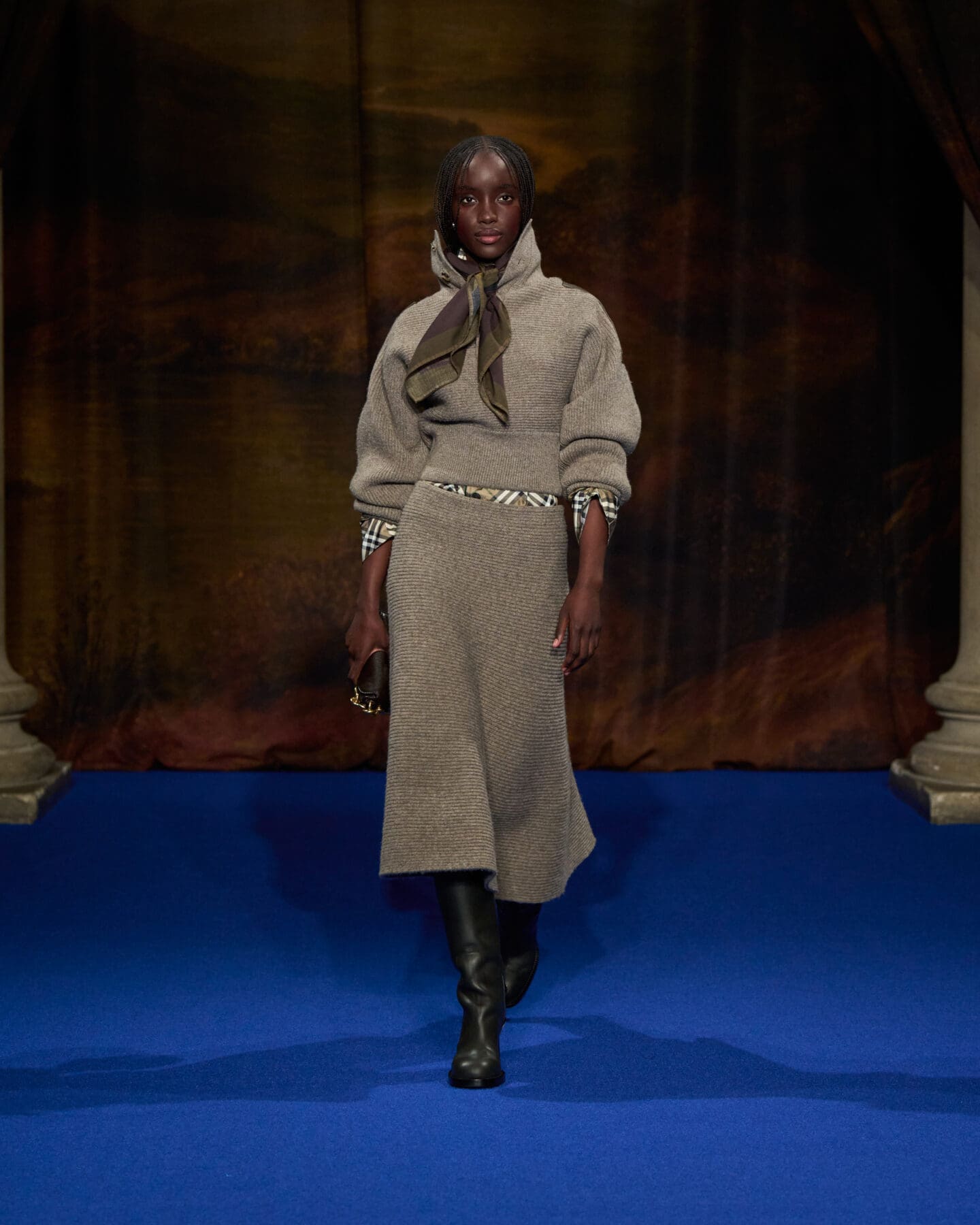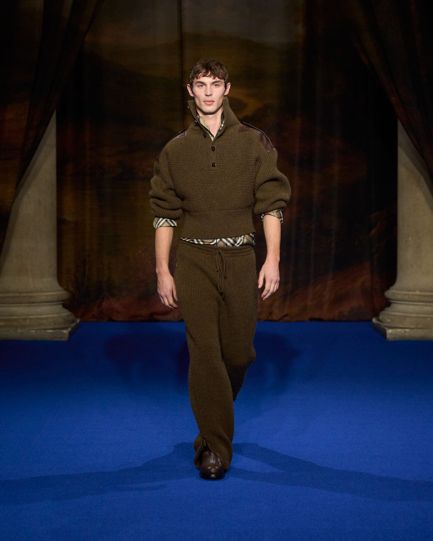 Daniel Lee 說道:「這場時裝展的整個構思,最初來自於倫敦的「週末逃亡者」(weekend escapees)。」,一直以來,疲憊的倫敦人總愛逃離首都的喧囂,到呼吸鄉間清新空氣。Daniel Lee 同樣受此啟發,在 Burberry 2025 秋冬系列回顧了這種週末旅行的珍貴傳統,將視線聚焦在那些英國鄉間別墅的裝潢——在本次的冬季系列,透過設計仿如將我們帶來到一座華麗但略顯陳舊的莊園。