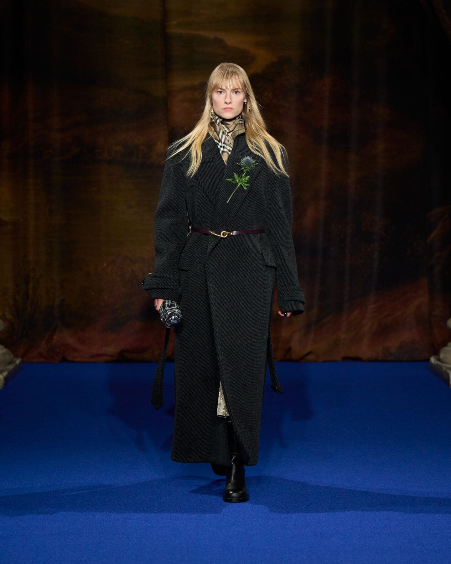 而自 Joshua Schulman 出任 Burberry CEO 以來,便提倡專注於經典設計,如經典風衣和格紋圍巾。故在 2025 秋冬系列,Burberry 最具代表性的「大衣」自然成為 Daniel Lee 設計的主角。