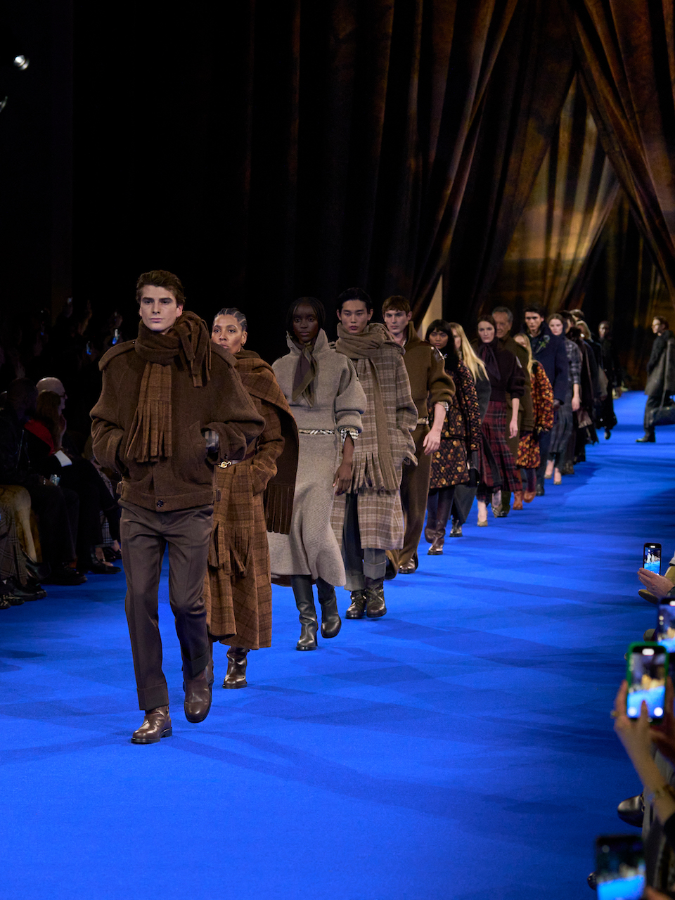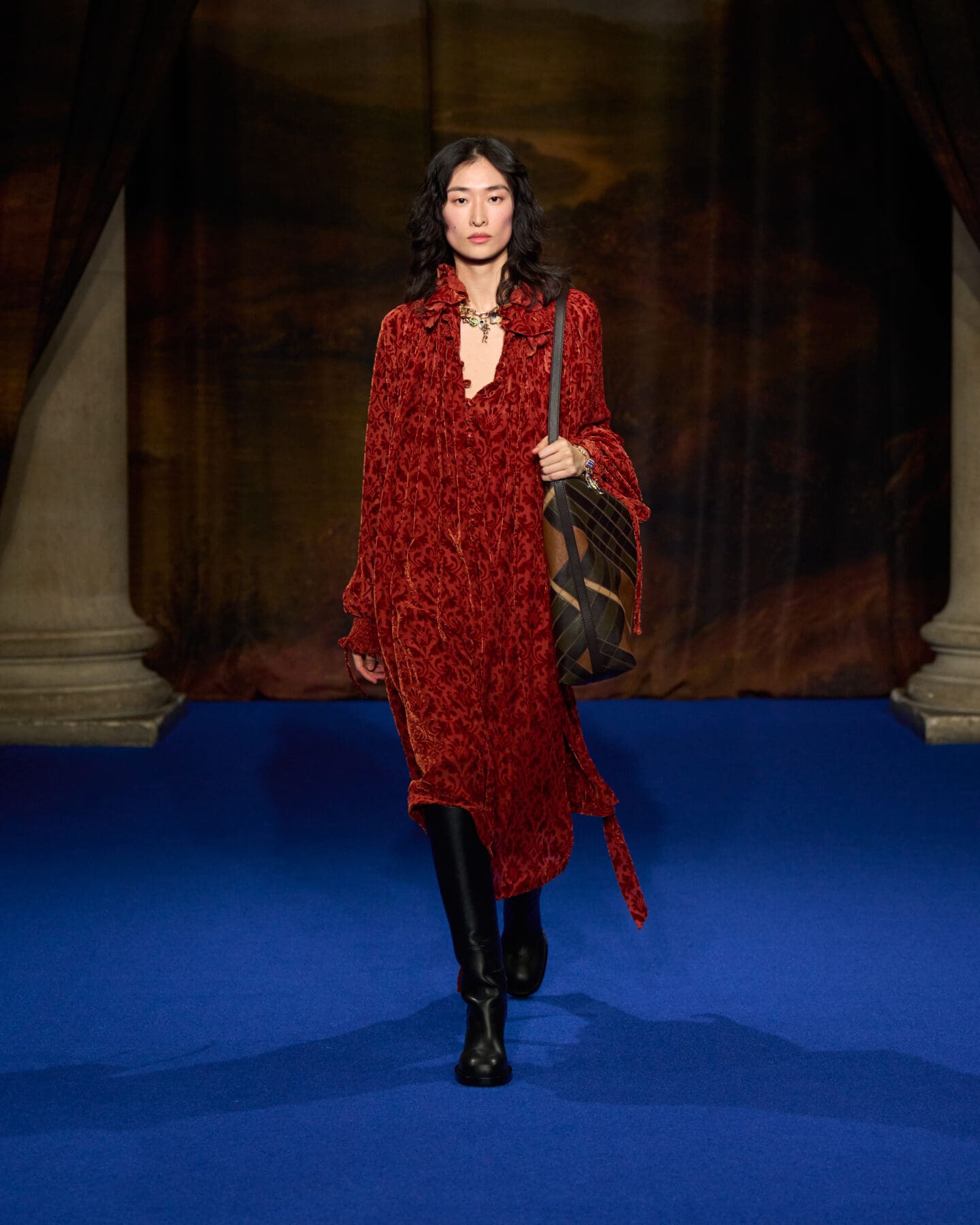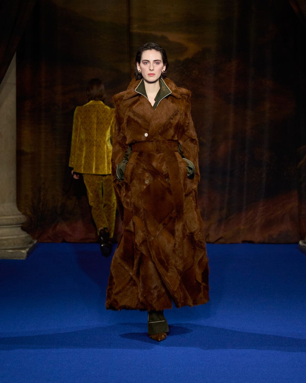 2025 秋冬系列時裝展選址在倫敦泰特不列顛美術館 (Tate Britain)——這裡是象徵英國創意精神的代表性舞台,而同樣標誌着Burberry 與 Tate Britain 為期一年的合作關係,以支持其世界領先的繪畫修復工作。