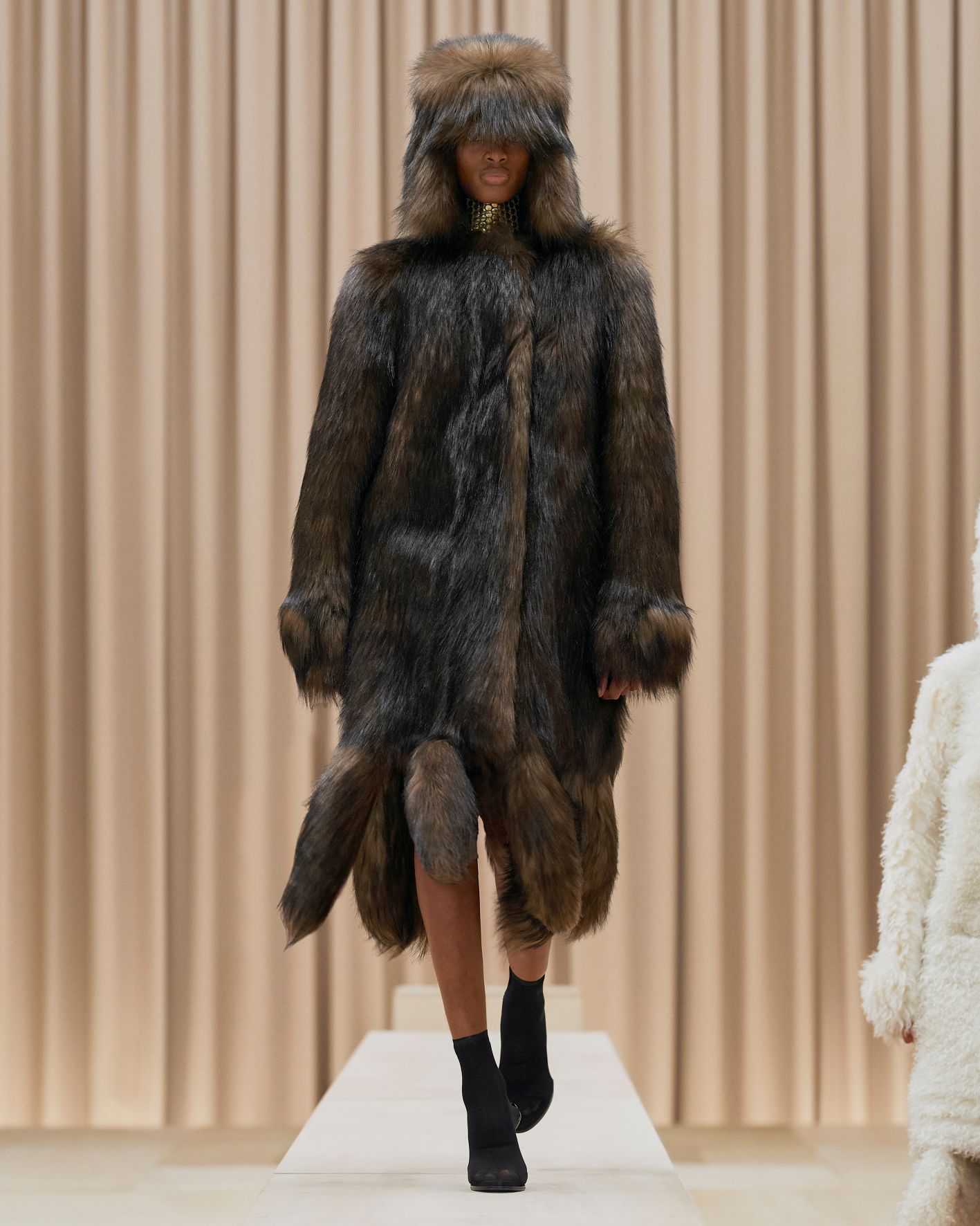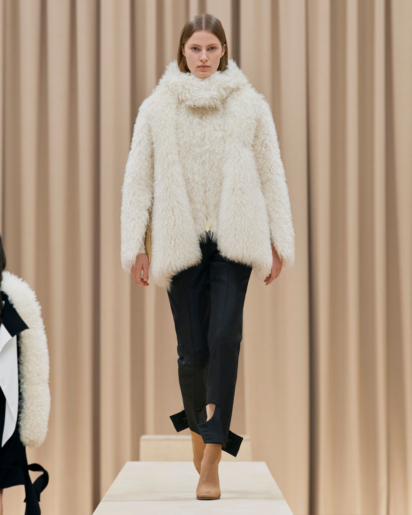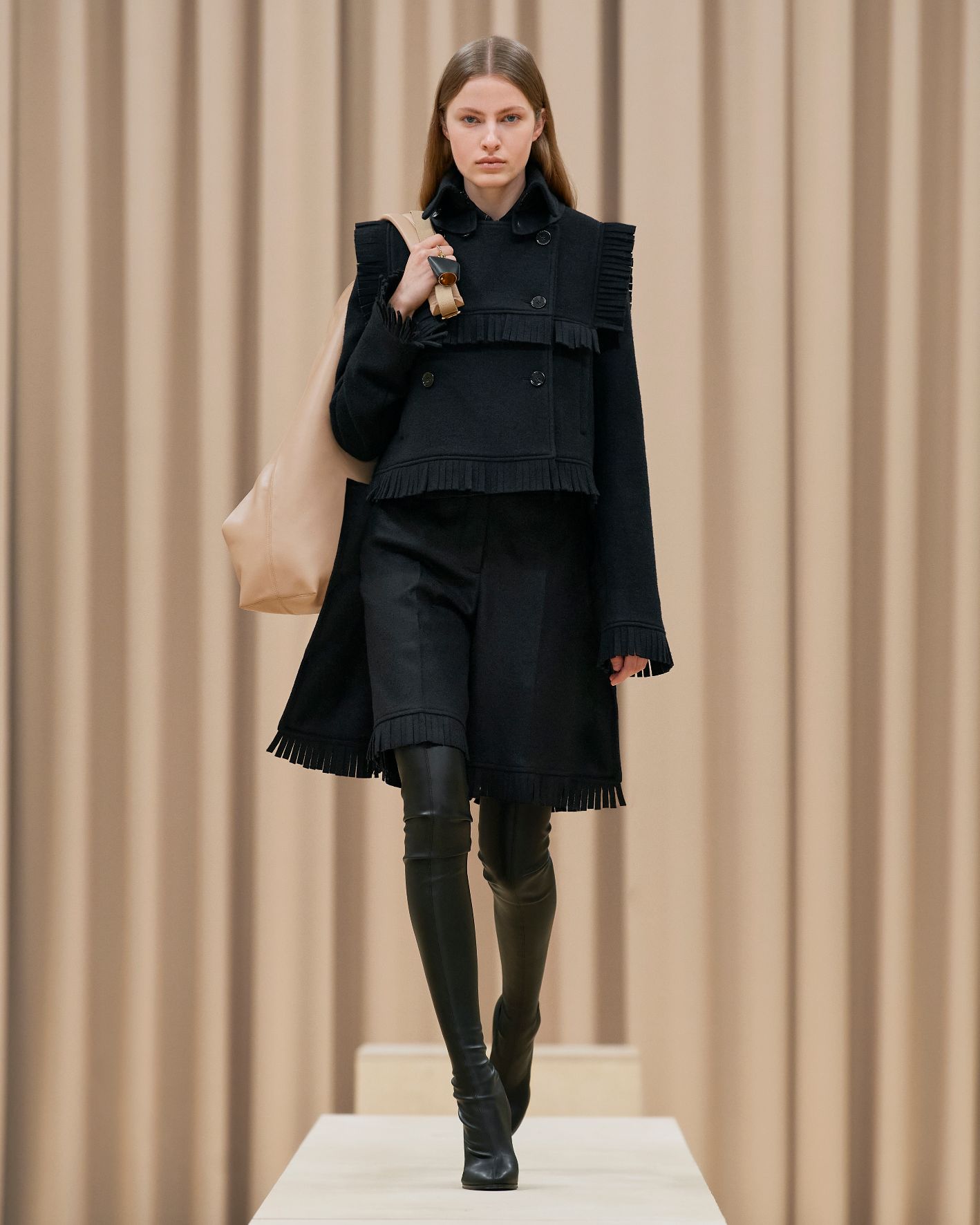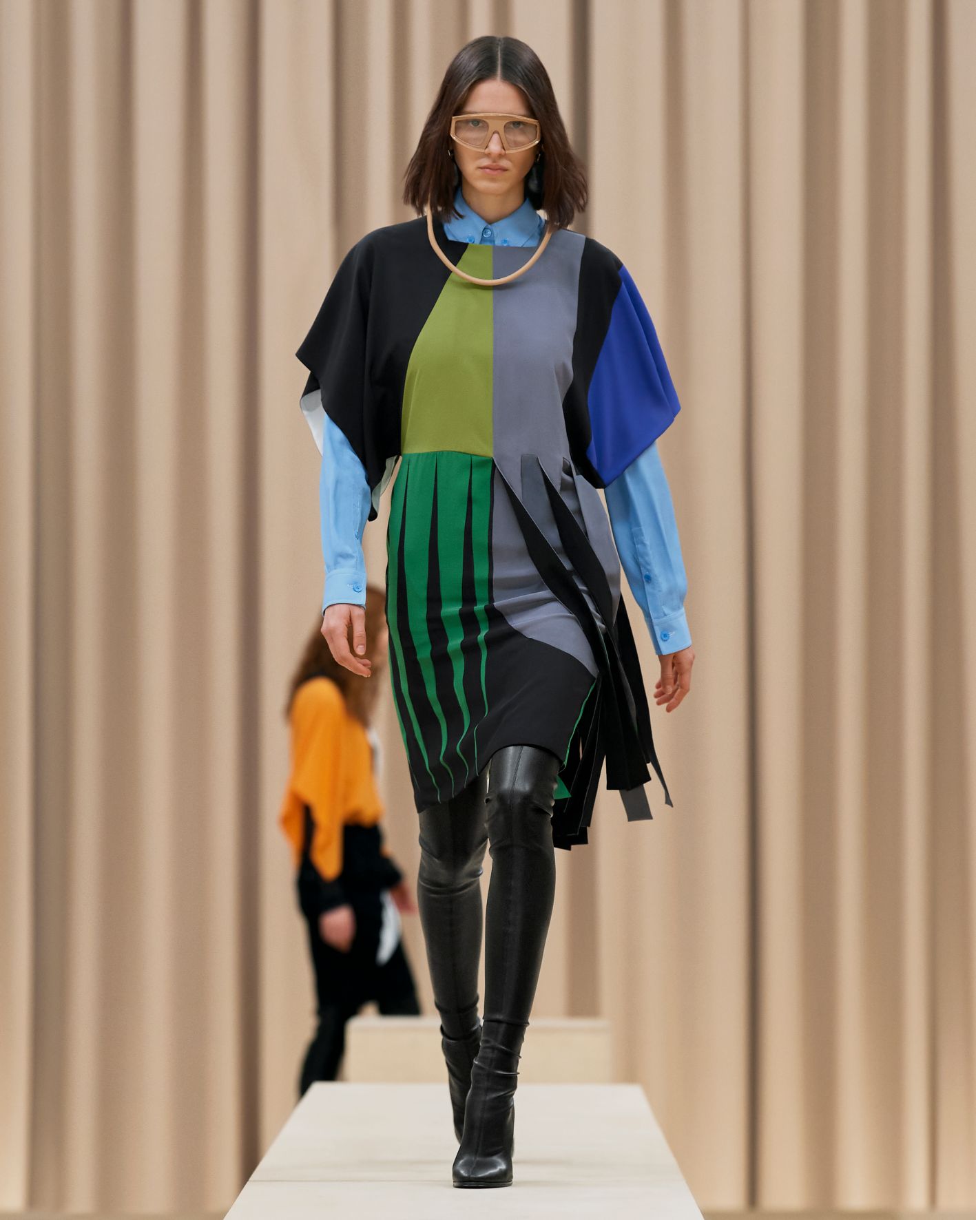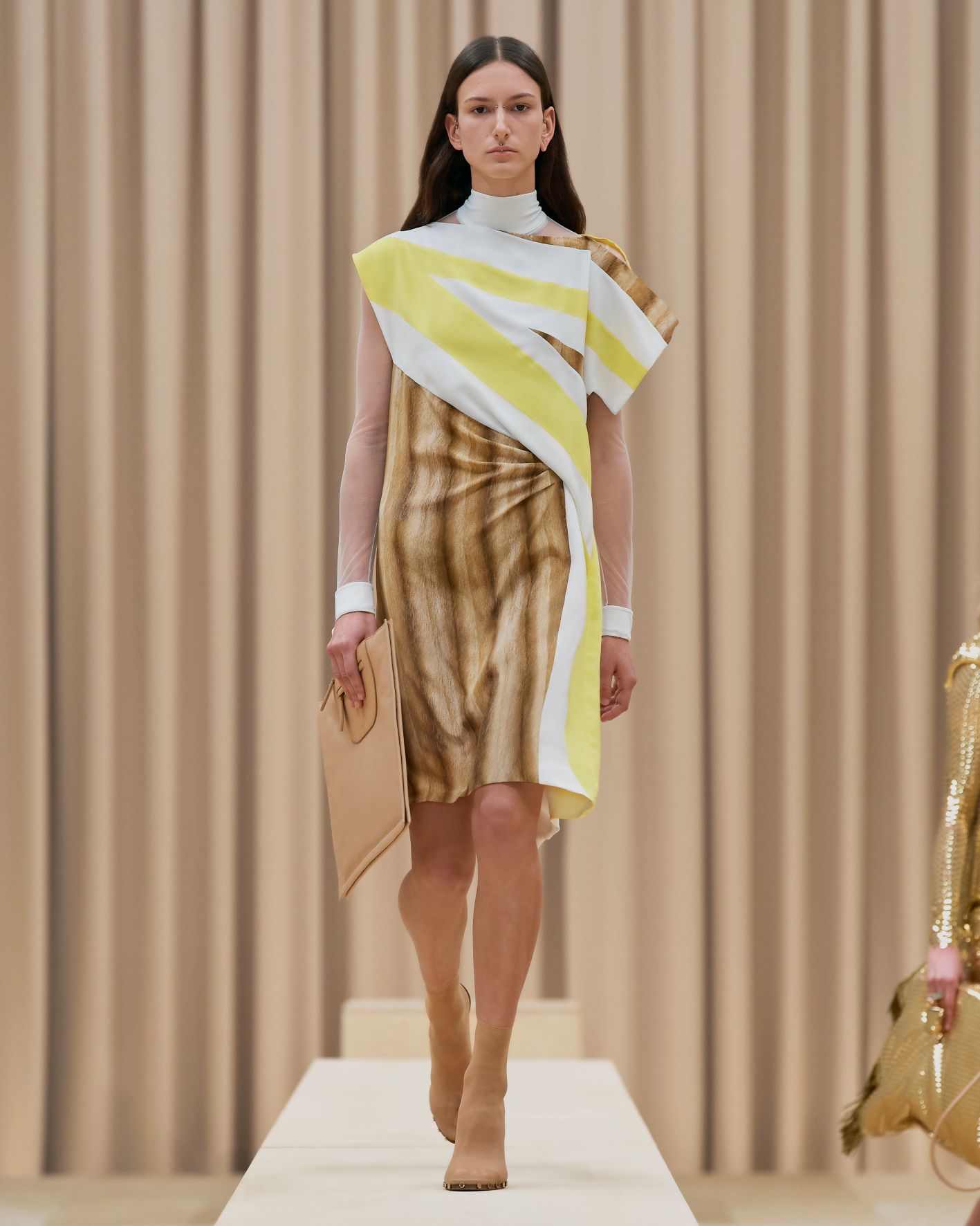 當令人讚嘆的英國藝術家Shygirl以一場詩詞歌頌為時裝發佈會掀開序幕,正好呼應品牌獨有的風格與態度,以創新的角度為現代女性打造經典衣著。這股能量同時展現在動感的電子舞曲之中,與模特兒自信的舞步搭配,展現協調的動感。