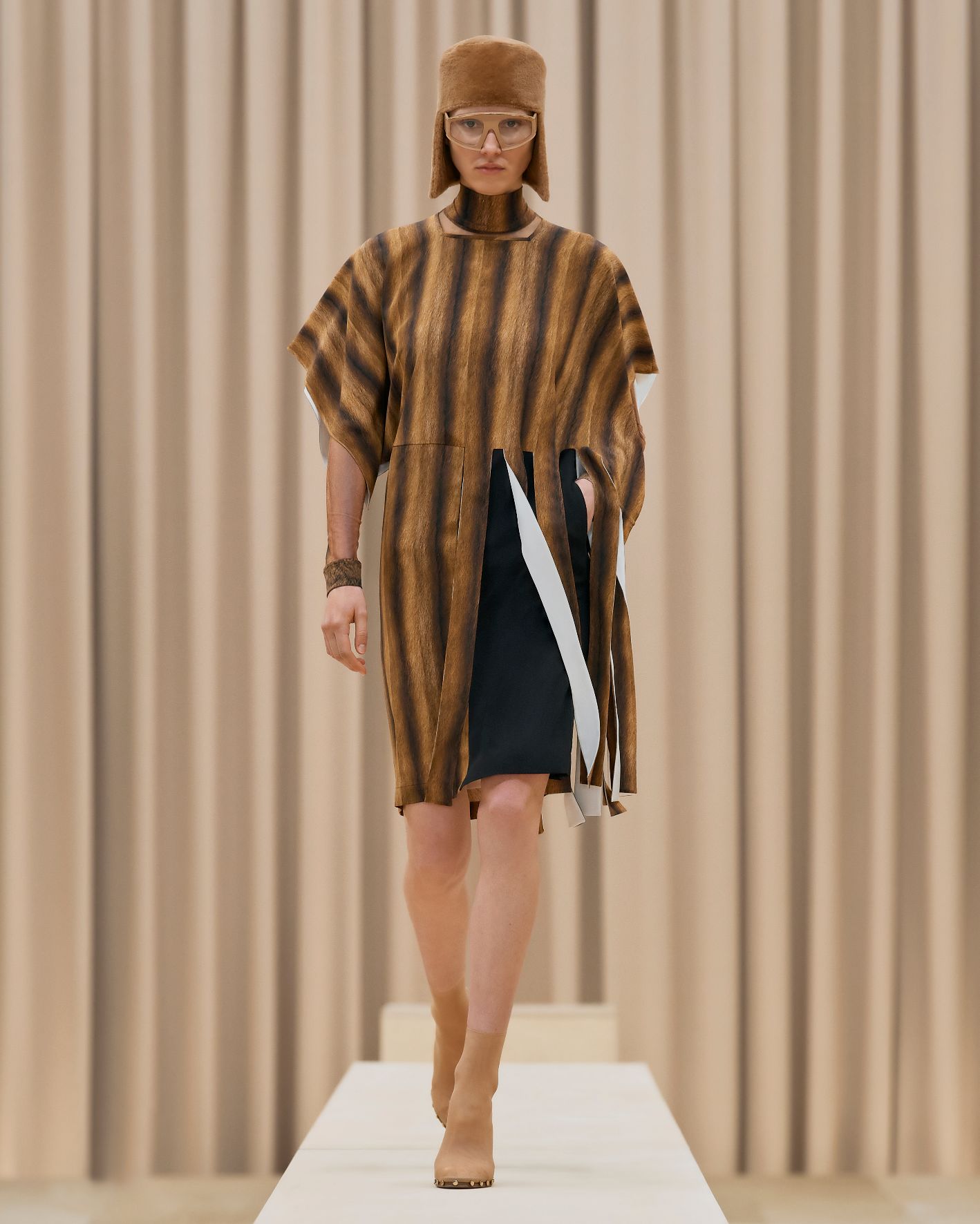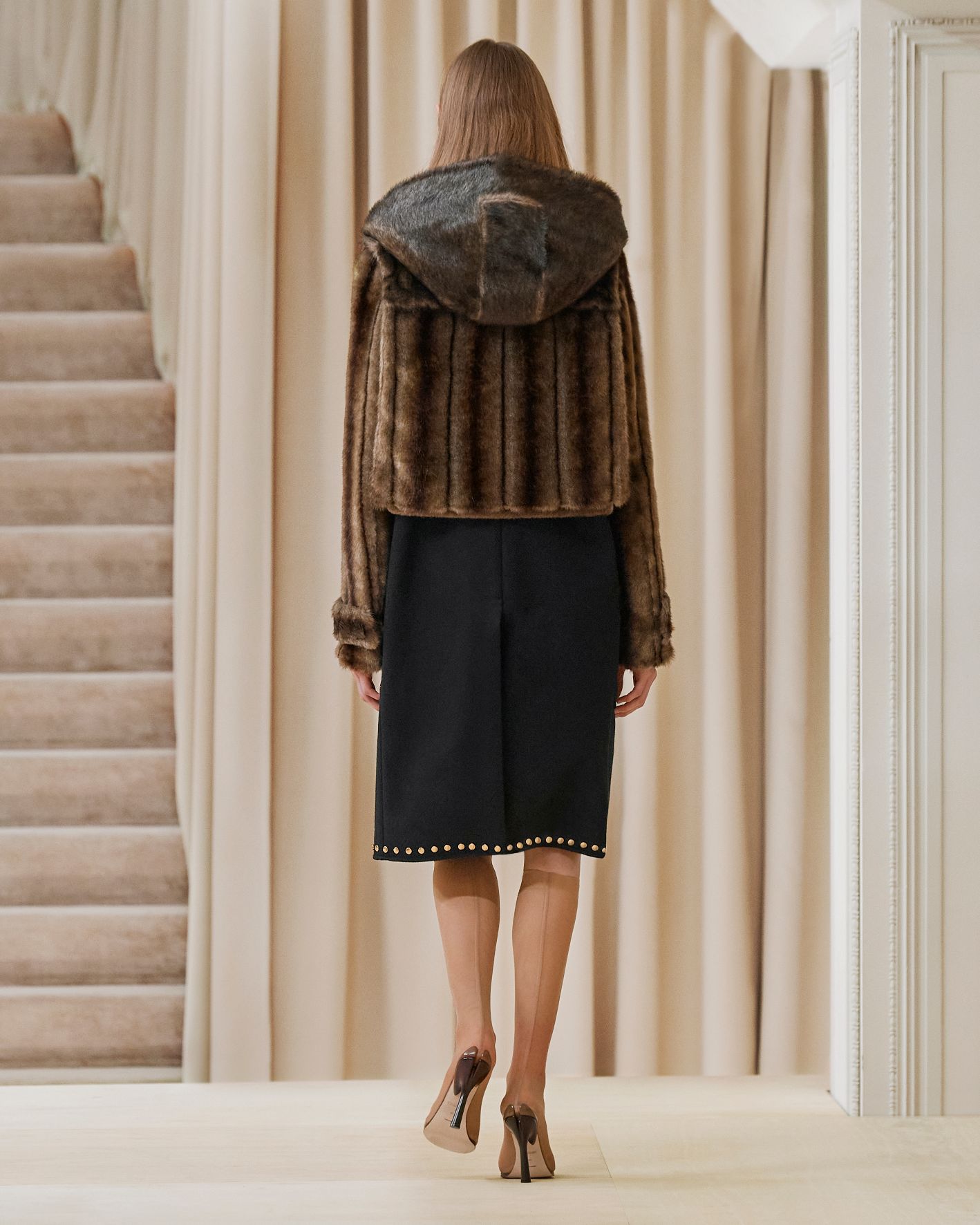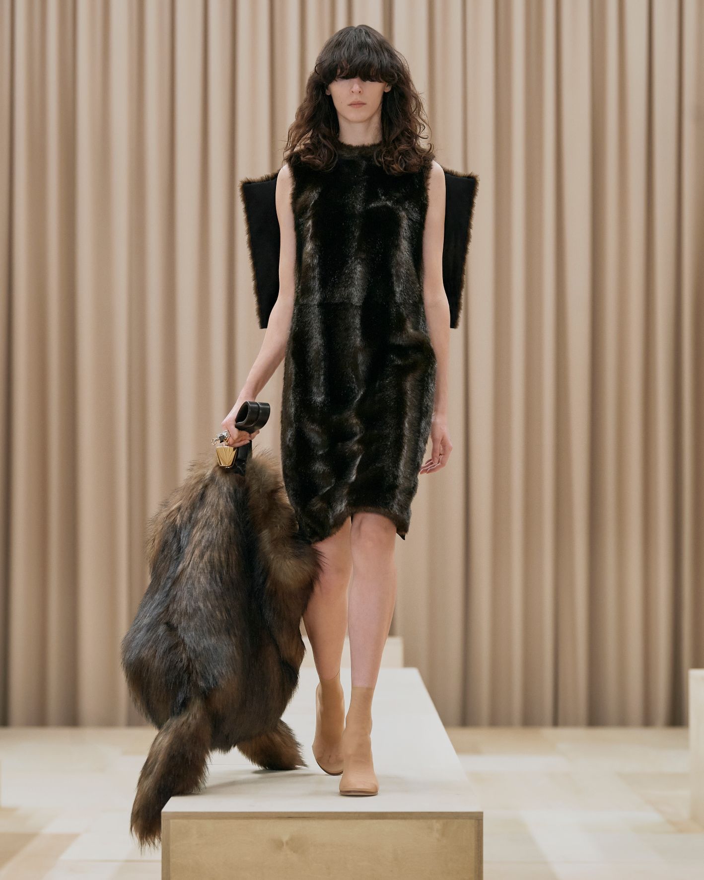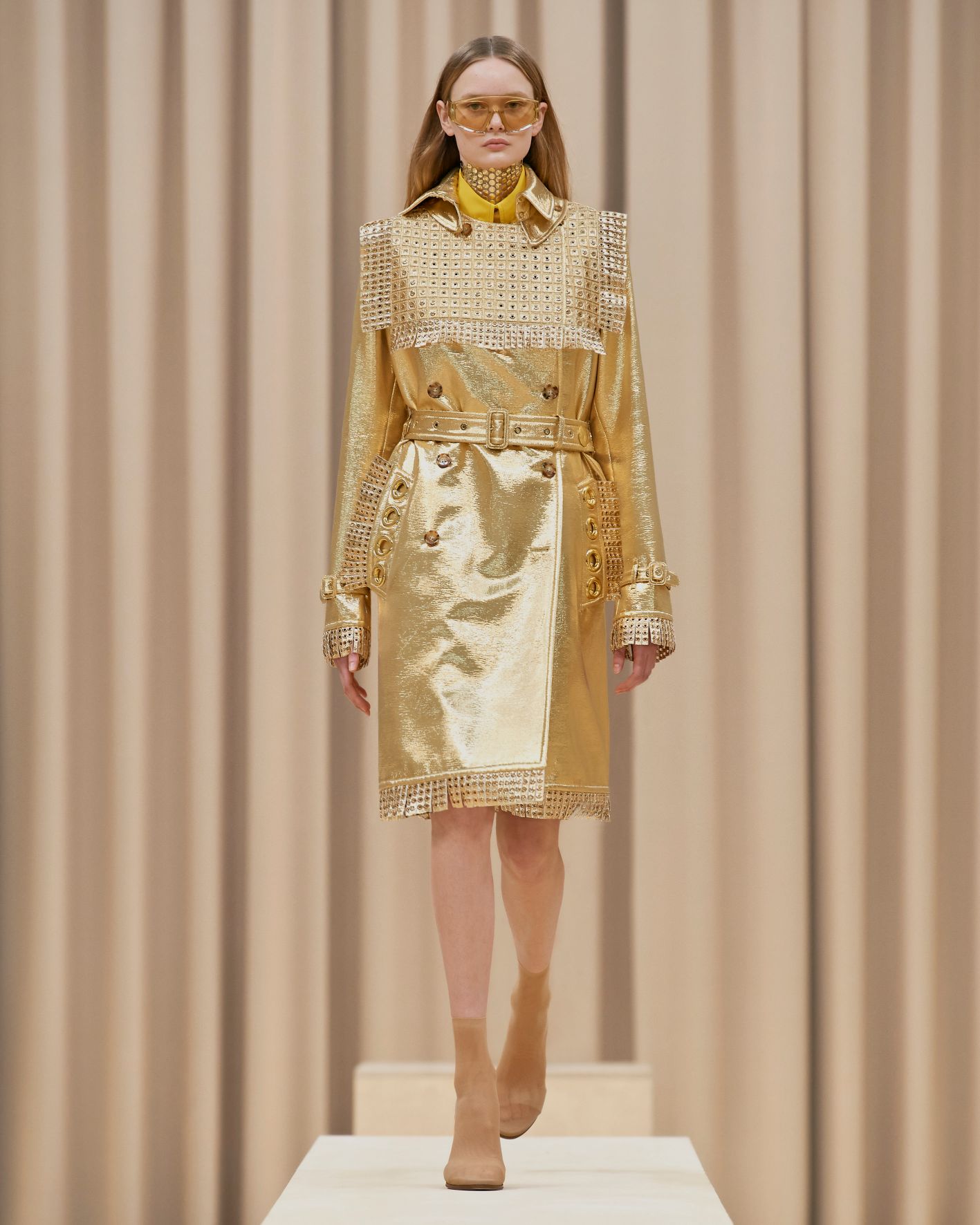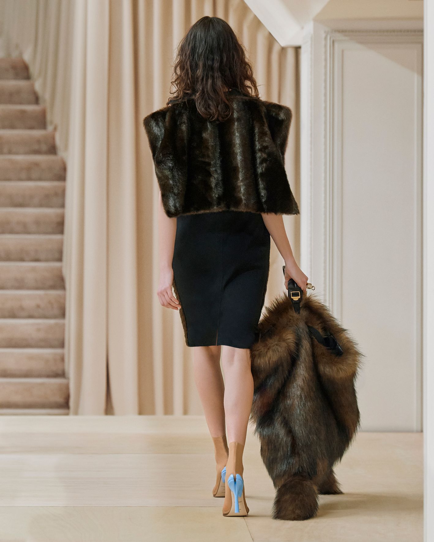 要先了解這次系列的思想,必需先留意同一季度的男裝系列。 Riccardo Tisci 當時以「ESCAPES」為主題,寓意都市人一起逃離都市的煩躁,懷念大自然的美好。然而在女裝系列之中,延續於男裝系列的場景,品牌在倫敦攝政街(Regent Street)121 號旗艦店舉行,這裡曾經是一所有名畫廊,開幕便是以手工藝品為展覽主題;當中店內以米白和深棕色為主調,採用了大量的木材和大理石建造,具有十七世紀建築風格。這次品牌重新佈置展場,沿用原本店內的簡約風格,同時增添大量的木製階梯以及淺米色的布幕,在陝小空間展現無窮想像。如果細心留意的話,這場景一致,猶如男女裝上下部曲的時裝展表達方式,是近年流行的做法,可以達到可持續發展的同時,亦能緊扣男女共穿的中性風潮。