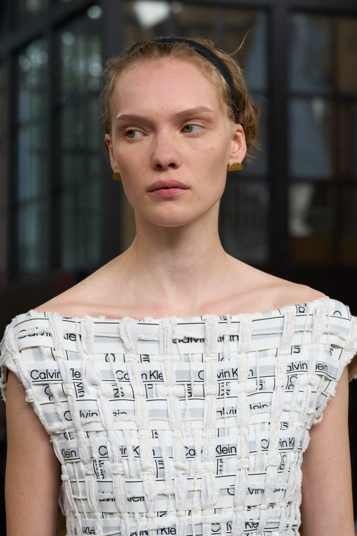 Leoni 表示:「我試圖將這一季拆分為兩種不同的做法。其一當然是透過我自己的視角來詮釋,另一個則是加強實踐對品牌標誌元素的運用,並以我的方式來詮釋它。」她是一位深思熟慮、甚至充滿激情的設計師,但把設計過度知識化從來不是 Calvin 的方式。那件如紙張般皺褶的大衣和連身裙看起來過度藝術化;絨球裝飾顯得有些多餘甚至趣怪;而由內褲腰帶編織而成的雕塑感晚禮服,或許是一項技術成就,但真的有女性會願意穿上身嗎?Klein 一向致力於剔除多餘的元素,以追求一種現代感的樣貌:其中既有嚴謹,亦有一種鬆弛。