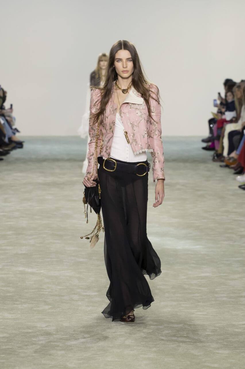 Chloé 2025秋冬系列於巴黎正式發佈,創意總監Chemena Kamali深知品牌的文化遺產與其在時尚史上的里程碑意義,在她筆下,Chloé女性不再僅僅是一種浪漫的象徵,而是一種真實、複雜且多樣的個體存在。因此,本季的設計不僅是在審視過去,更是在重新定義「Chloé女性」這個概念——她是自由的、真實的,並且擁有自己的聲音。