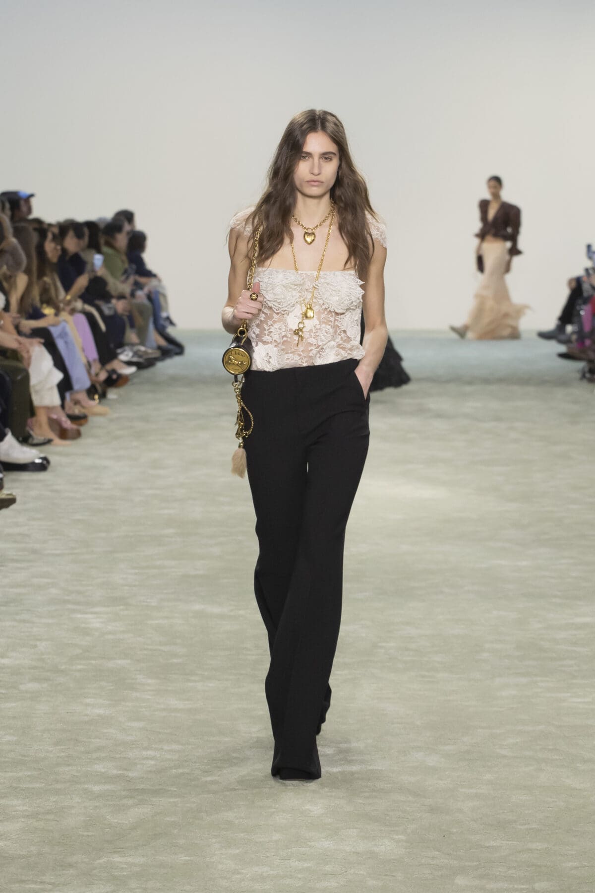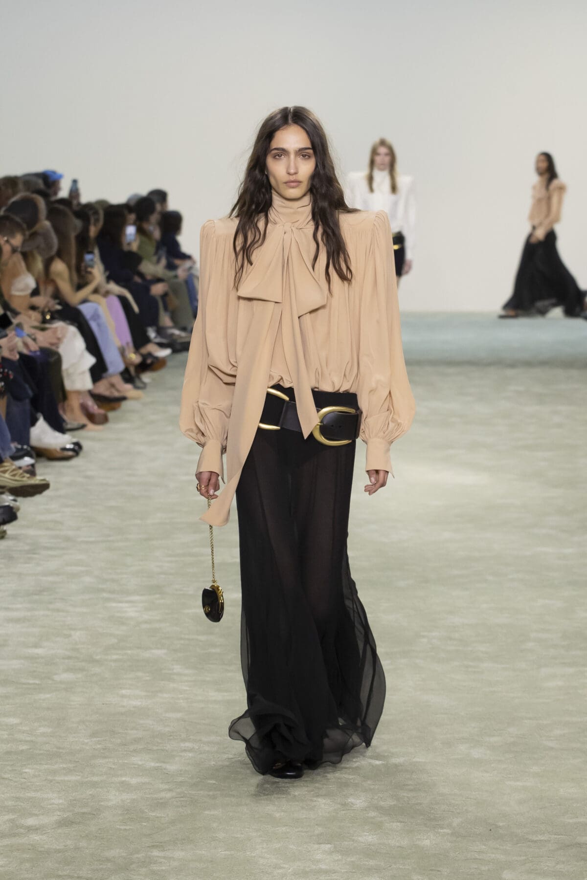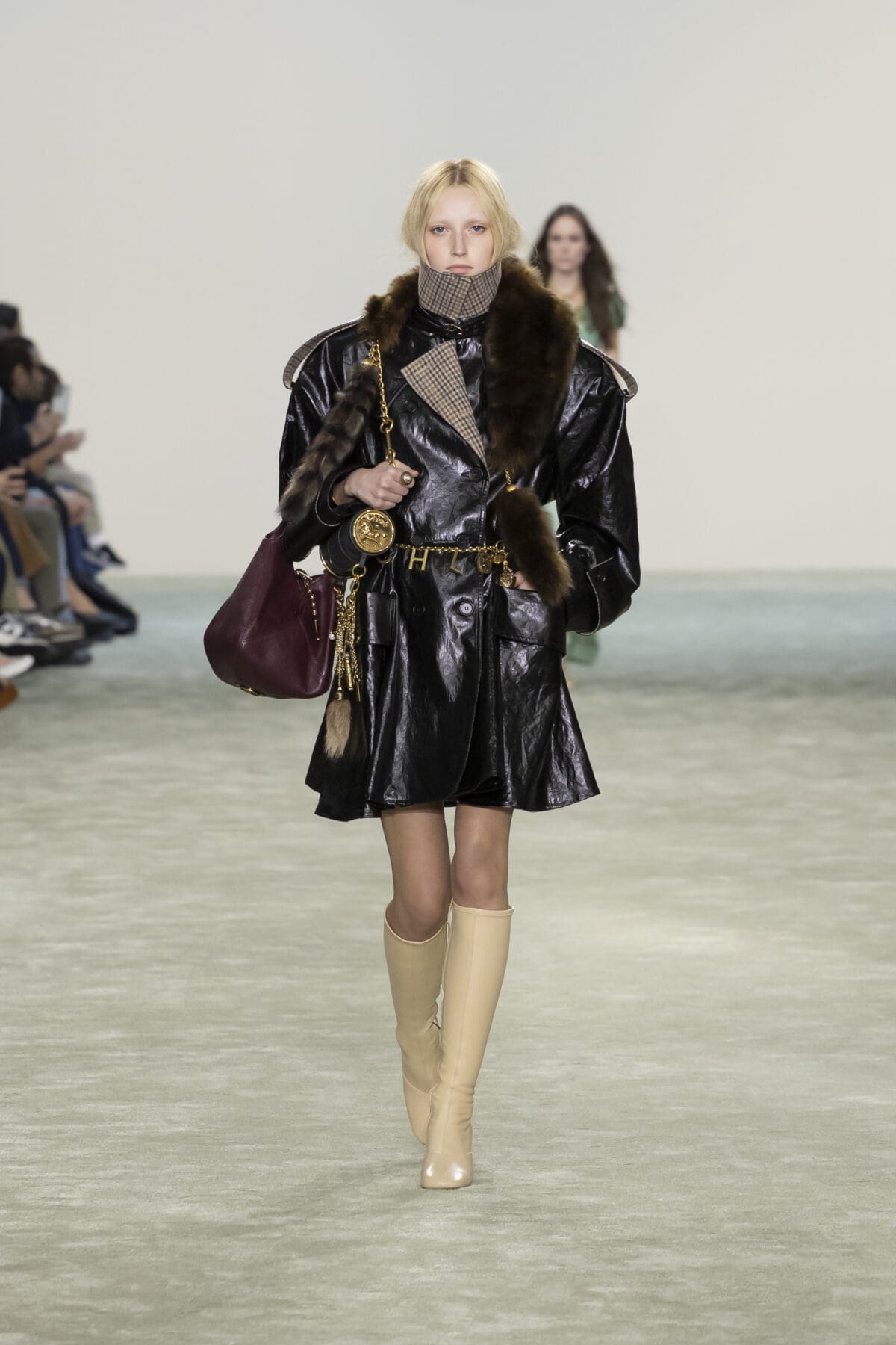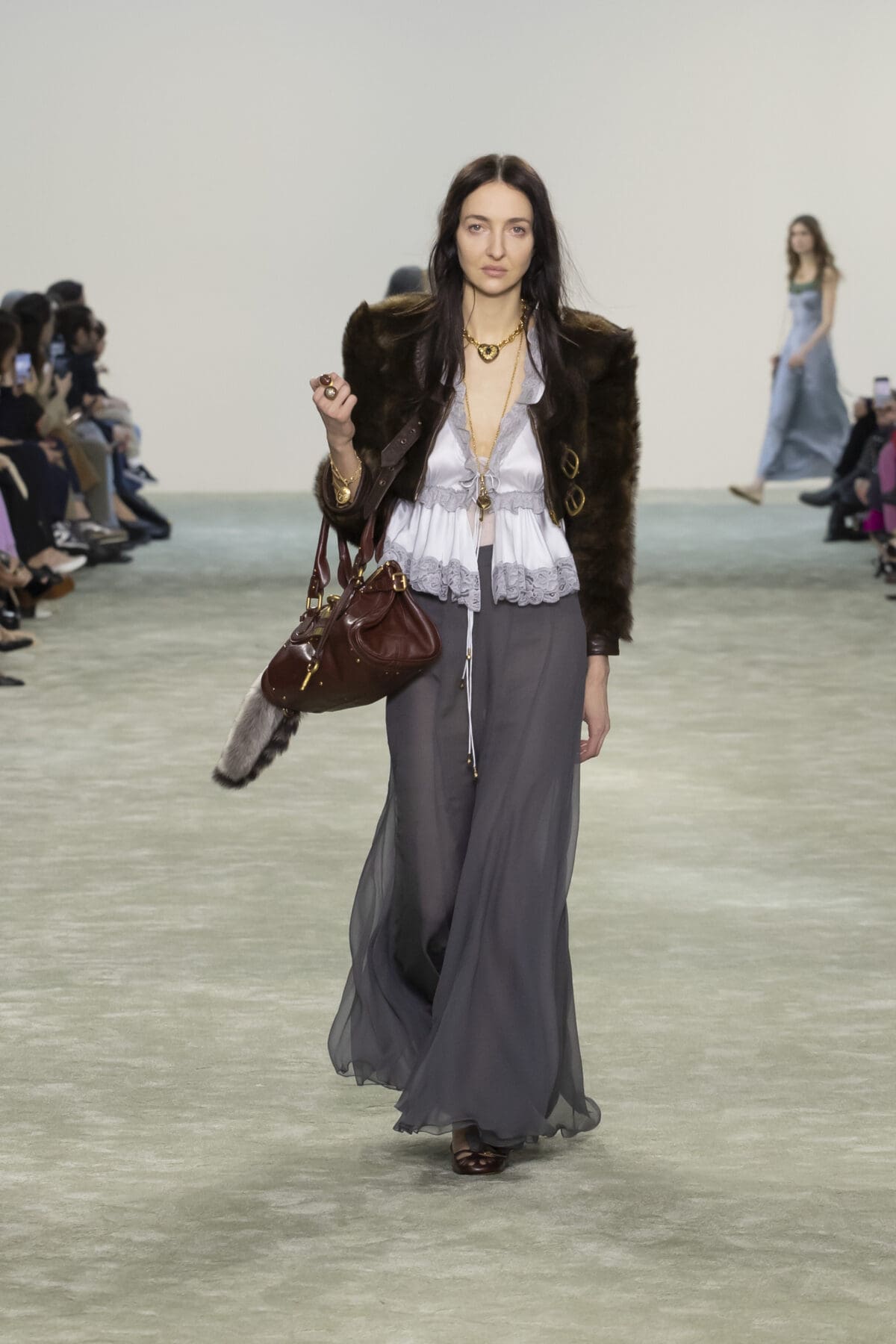 本季Chemena Kamali讓2005年由Phoebe Philo設計的經典Paddington手袋重返舞台。這款手袋曾是2000年代的時尚寵兒,如今在Chemena Kamali的手中被重新詮釋,以更加輕量化的設計和低調奢華的細節回應現代女性的需求。