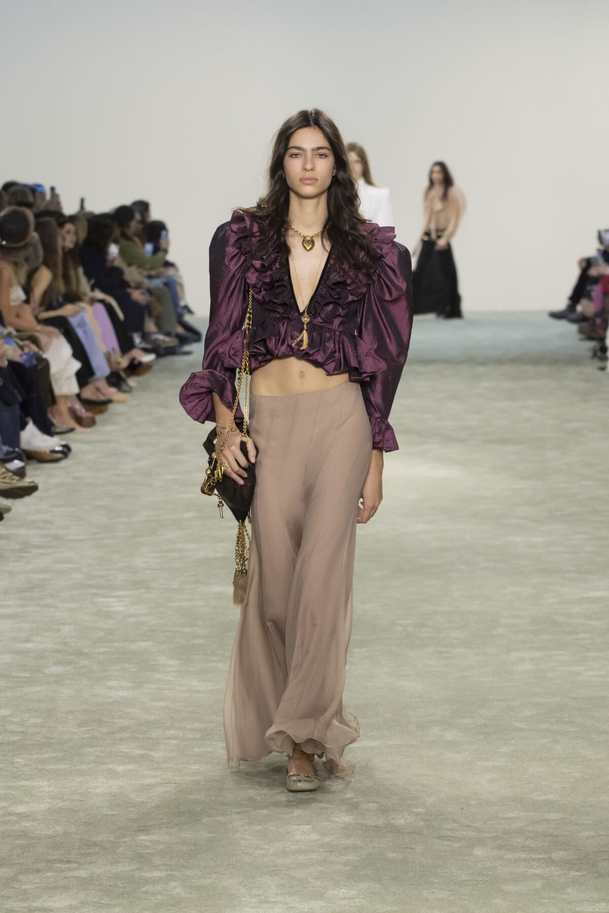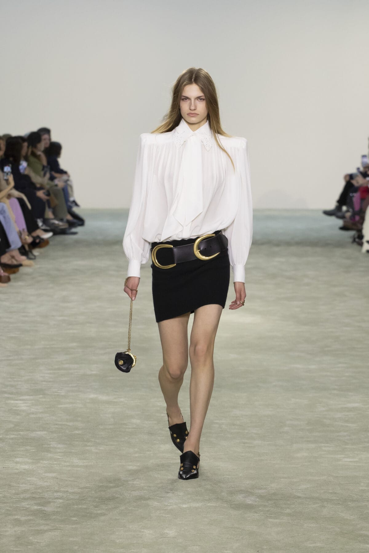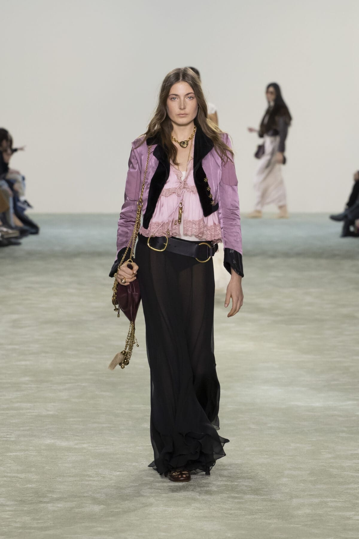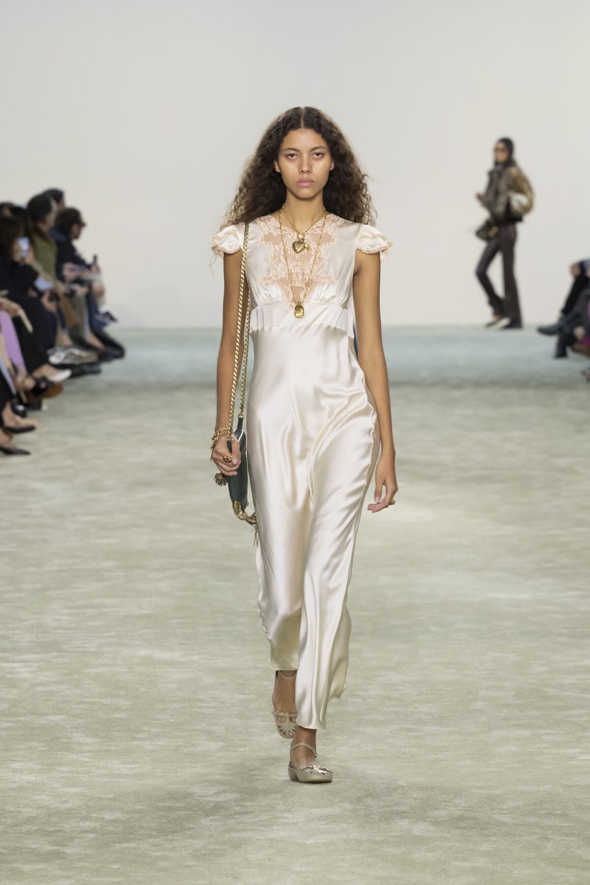 本季Chemena Kamali讓2005年由Phoebe Philo設計的經典Paddington手袋重返舞台。這款手袋曾是2000年代的時尚寵兒,如今在Chemena Kamali的手中被重新詮釋,以更加輕量化的設計和低調奢華的細節回應現代女性的需求。