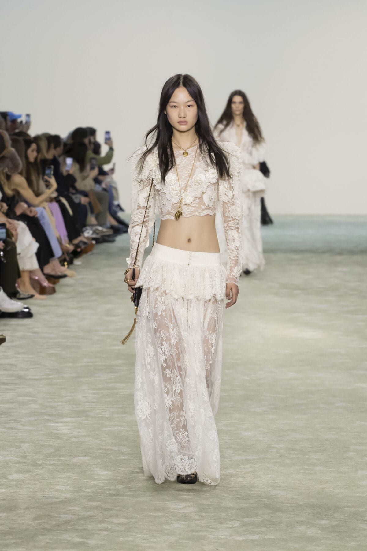 Chloé 2025秋冬系列於巴黎正式發佈,創意總監Chemena Kamali深知品牌的文化遺產與其在時尚史上的里程碑意義,在她筆下,Chloé女性不再僅僅是一種浪漫的象徵,而是一種真實、複雜且多樣的個體存在。因此,本季的設計不僅是在審視過去,更是在重新定義「Chloé女性」這個概念——她是自由的、真實的,並且擁有自己的聲音。