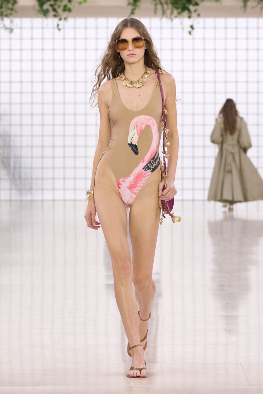 與她的首作一樣,第二個系列同樣建立她對 Chloé 歷史的深入了解,尤其是像 Karl Lagerfeld 70年代末的設計,如1978 年春季的蕾絲燈籠褲貫穿了今季,或是1977年的原創手繪作品,變奏出今季系列的絢爛盛放的玫瑰和牡丹印花(還有喇叭牛仔褲、紅鶴圖案泳衣等,讓人想起 Phoebe Philo、Stella McCartney時代的 Chloé )。