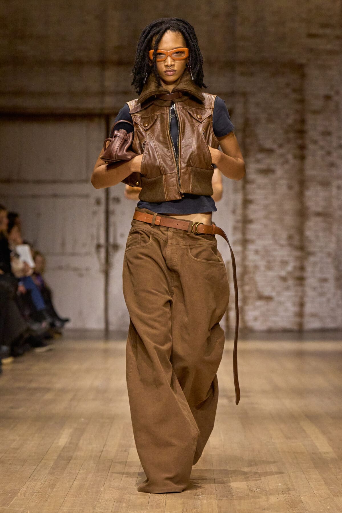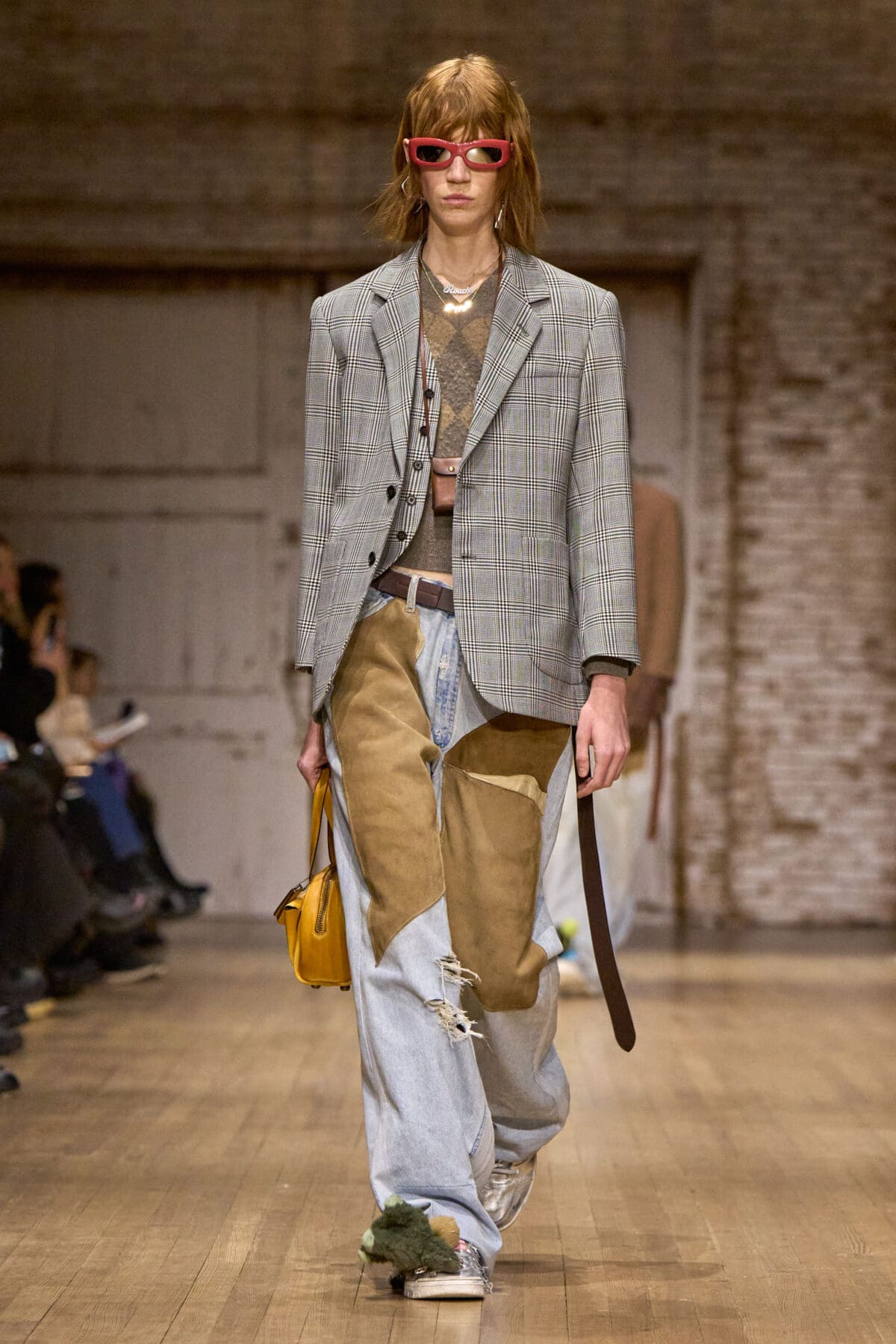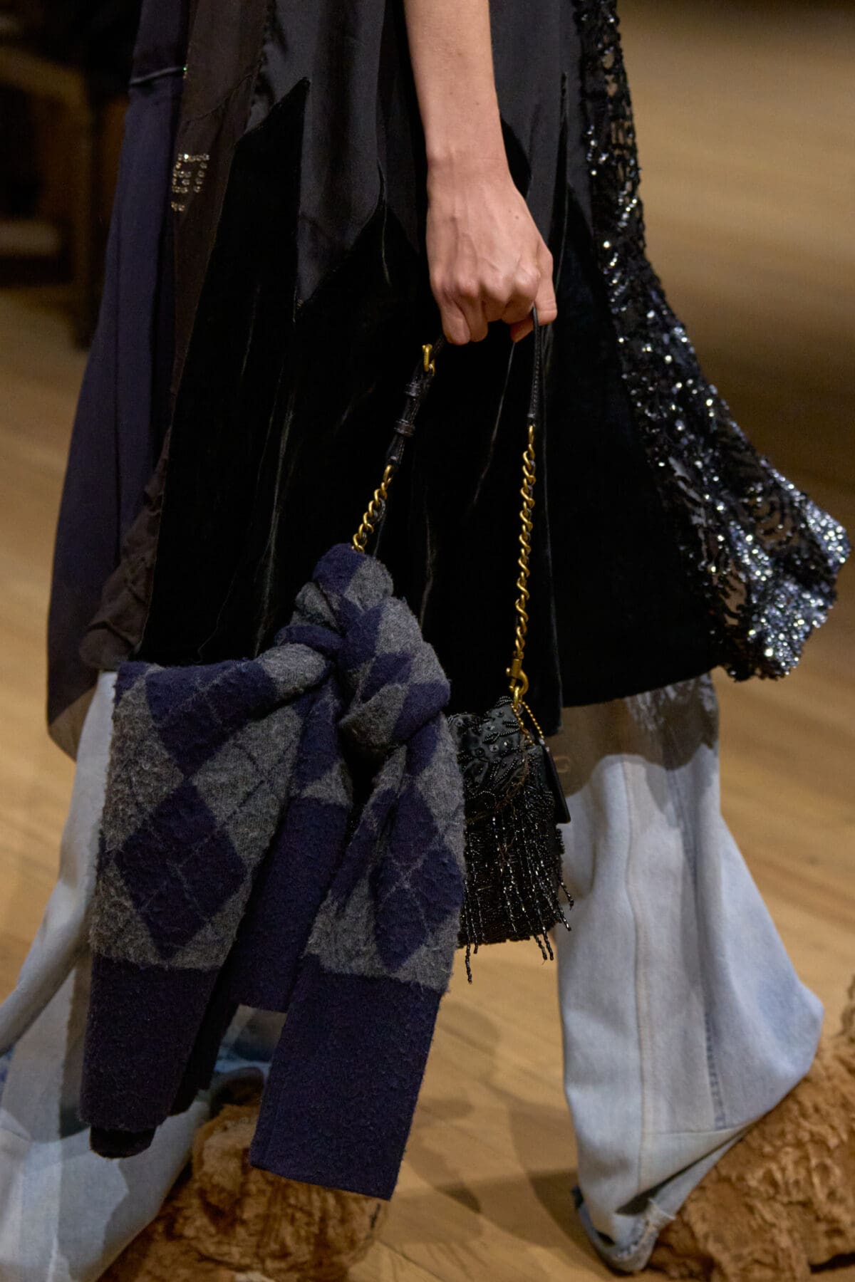 在這一季中,Stuart Vevers進一步深化了Coach對可持續時尚的承諾,「我不斷受到當今一代人能夠巧妙地運用美國時尚詞彙中的經典元素,並將其轉化為自己的風格的啟發。這一季的展示深受『善用現有資源』的理念影響,展現了創意與實用的完美結合。」系列中所有的牛仔布均採用升級再造技術,而帶有皮革補丁的牛仔褲更是成為亮點。這些設計不僅展現了Stuart Vevers對工藝的極致鑽研,也傳遞了對環境責任的思考。