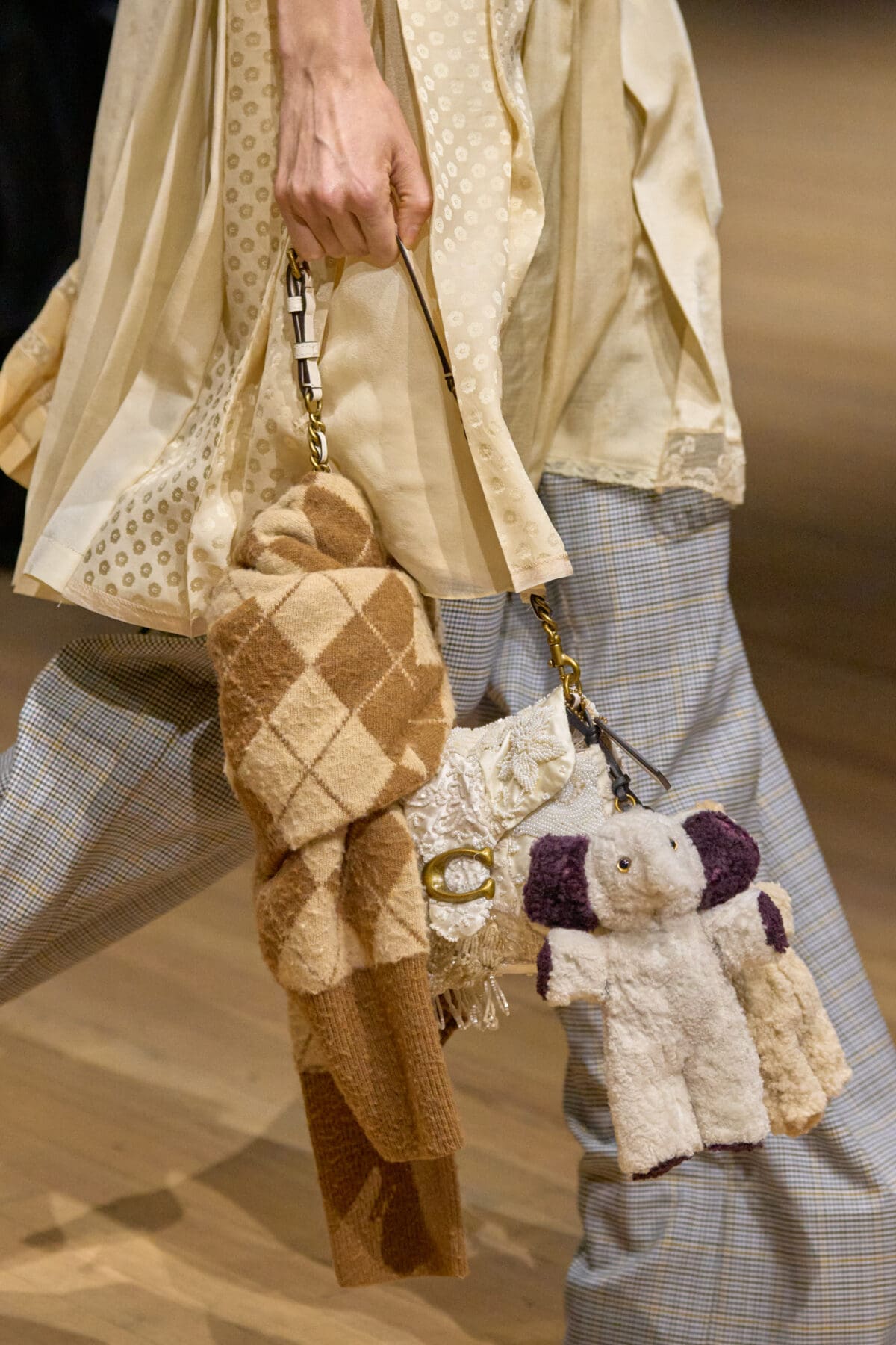 Stuart Vevers掌舵Coach十餘年,一直秉持「以誠實、實用和直接的方式來設計時尚」的目標,將社會洞察和城市文化化為設計語言,打造專屬於Coach的時尚風格。本季他將紐約的多元文化融入設計,從街頭風格到都市時裝,從反主流文化到經典優雅,系列中的作品都像是這座城市的一個剪影。模特兒們身着Oversized大衣、手工壓制的皮革單品,以及充滿故事感的配飾,彷彿在紐約的街頭穿梭,將這座城市的複雜氣質淋漓盡致地展現出來。