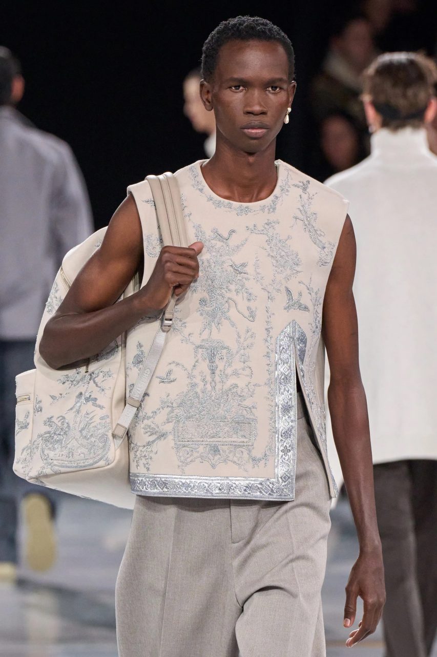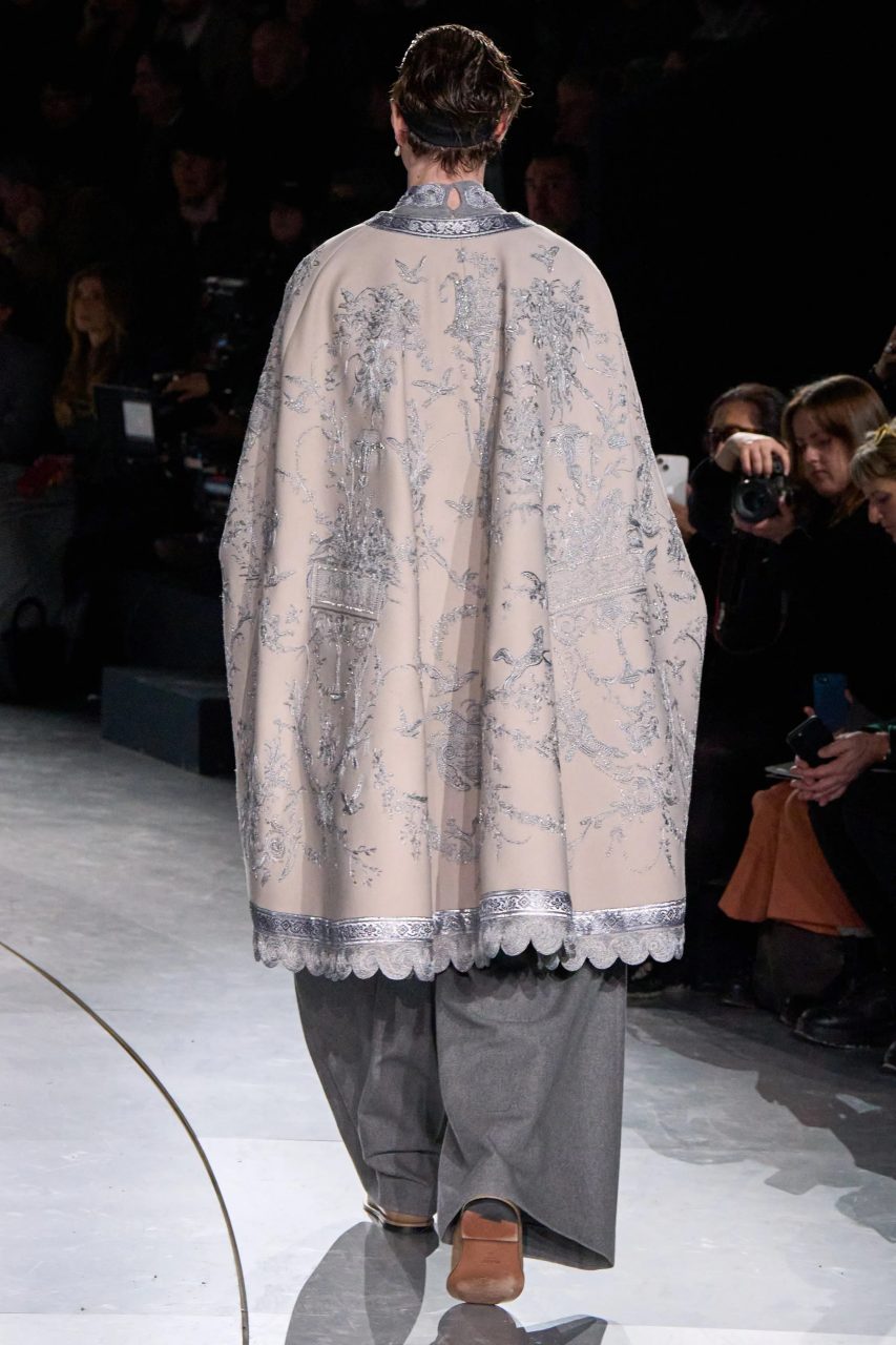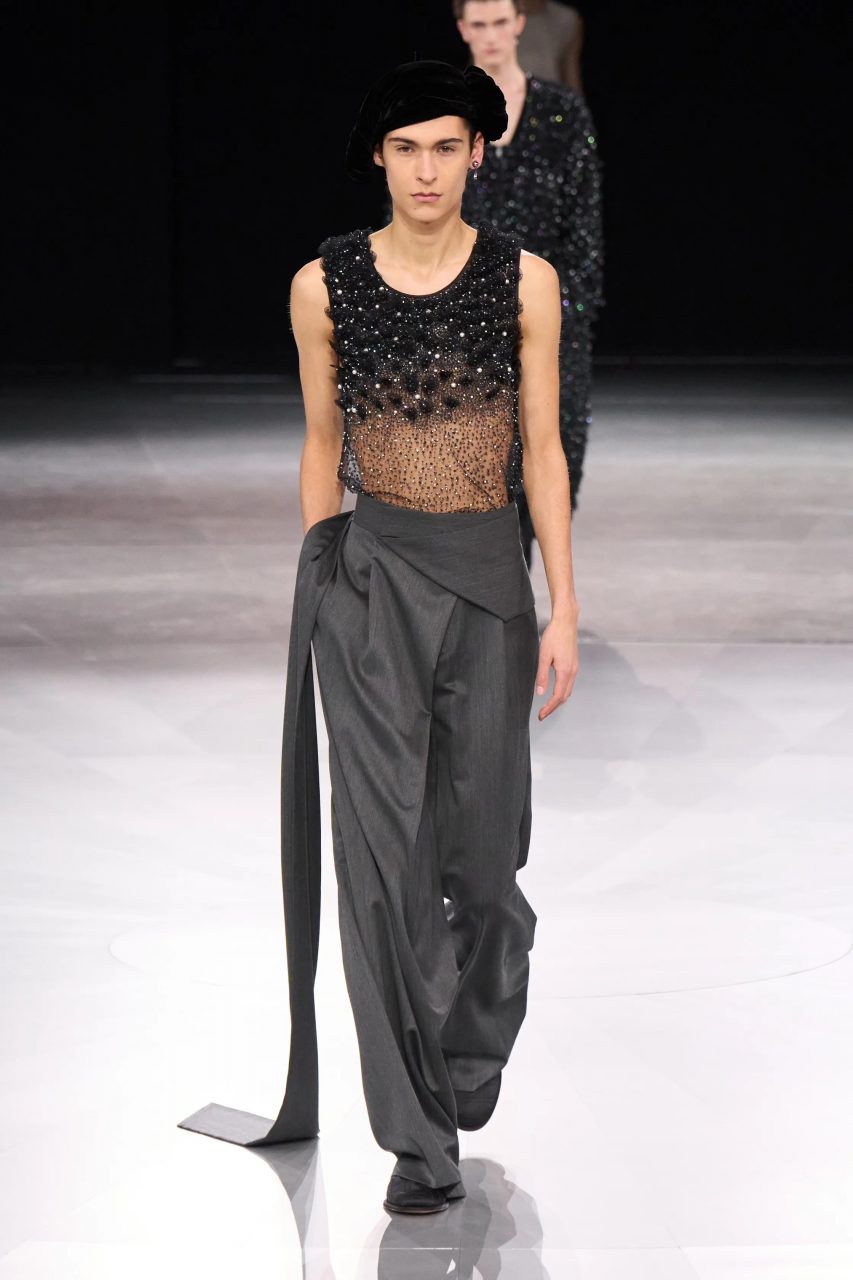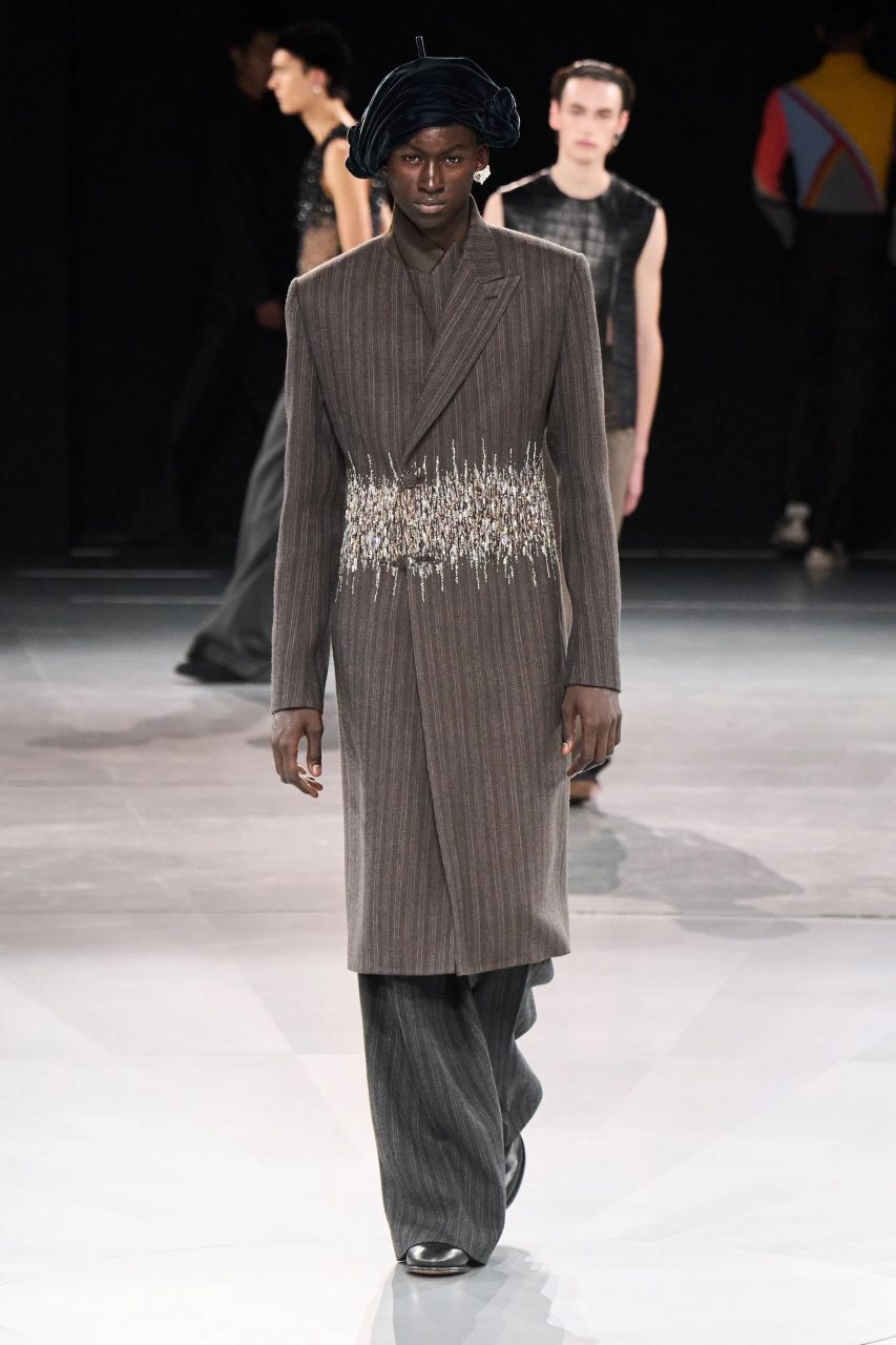 簡約、自律、奢華。以芭蕾藝術男性為靈感切入,Kim Jones今季首次推出高訂時裝,向大眾呈現實用與奢華融合的精緻美學。服裝參考過往系列,適當保留開衩、褶襇及領口,大量用上對稱、合身剪裁,偏灰紅的大地色系讓整體更和諧溫柔,少量加上亮彩色,以及芭蕾舞鞋元素,再度呼應主題。