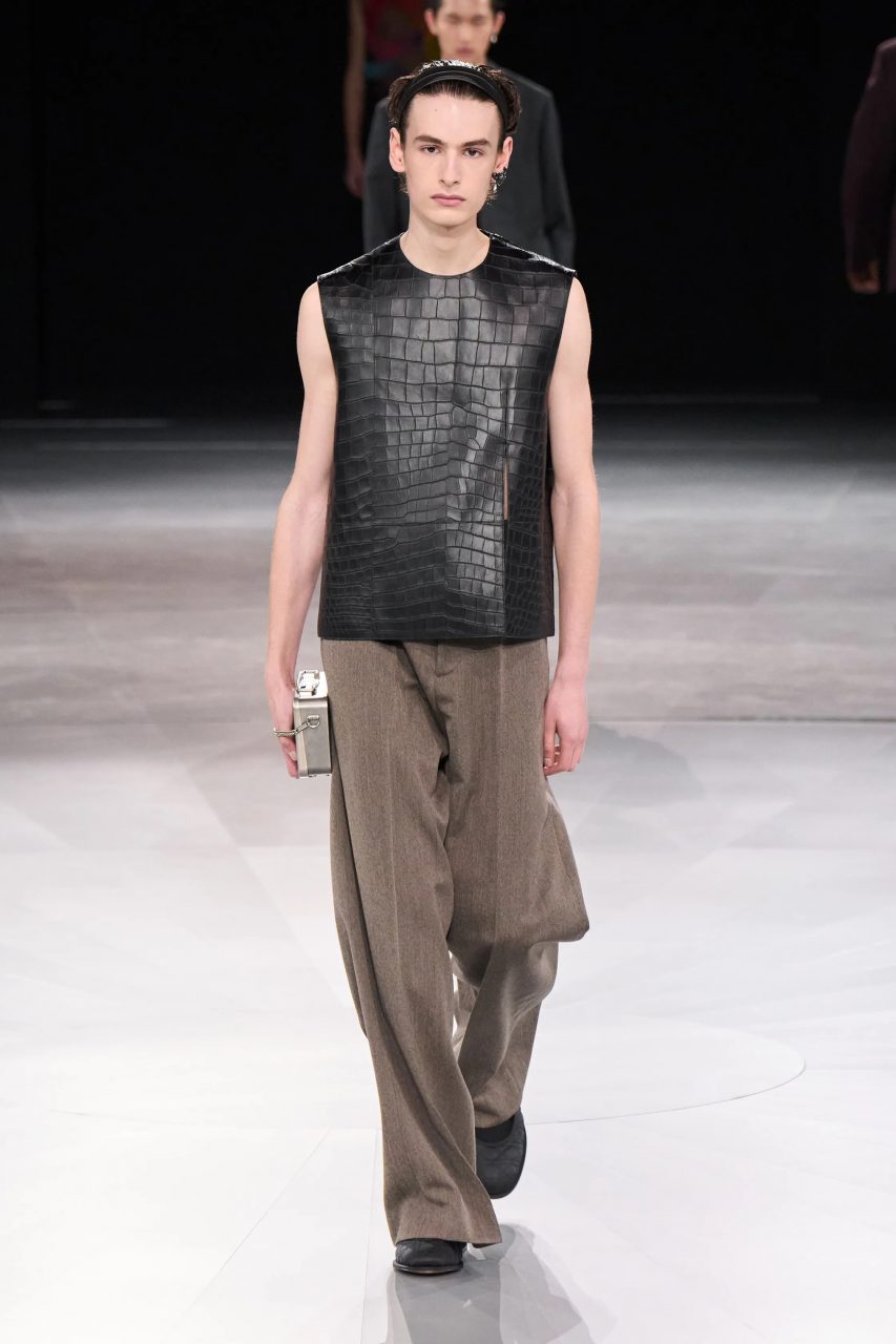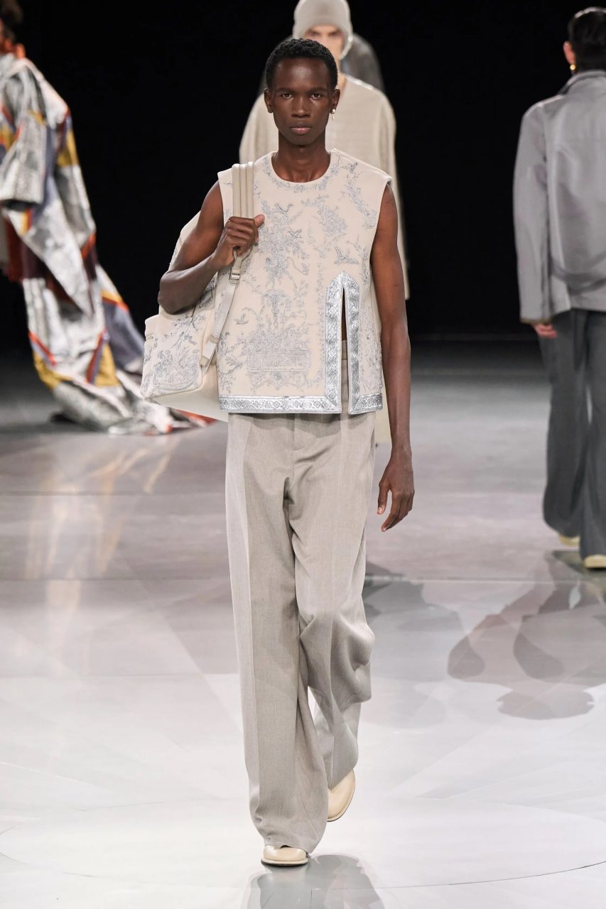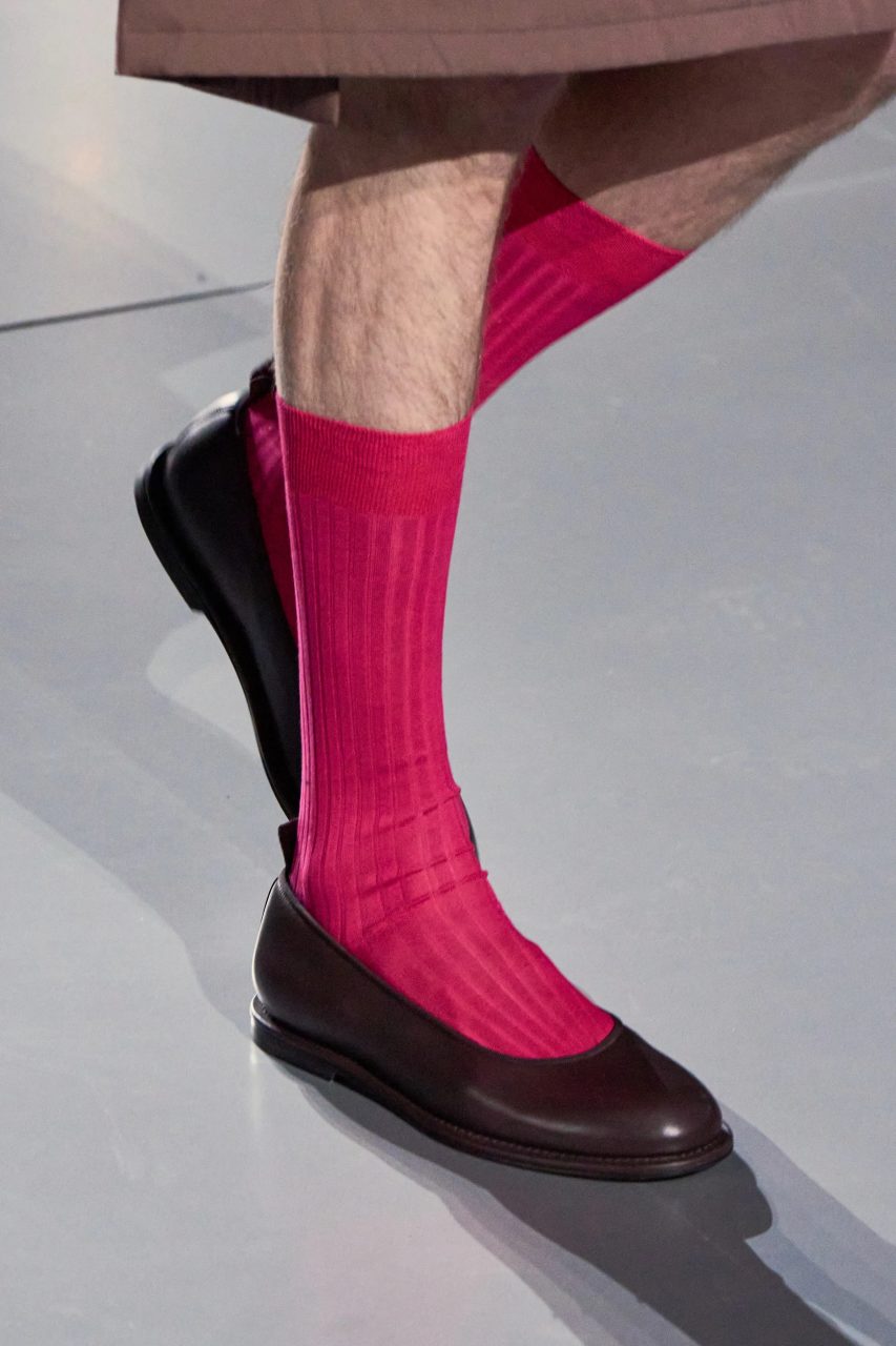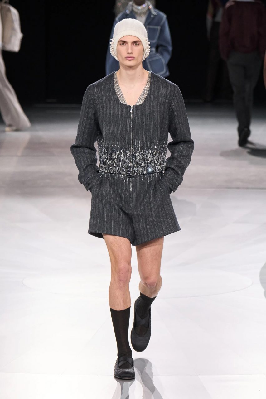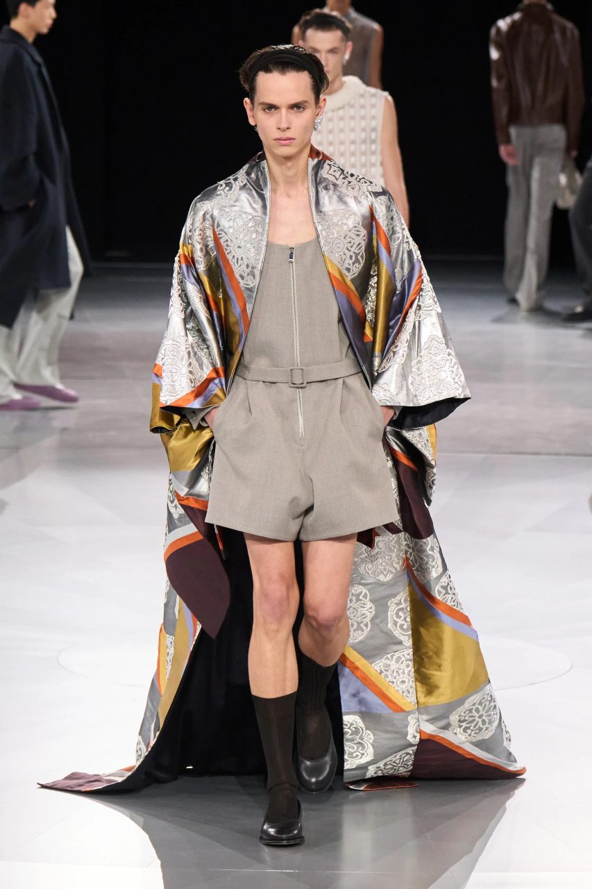 簡約、自律、奢華。以芭蕾藝術男性為靈感切入,Kim Jones今季首次推出高訂時裝,向大眾呈現實用與奢華融合的精緻美學。服裝參考過往系列,適當保留開衩、褶襇及領口,大量用上對稱、合身剪裁,偏灰紅的大地色系讓整體更和諧溫柔,少量加上亮彩色,以及芭蕾舞鞋元素,再度呼應主題。