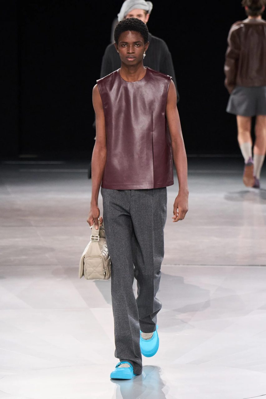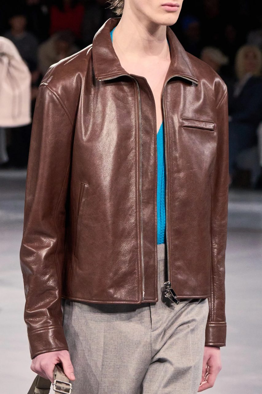 皮褸常給人型格幹練的形象,而Kim Jones筆下的皮質單品則散發著柔和溫婉的氣息。省去鈕釘、金屬圈等冷酷元素,也沒有多餘的裝飾車線,只剩合身剪裁的輪廓形成順暢的線條,簡約淡然。