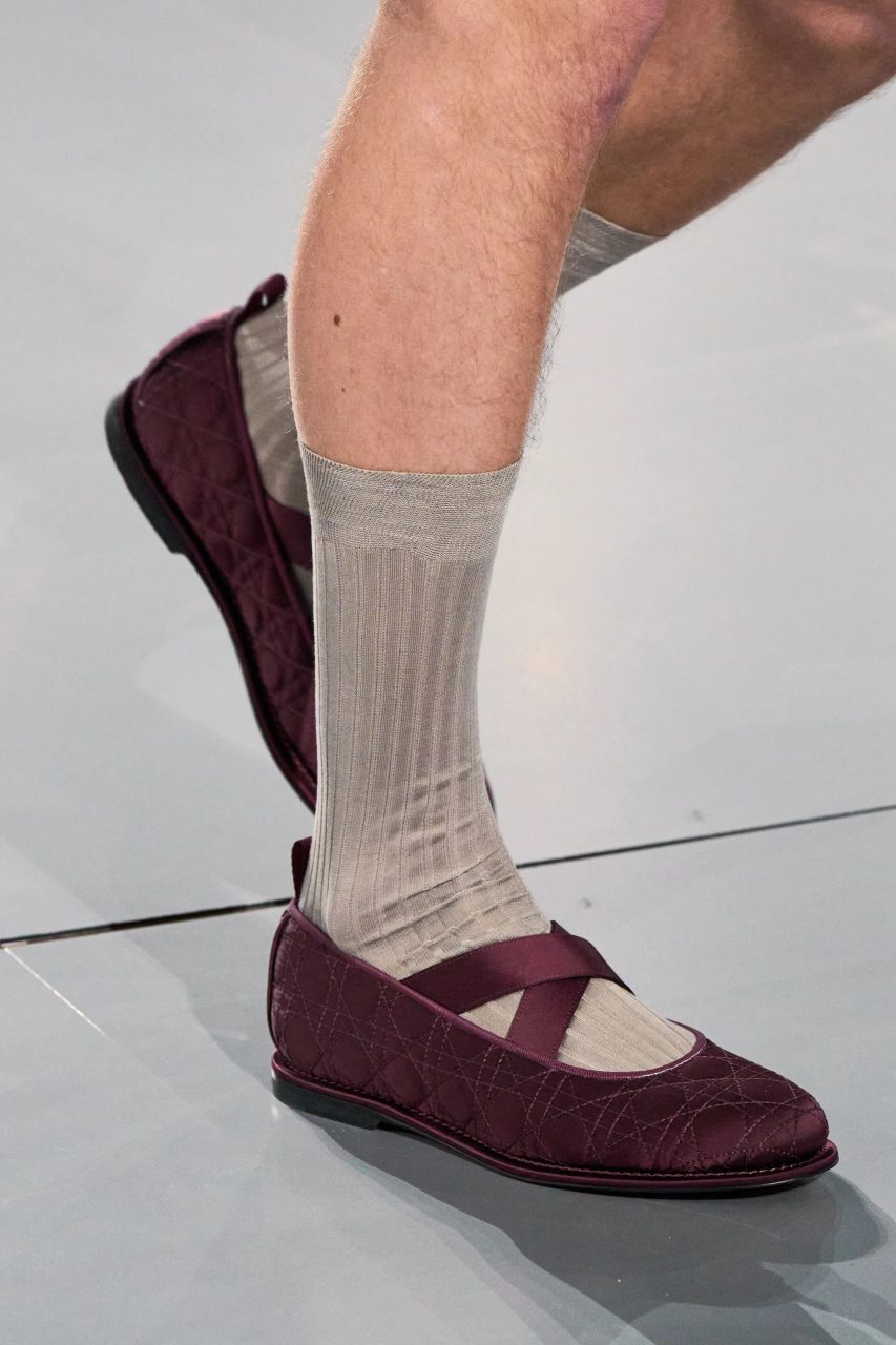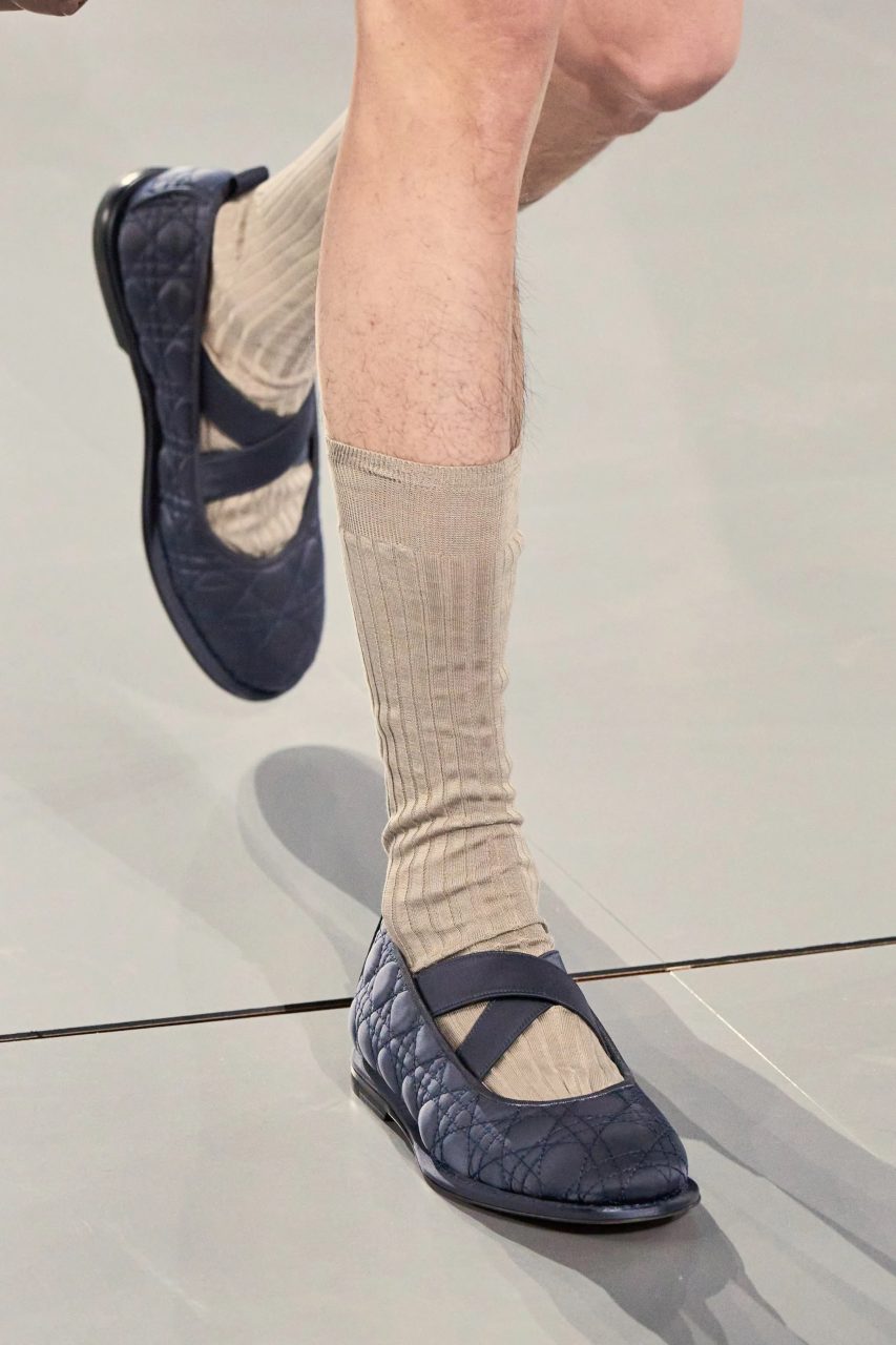 既然以芭蕾藝術為主題,怎能不提各款吸睛的芭蕾舞鞋?不論是短褲、長版西裝褲還是棉褲,都能襯上一對優雅的「芭蕾舞鞋」。飾有緞面絲帶,部分設計印有Dior signature格仔車線以及Oblique壓紋,相當精緻。