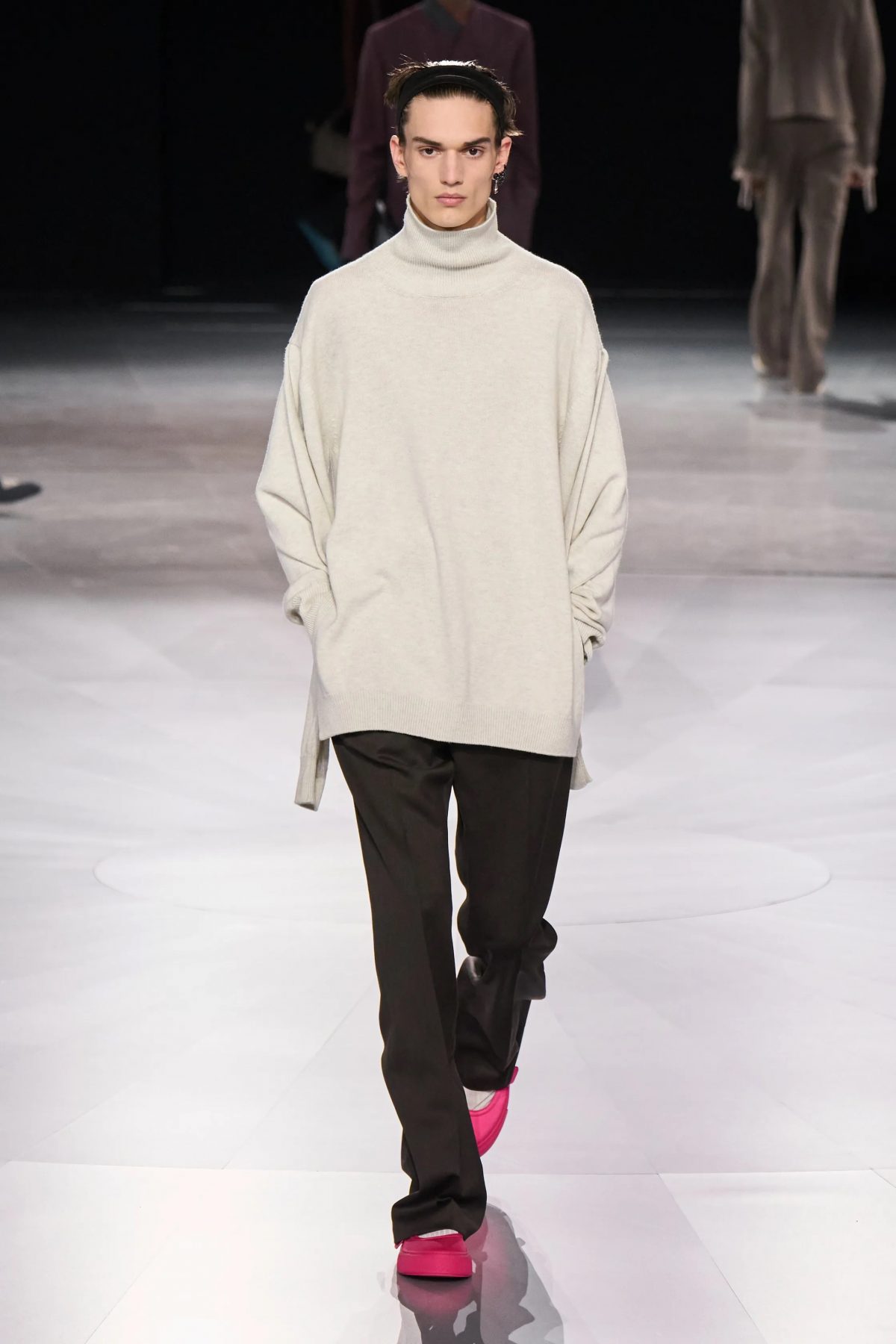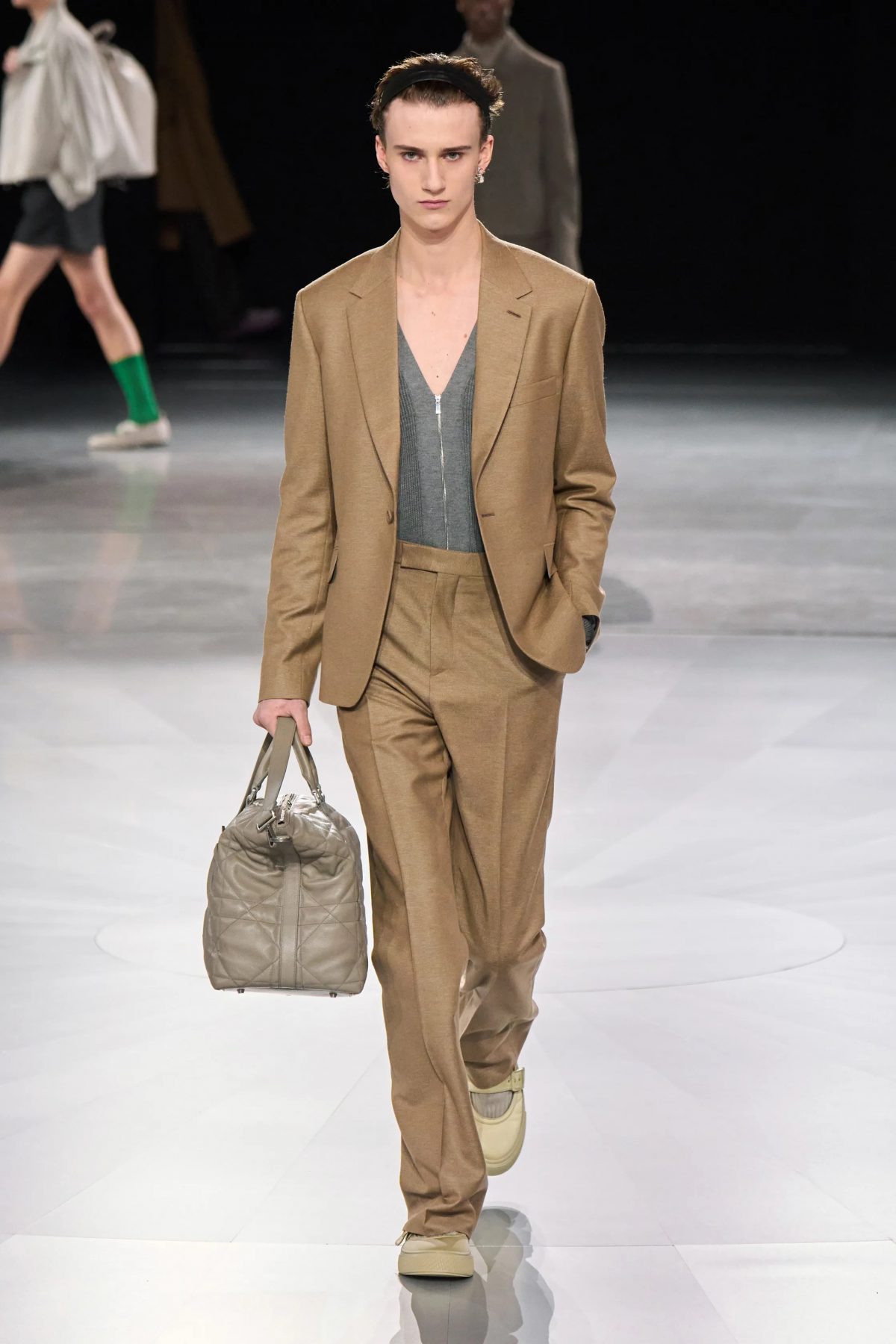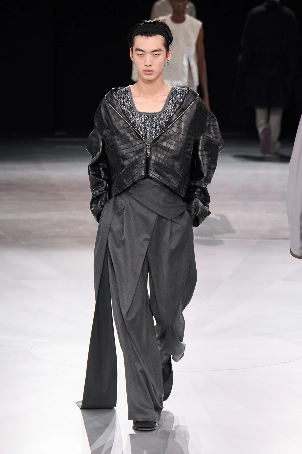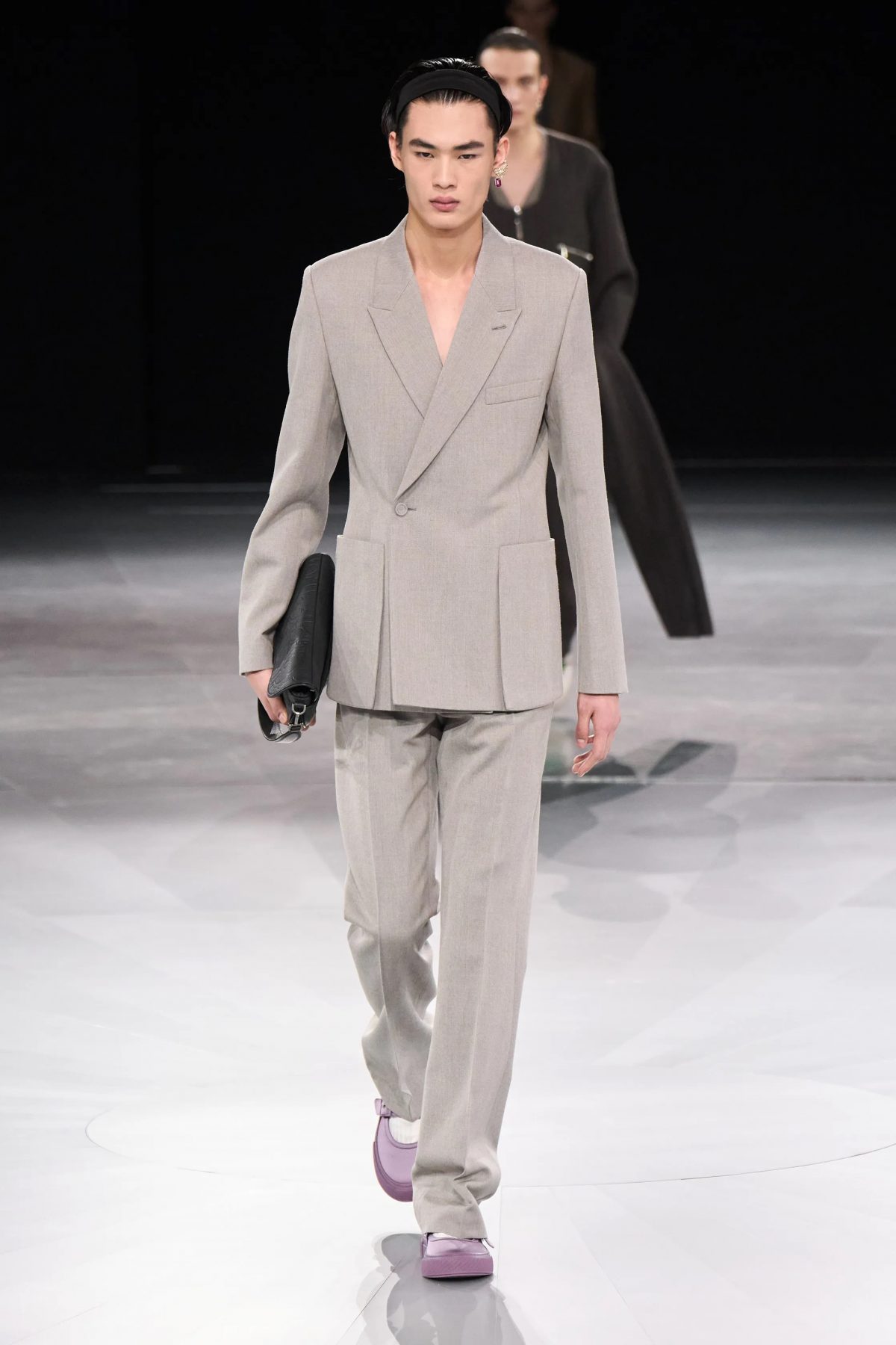 簡約、自律、奢華。以芭蕾藝術男性為靈感切入,Kim Jones今季首次推出高訂時裝,向大眾呈現實用與奢華融合的精緻美學。服裝參考過往系列,適當保留開衩、褶襇及領口,大量用上對稱、合身剪裁,偏灰紅的大地色系讓整體更和諧溫柔,少量加上亮彩色,以及芭蕾舞鞋元素,再度呼應主題。