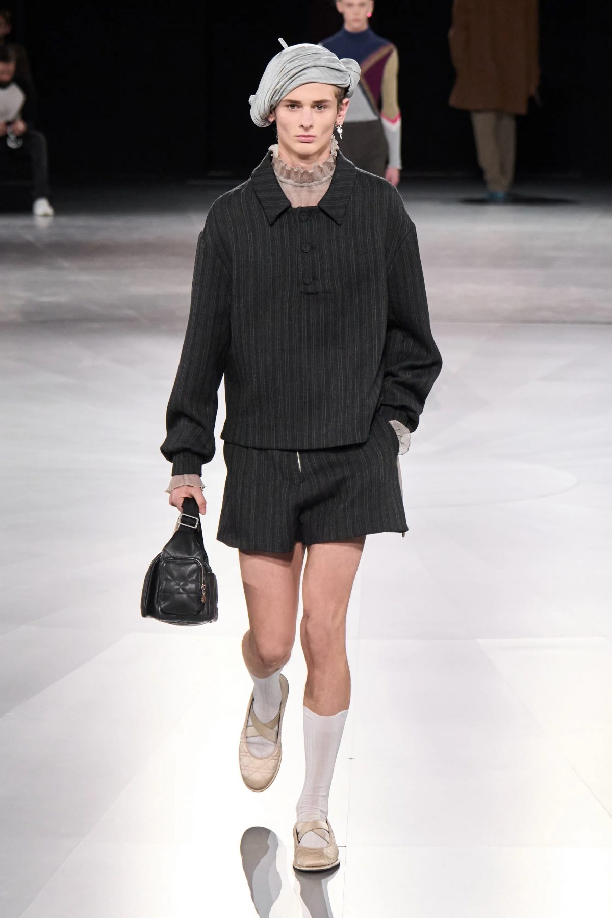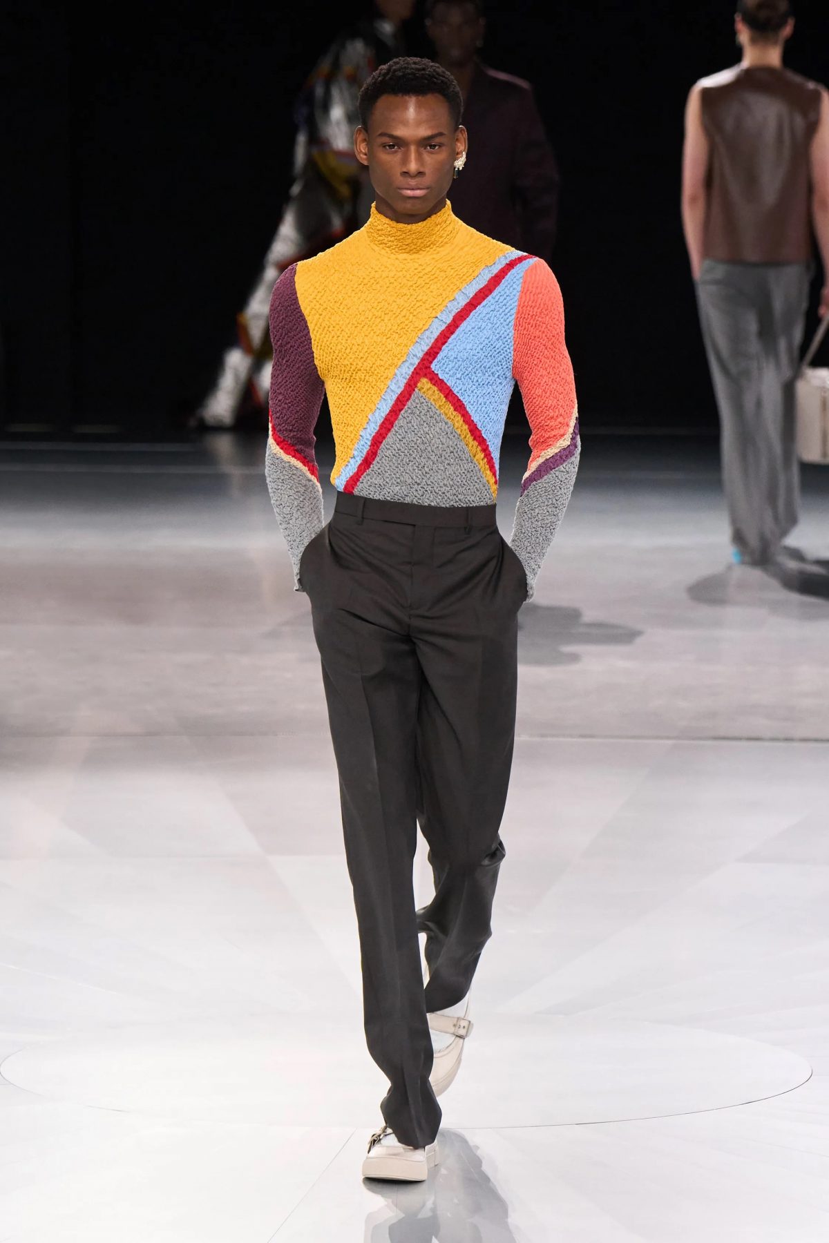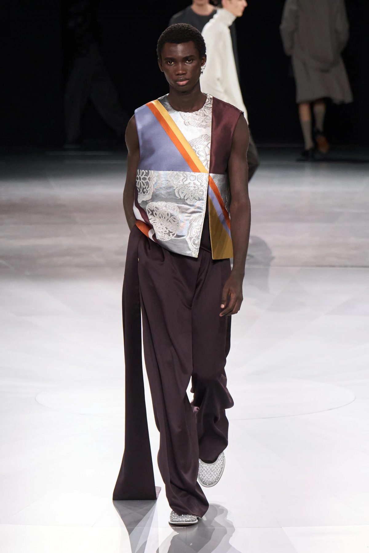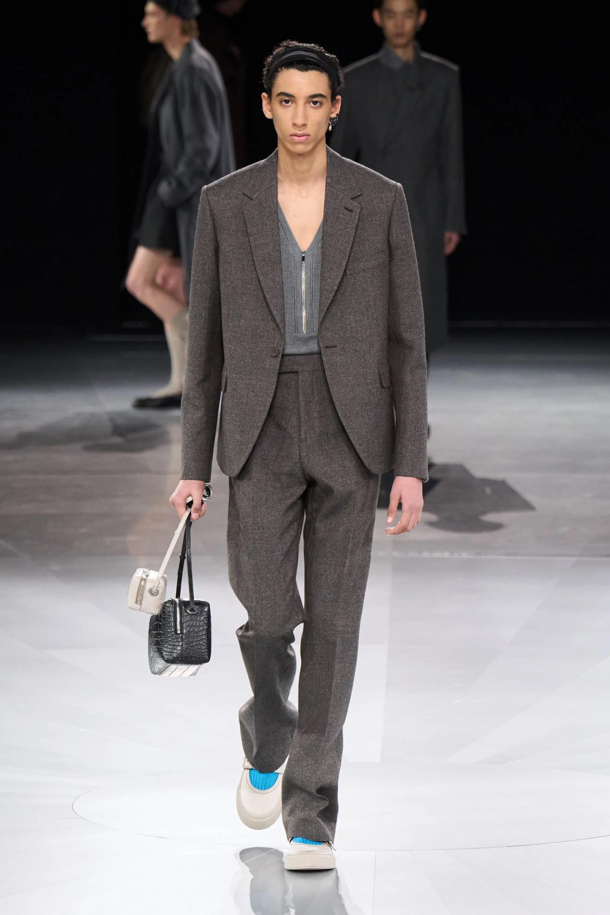 簡約、自律、奢華。以芭蕾藝術男性為靈感切入,Kim Jones今季首次推出高訂時裝,向大眾呈現實用與奢華融合的精緻美學。服裝參考過往系列,適當保留開衩、褶襇及領口,大量用上對稱、合身剪裁,偏灰紅的大地色系讓整體更和諧溫柔,少量加上亮彩色,以及芭蕾舞鞋元素,再度呼應主題。