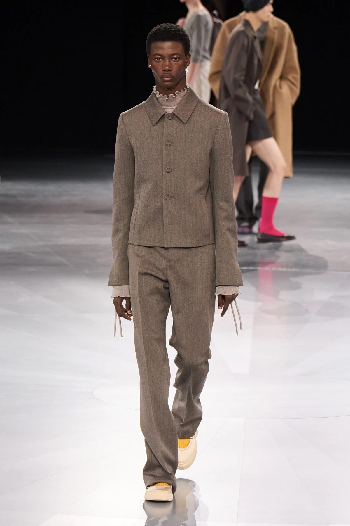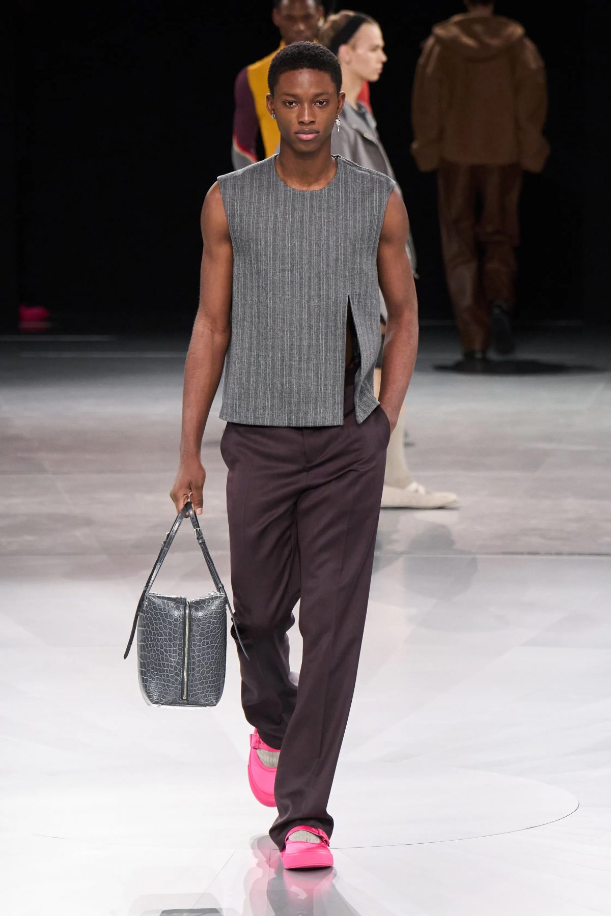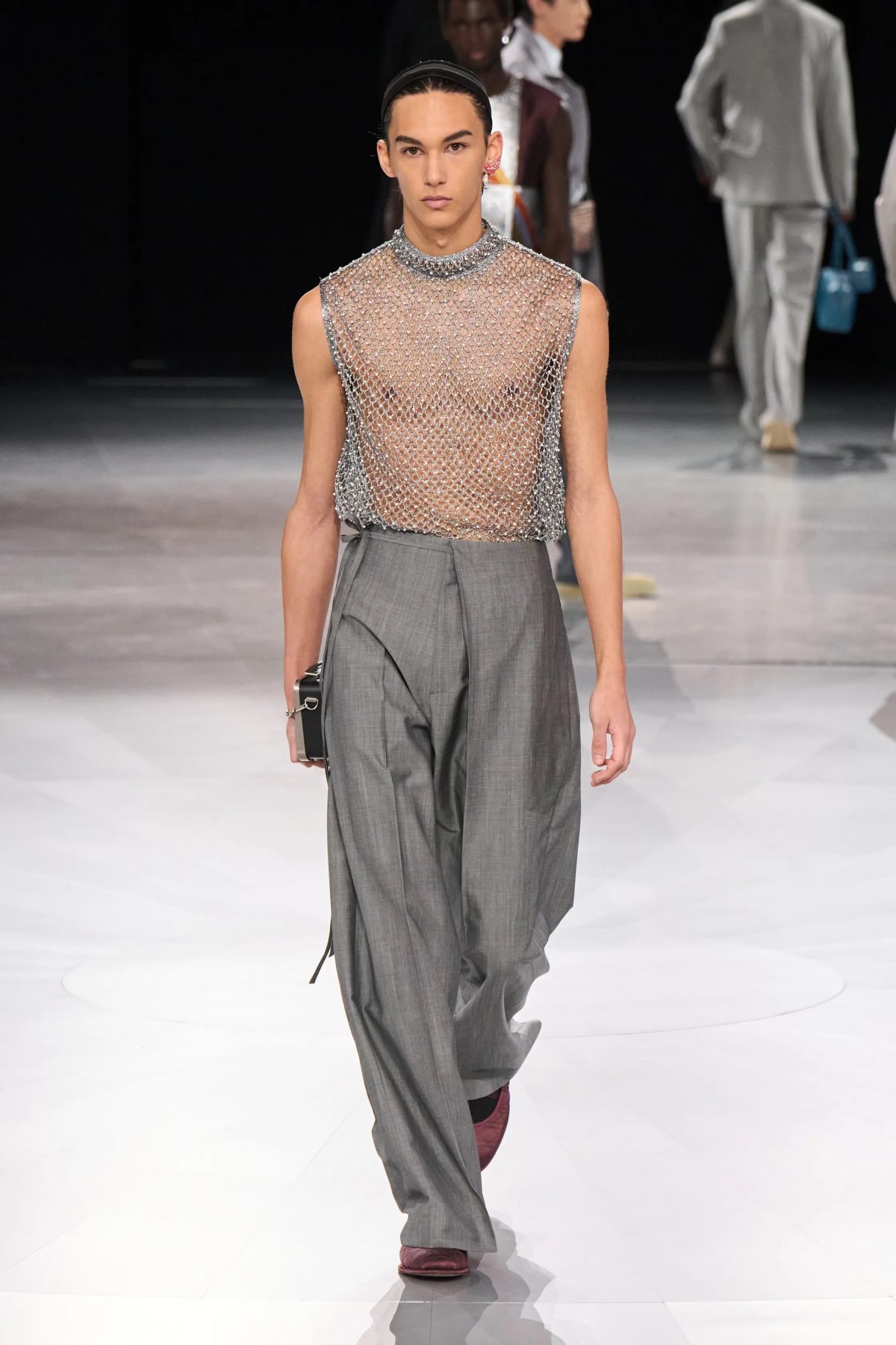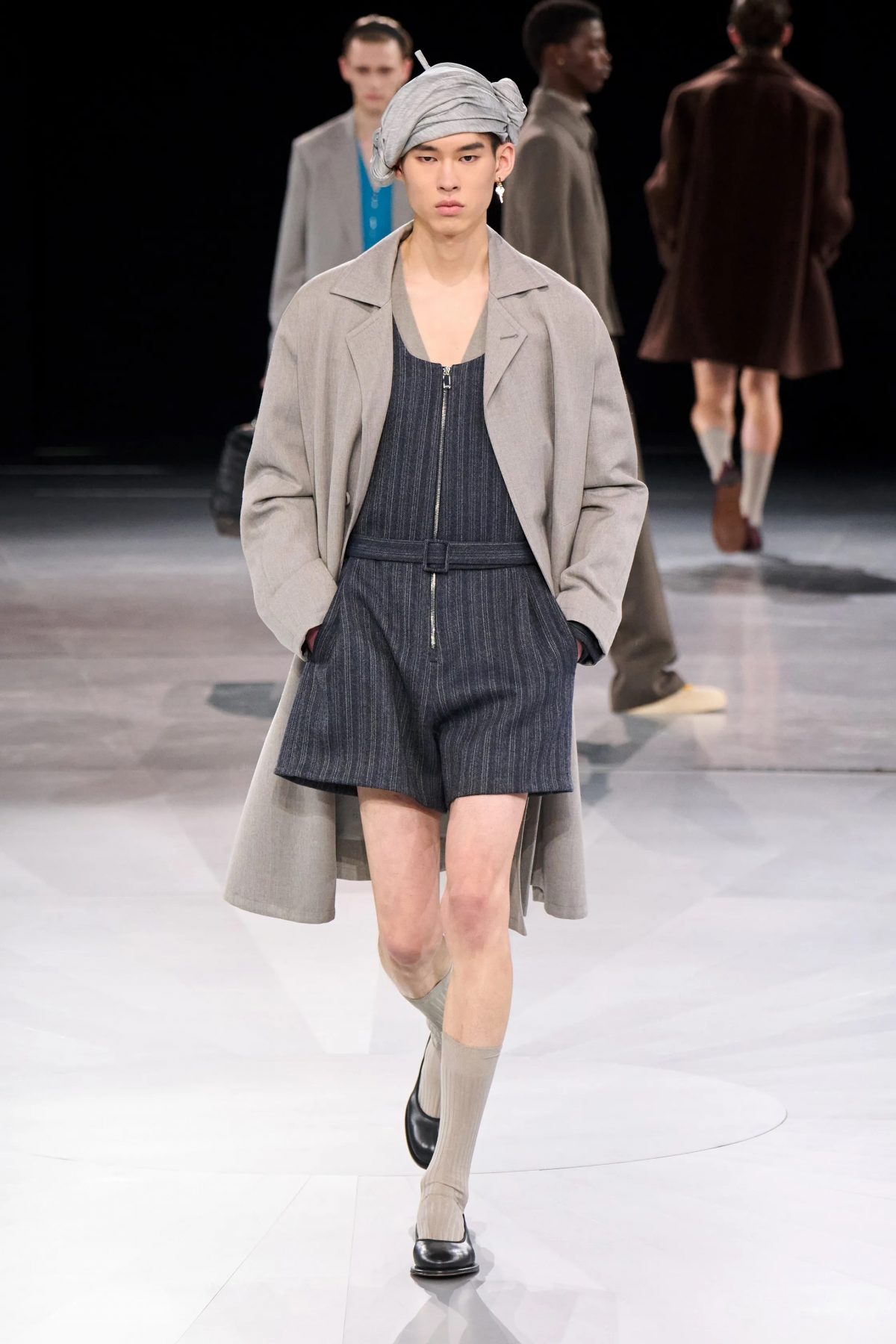 簡約、自律、奢華。以芭蕾藝術男性為靈感切入,Kim Jones今季首次推出高訂時裝,向大眾呈現實用與奢華融合的精緻美學。服裝參考過往系列,適當保留開衩、褶襇及領口,大量用上對稱、合身剪裁,偏灰紅的大地色系讓整體更和諧溫柔,少量加上亮彩色,以及芭蕾舞鞋元素,再度呼應主題。