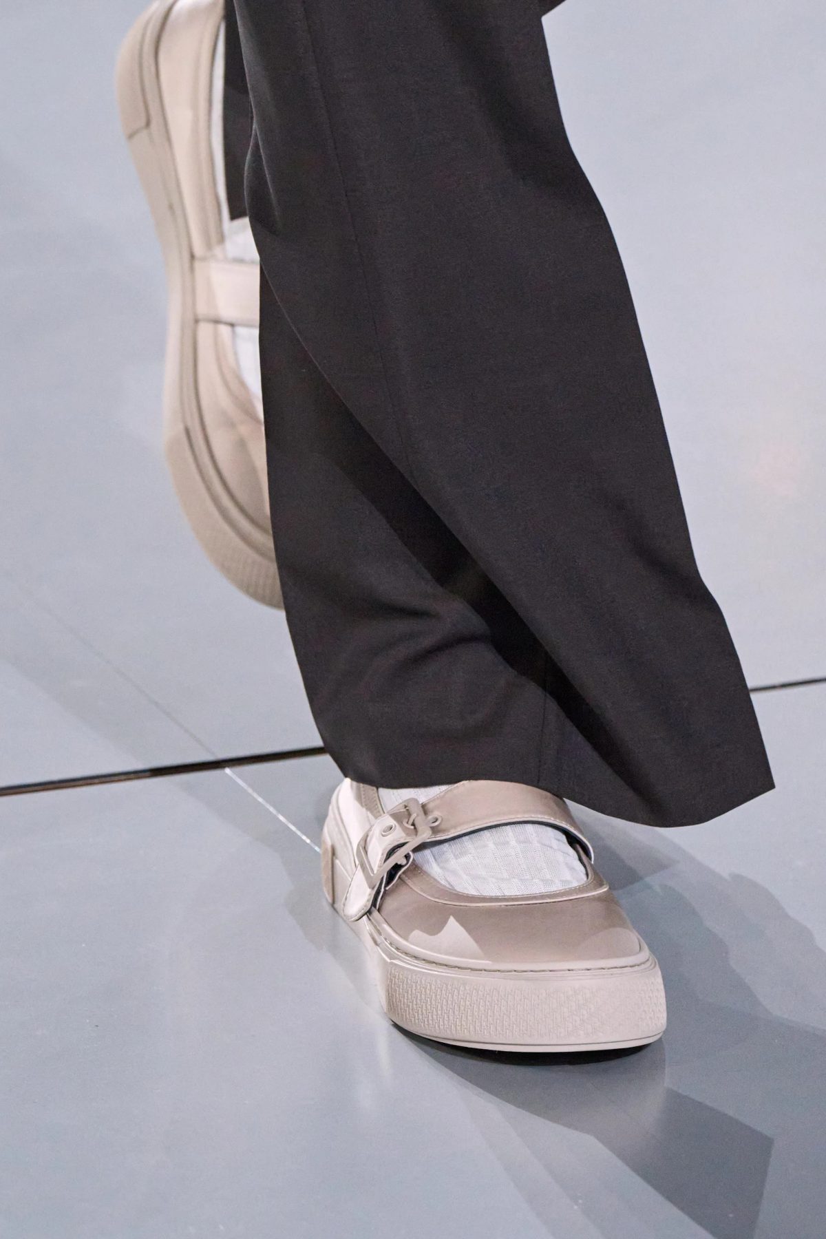 既然以芭蕾藝術為主題,怎能不提各款吸睛的芭蕾舞鞋?不論是短褲、長版西裝褲還是棉褲,都能襯上一對優雅的「芭蕾舞鞋」。飾有緞面絲帶,部分設計印有Dior signature格仔車線以及Oblique壓紋,相當精緻。