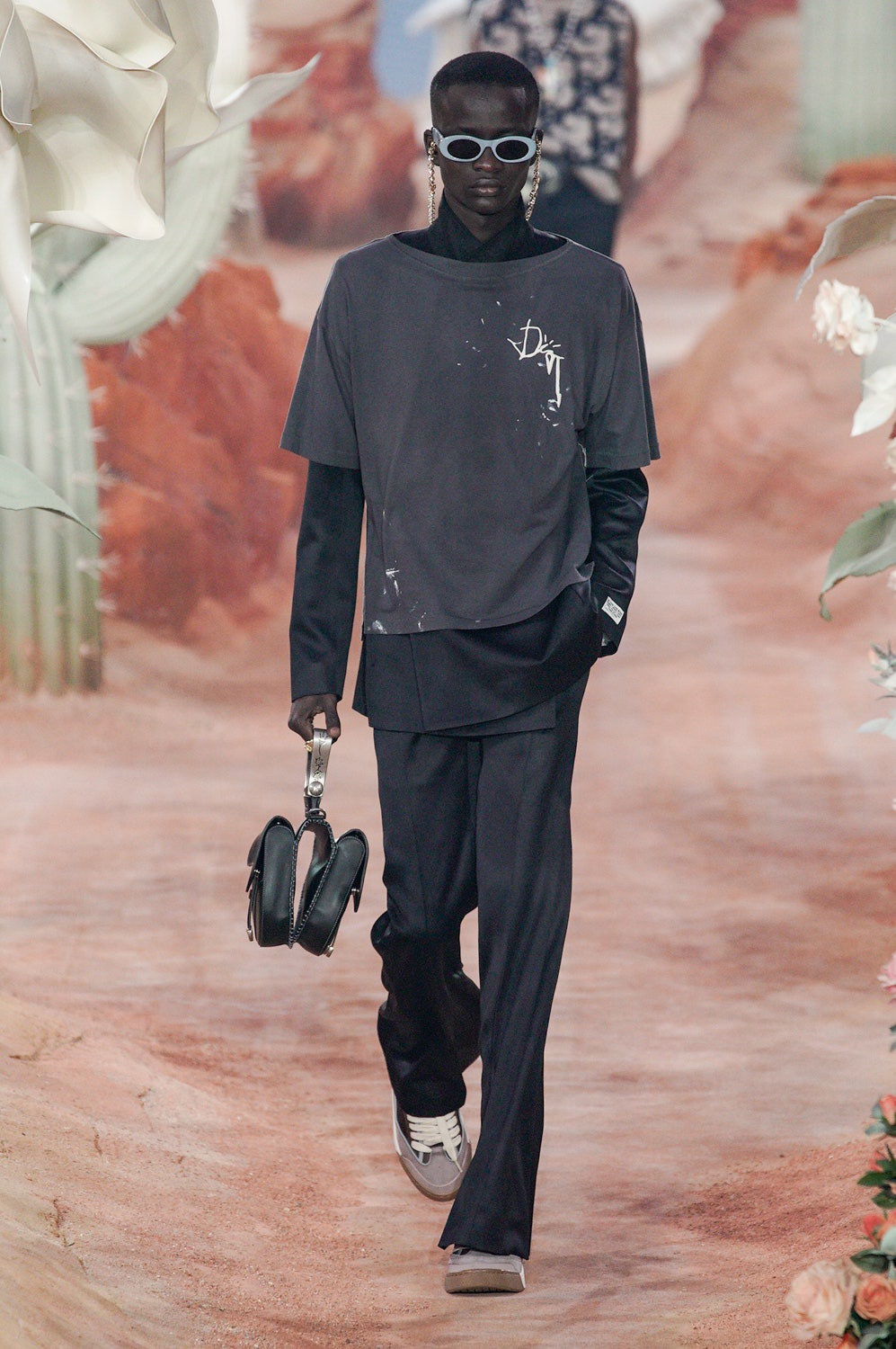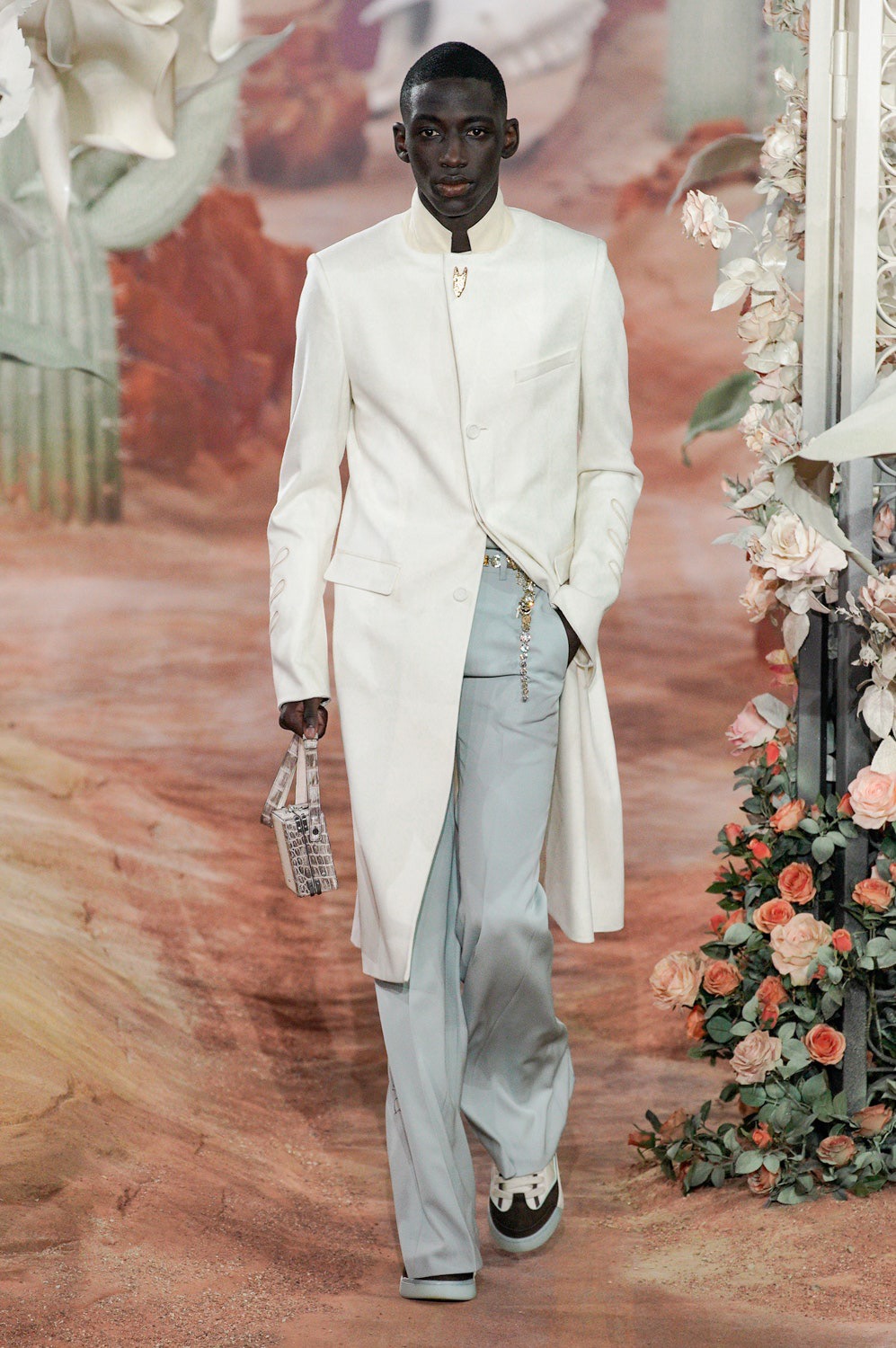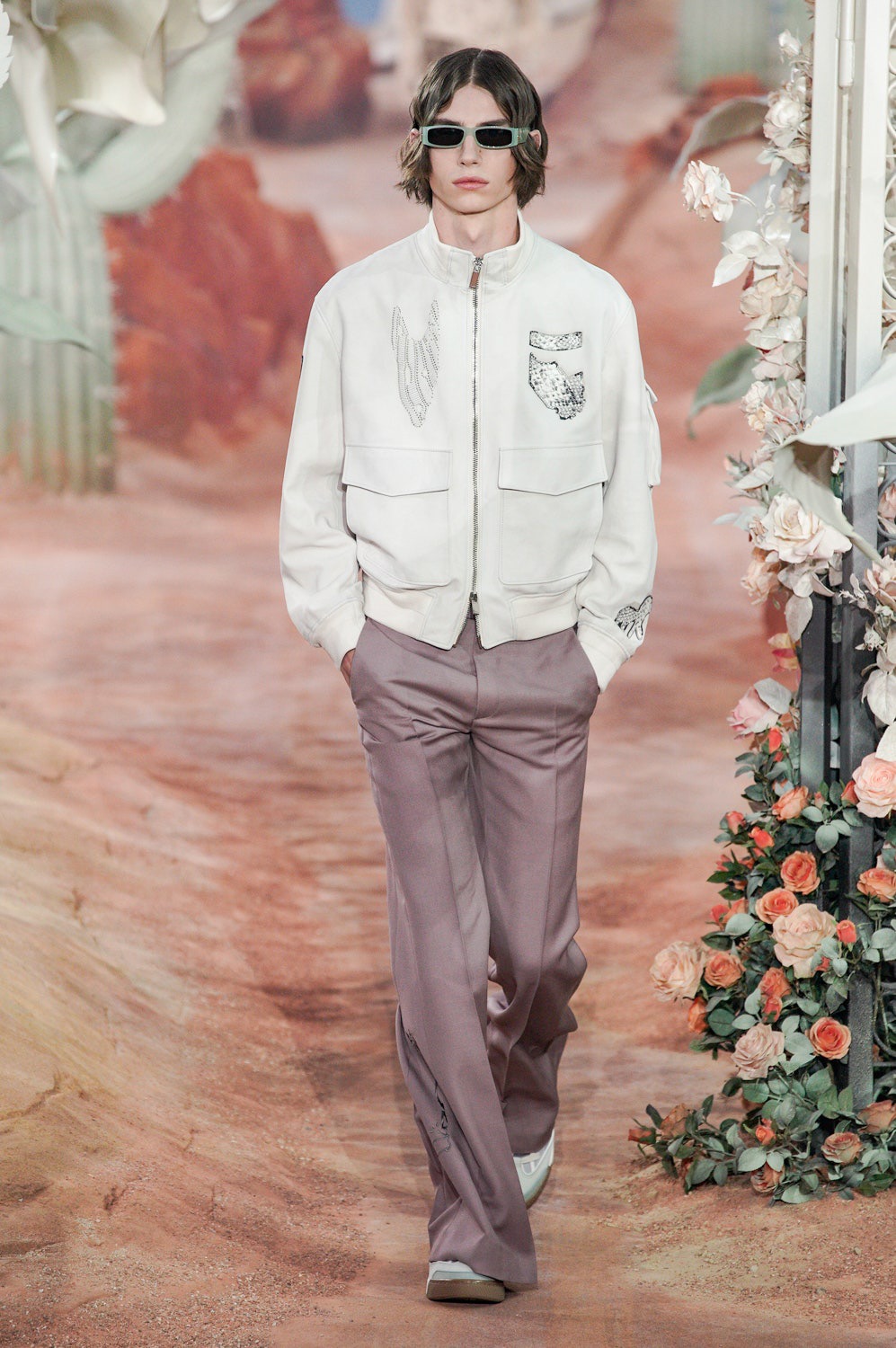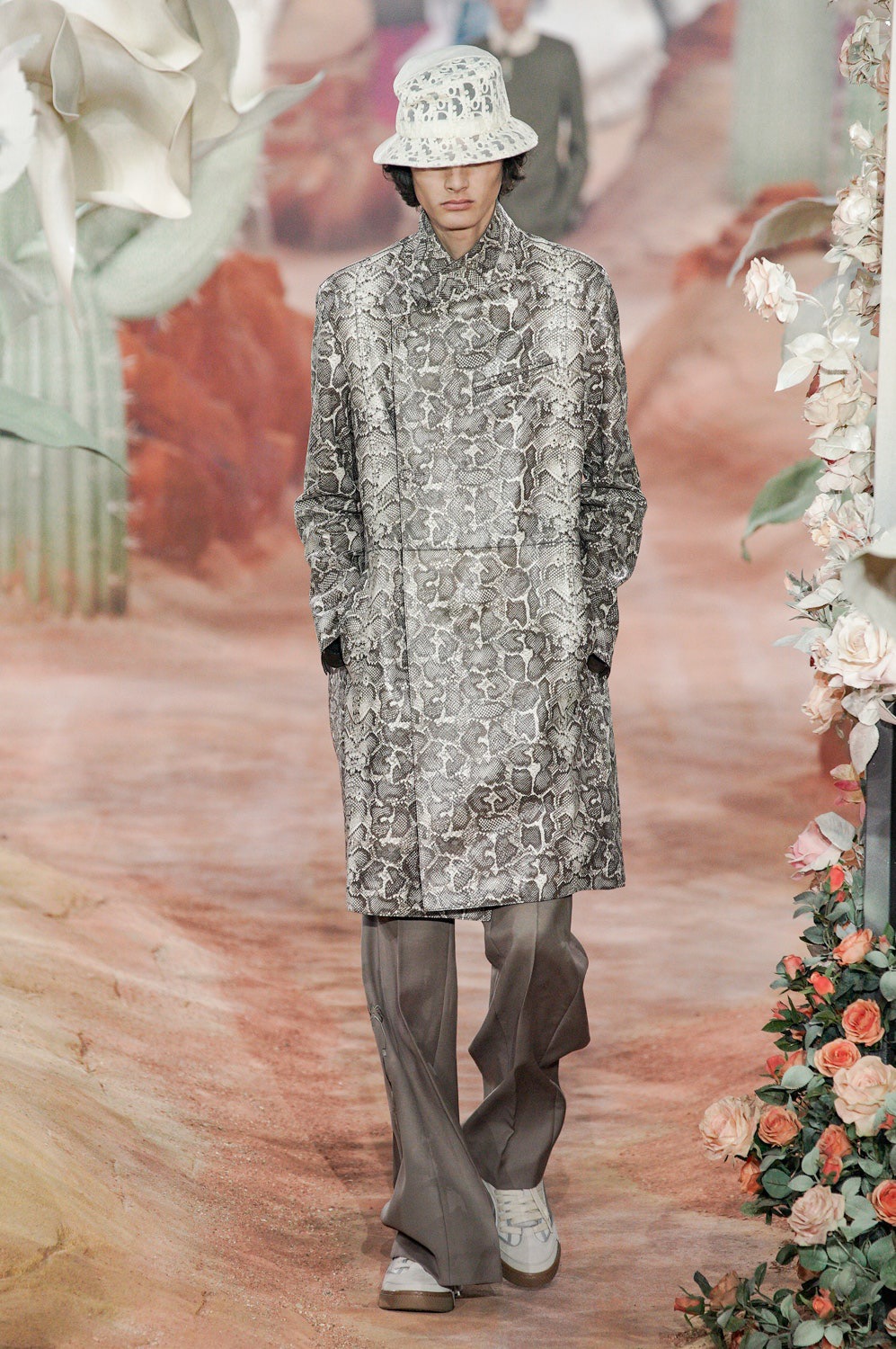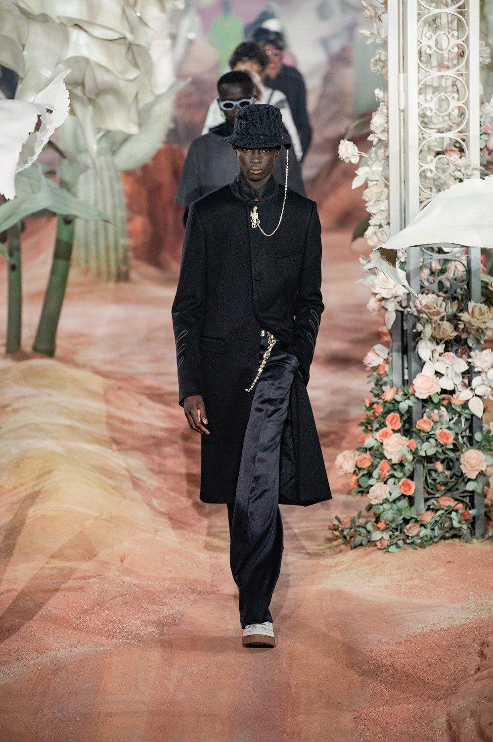 Kim Jones 以流行街頭與奢華傳統之間的碰撞,盡現品牌筆下精緻剪裁、1990年代的經典波鞋、還有鬼斧神工的 Stephen Jones 將漁夫帽和棒球帽二合為一。另外,Kim Jones 還首次與 Dior Joaillerie 藝術總監 Victoire De Castellane 合作打造一件 仙人掌頸鍊,綻放珍貴的寶石色彩, 可見 Dior Men 銳意在男裝高訂發展的野心。