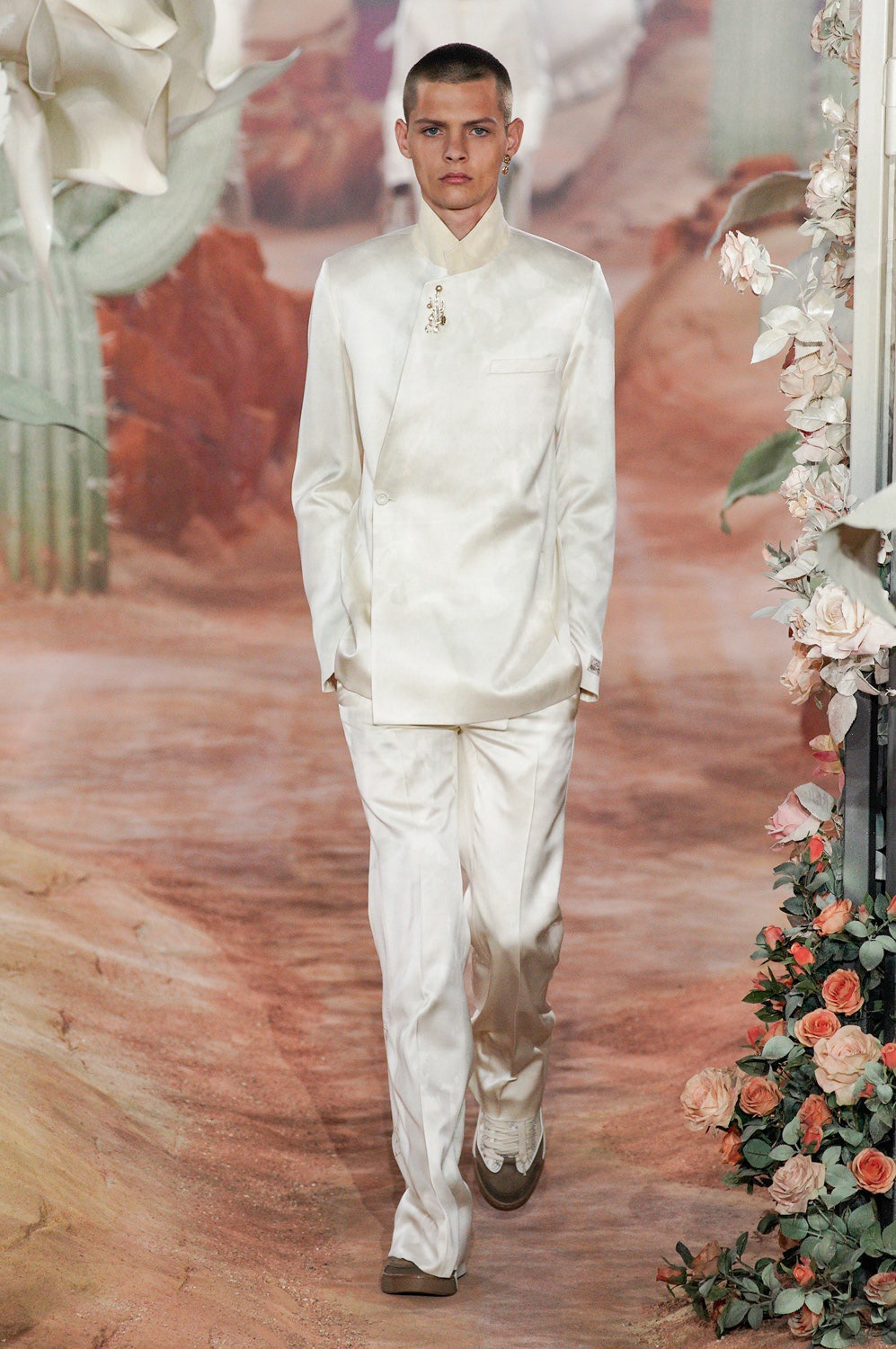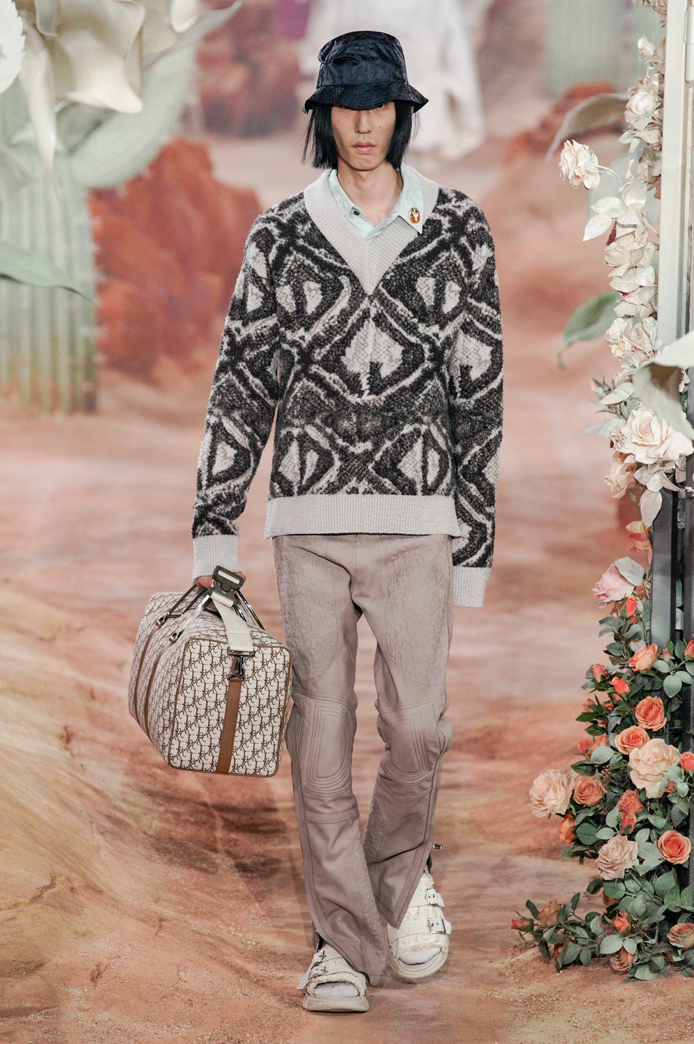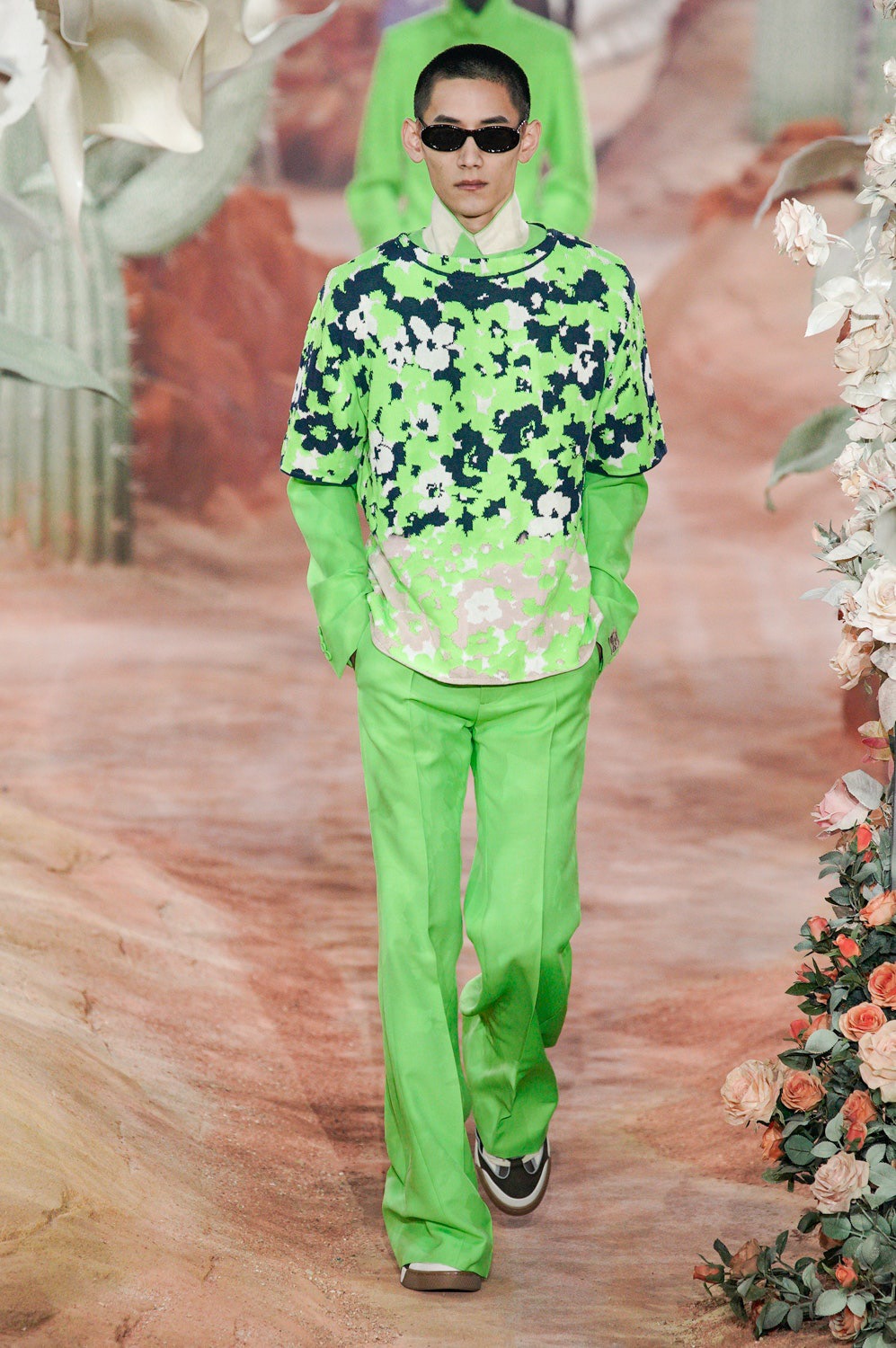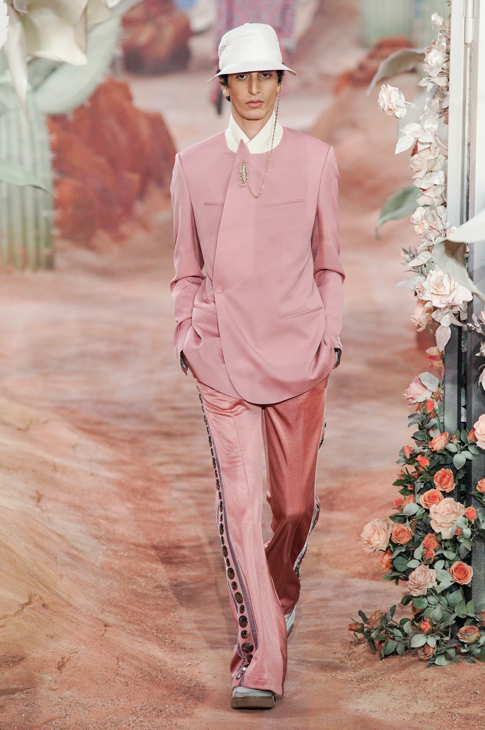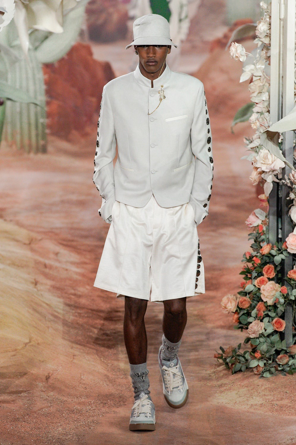 Kim Jones 以流行街頭與奢華傳統之間的碰撞,盡現品牌筆下精緻剪裁、1990年代的經典波鞋、還有鬼斧神工的 Stephen Jones 將漁夫帽和棒球帽二合為一。另外,Kim Jones 還首次與 Dior Joaillerie 藝術總監 Victoire De Castellane 合作打造一件 仙人掌頸鍊,綻放珍貴的寶石色彩, 可見 Dior Men 銳意在男裝高訂發展的野心。