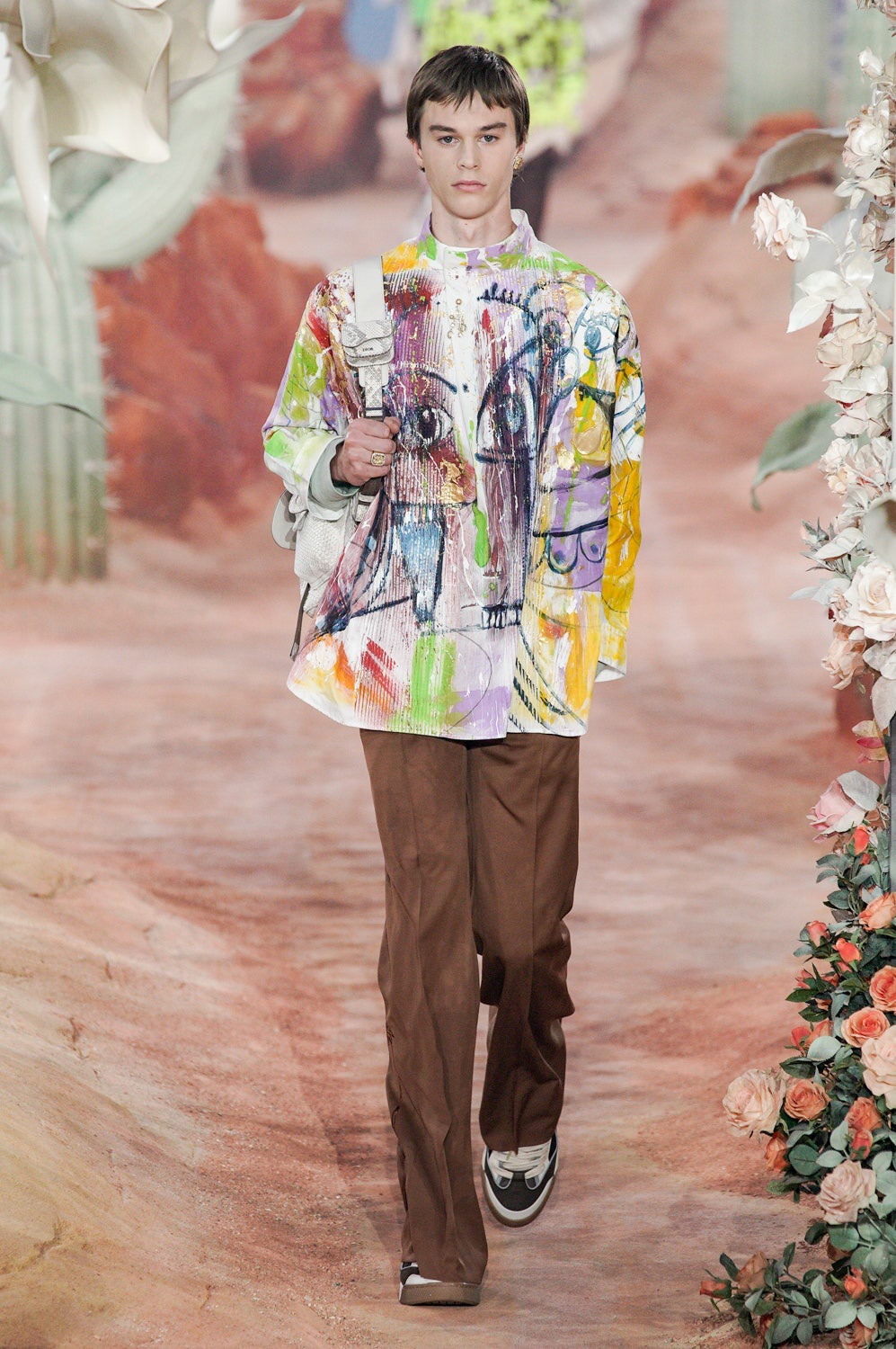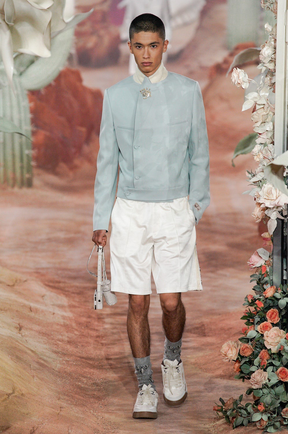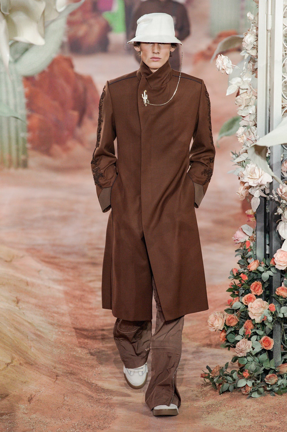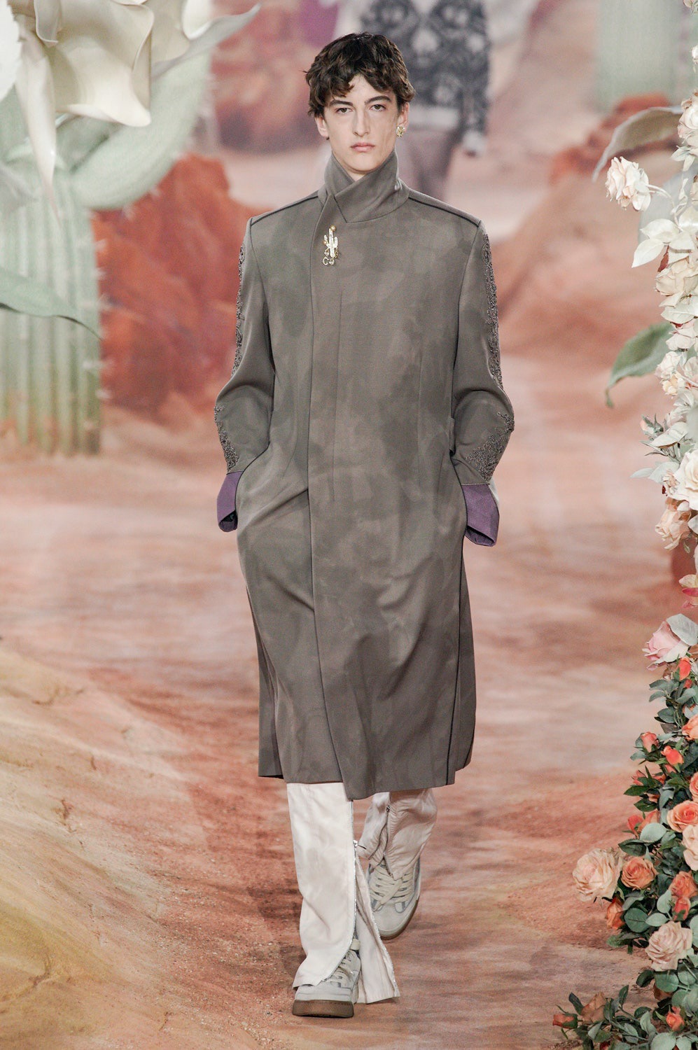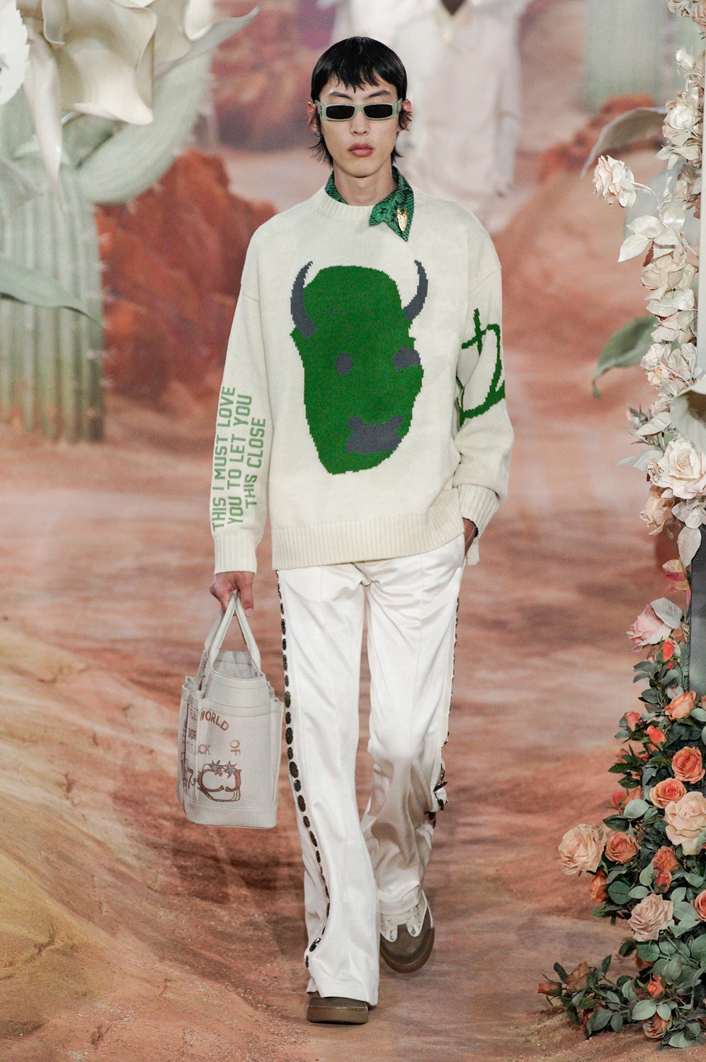 Kim Jones 以流行街頭與奢華傳統之間的碰撞,盡現品牌筆下精緻剪裁、1990年代的經典波鞋、還有鬼斧神工的 Stephen Jones 將漁夫帽和棒球帽二合為一。另外,Kim Jones 還首次與 Dior Joaillerie 藝術總監 Victoire De Castellane 合作打造一件 仙人掌頸鍊,綻放珍貴的寶石色彩, 可見 Dior Men 銳意在男裝高訂發展的野心。