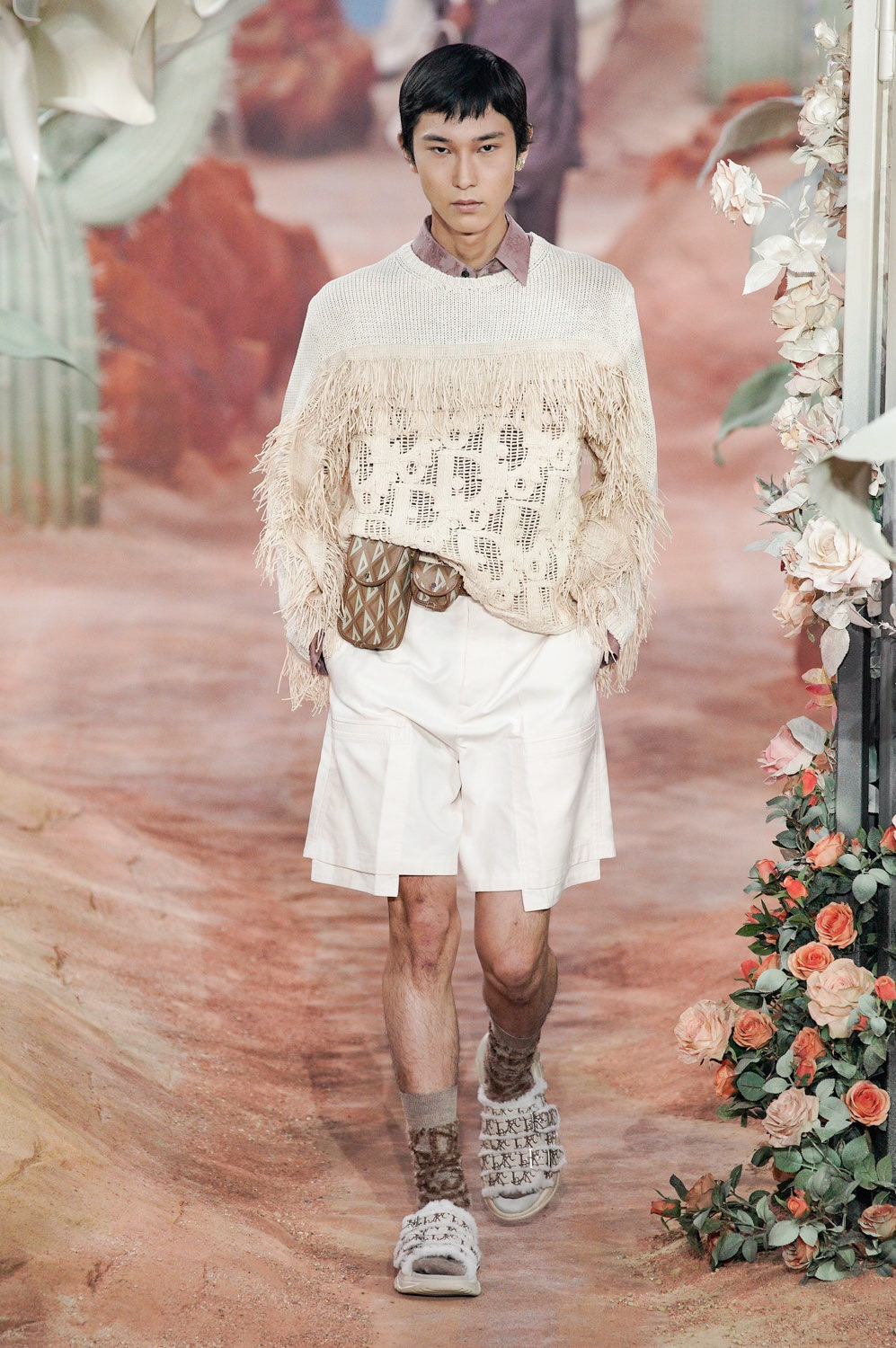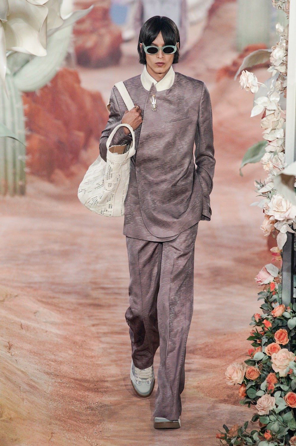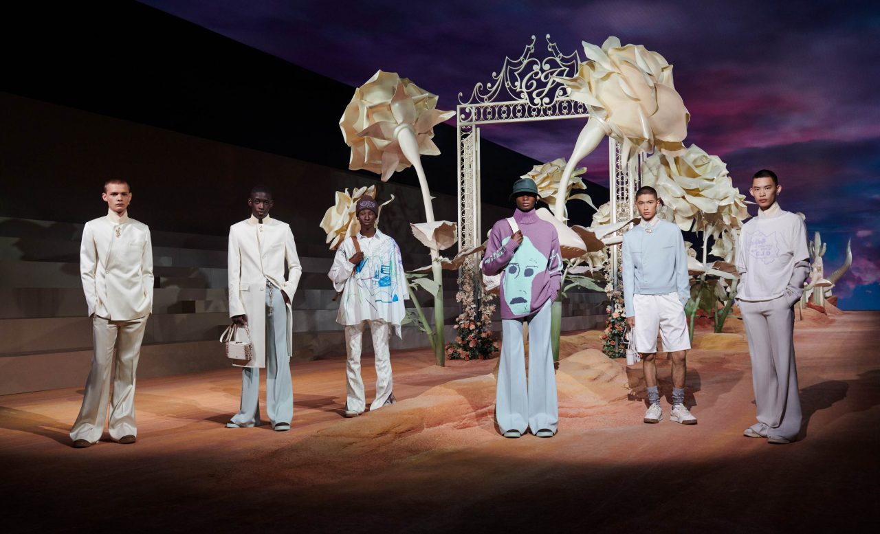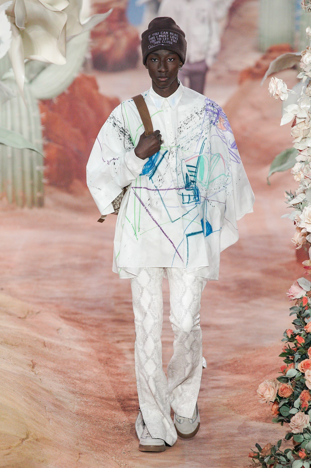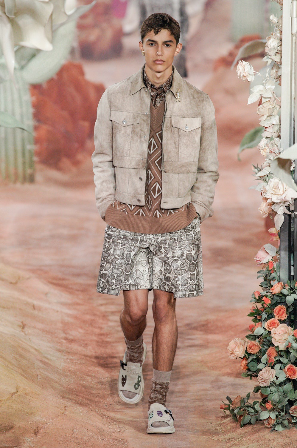 Kim Jones 以流行街頭與奢華傳統之間的碰撞,盡現品牌筆下精緻剪裁、1990年代的經典波鞋、還有鬼斧神工的 Stephen Jones 將漁夫帽和棒球帽二合為一。另外,Kim Jones 還首次與 Dior Joaillerie 藝術總監 Victoire De Castellane 合作打造一件 仙人掌頸鍊,綻放珍貴的寶石色彩, 可見 Dior Men 銳意在男裝高訂發展的野心。