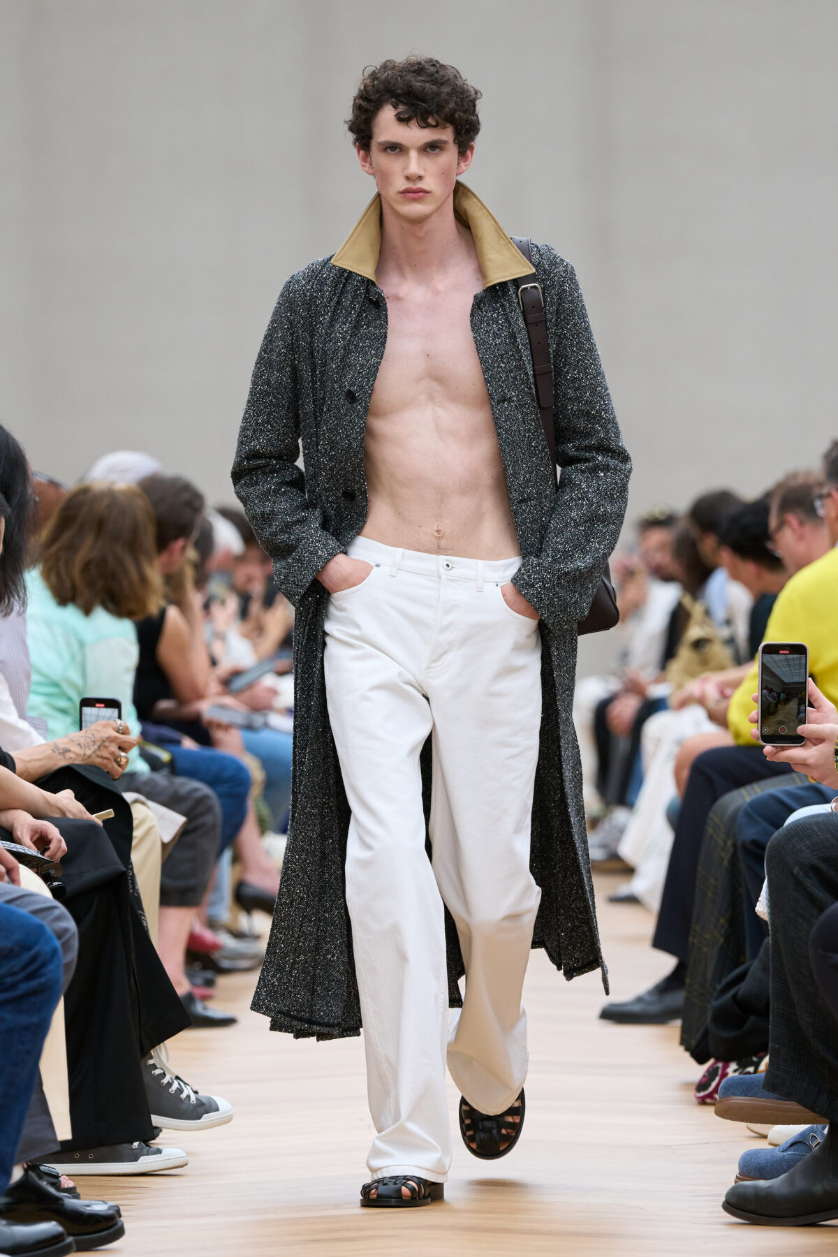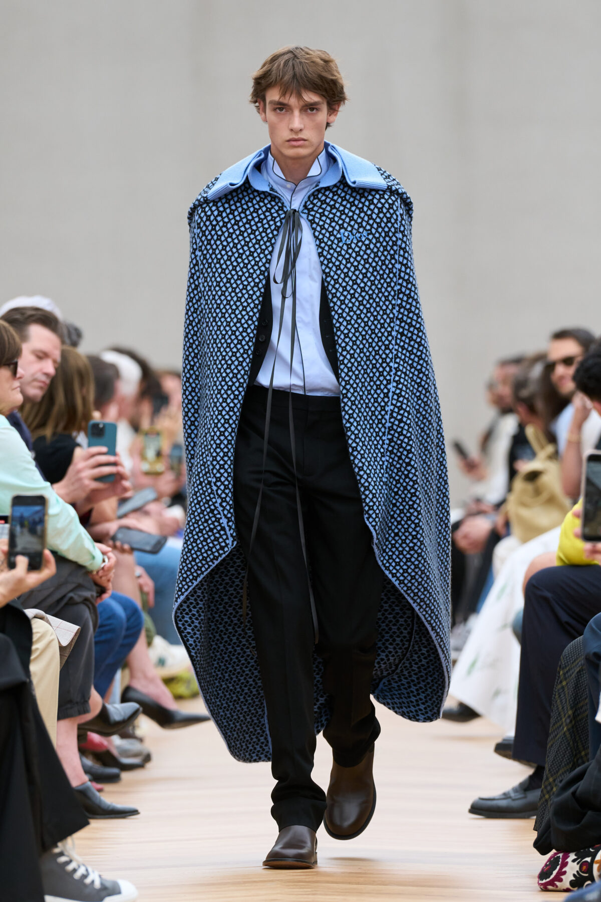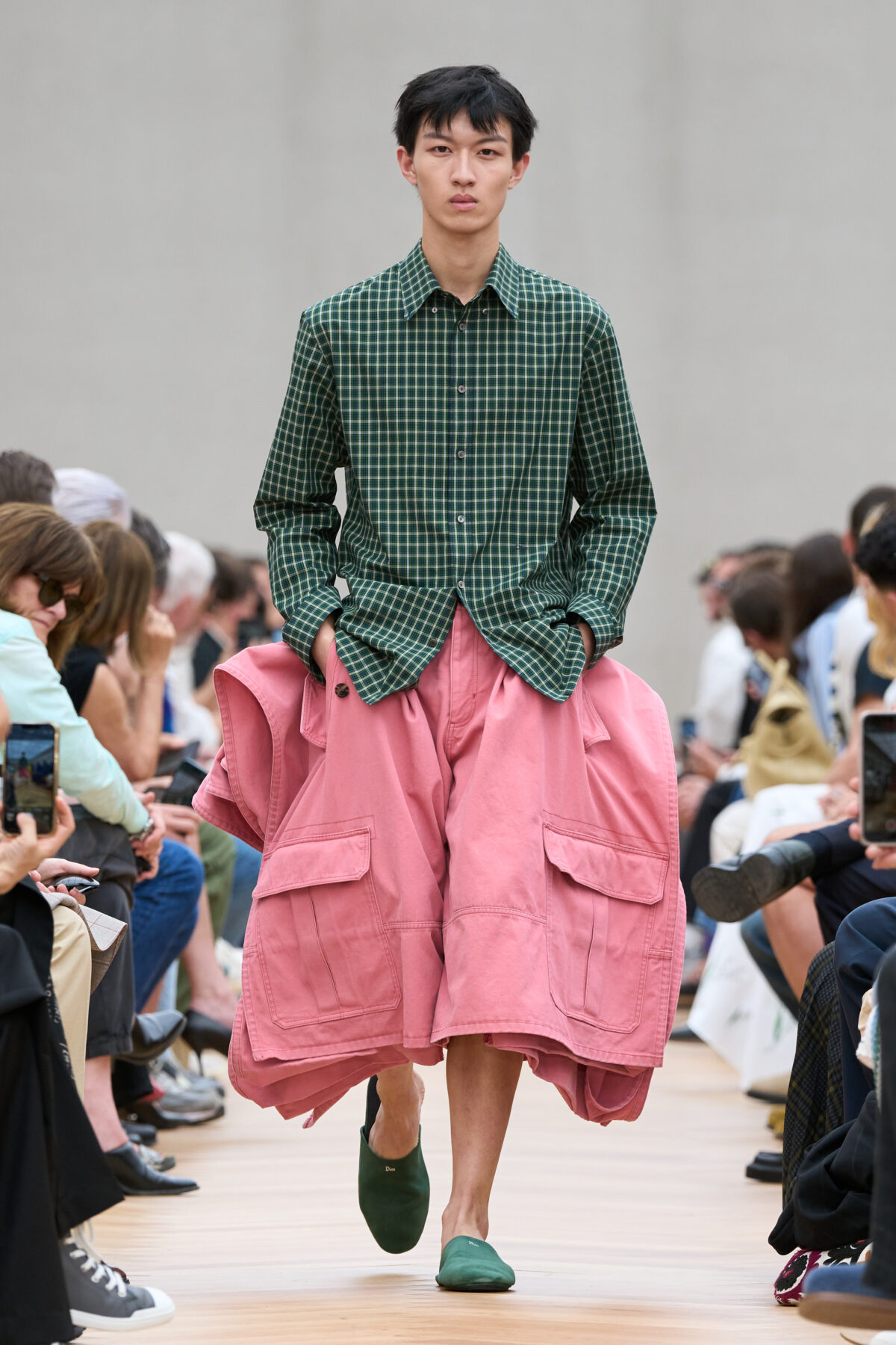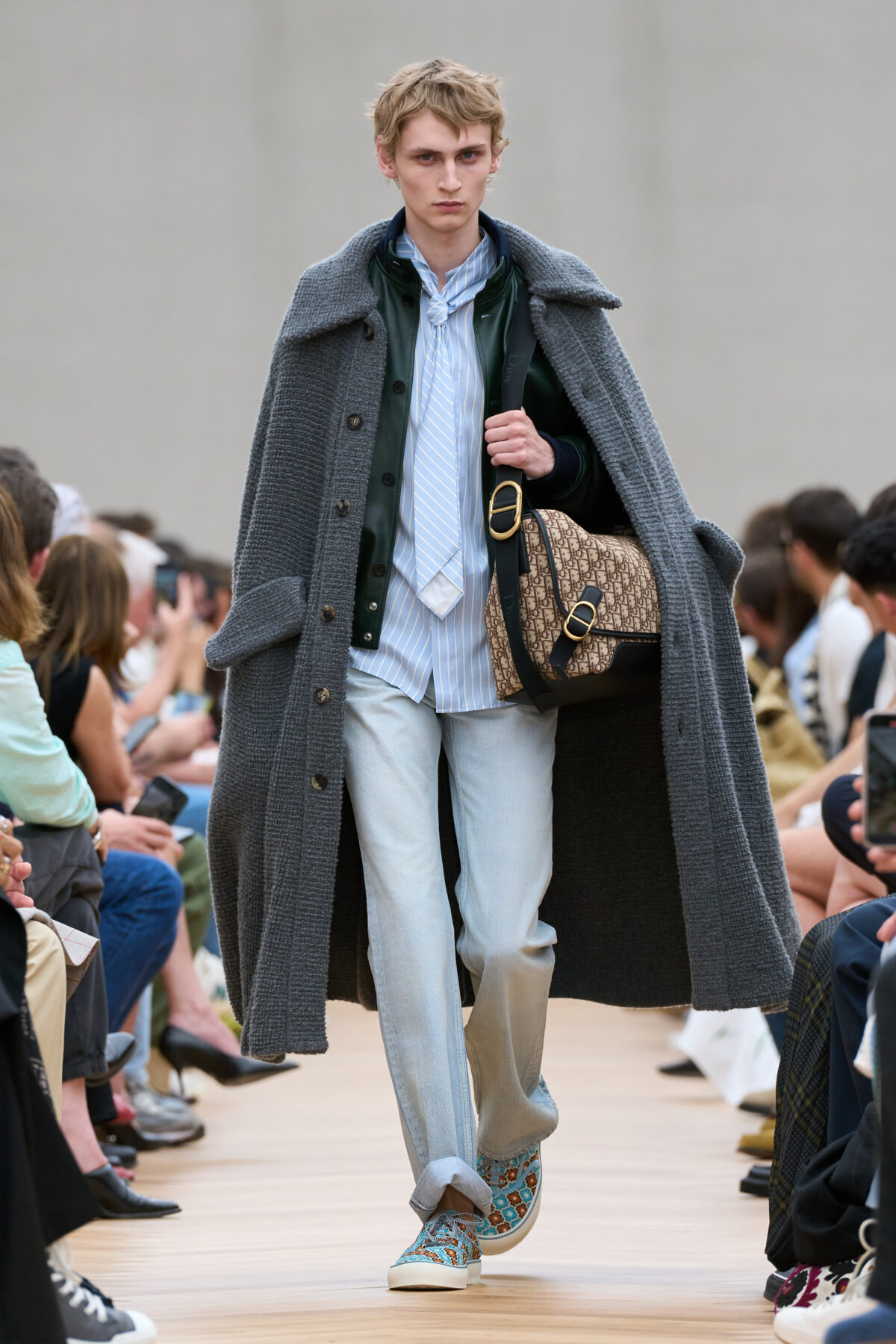 然而,Jonathan也希望將這一切落實於現實中:他考慮過男孩們在箱子裏發現這些作品,隨意穿上它們的情景。這種想法與時裝騷的節奏相得益彰,當中包括了大量法式學院風格的單品,如色彩斑斕的針織毛衣和普通的夏季牛仔褲。