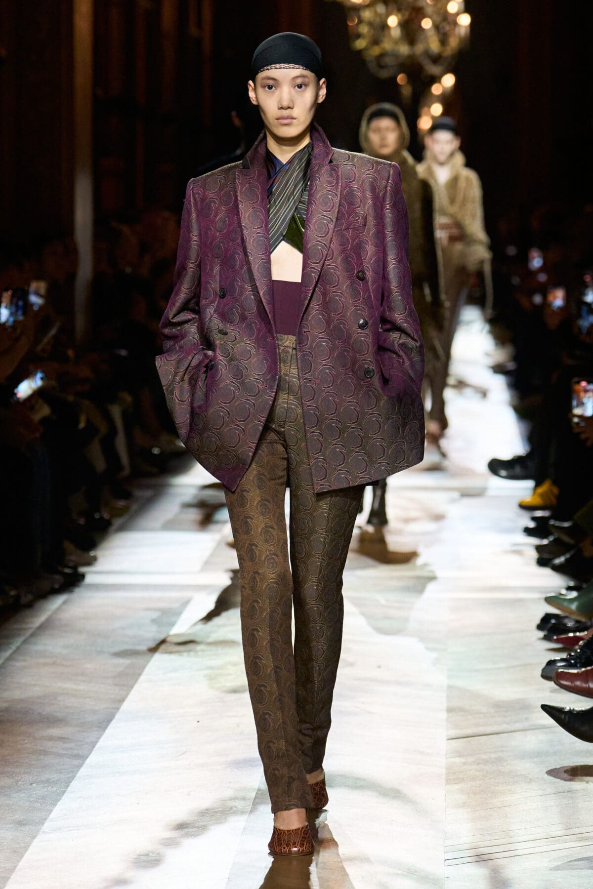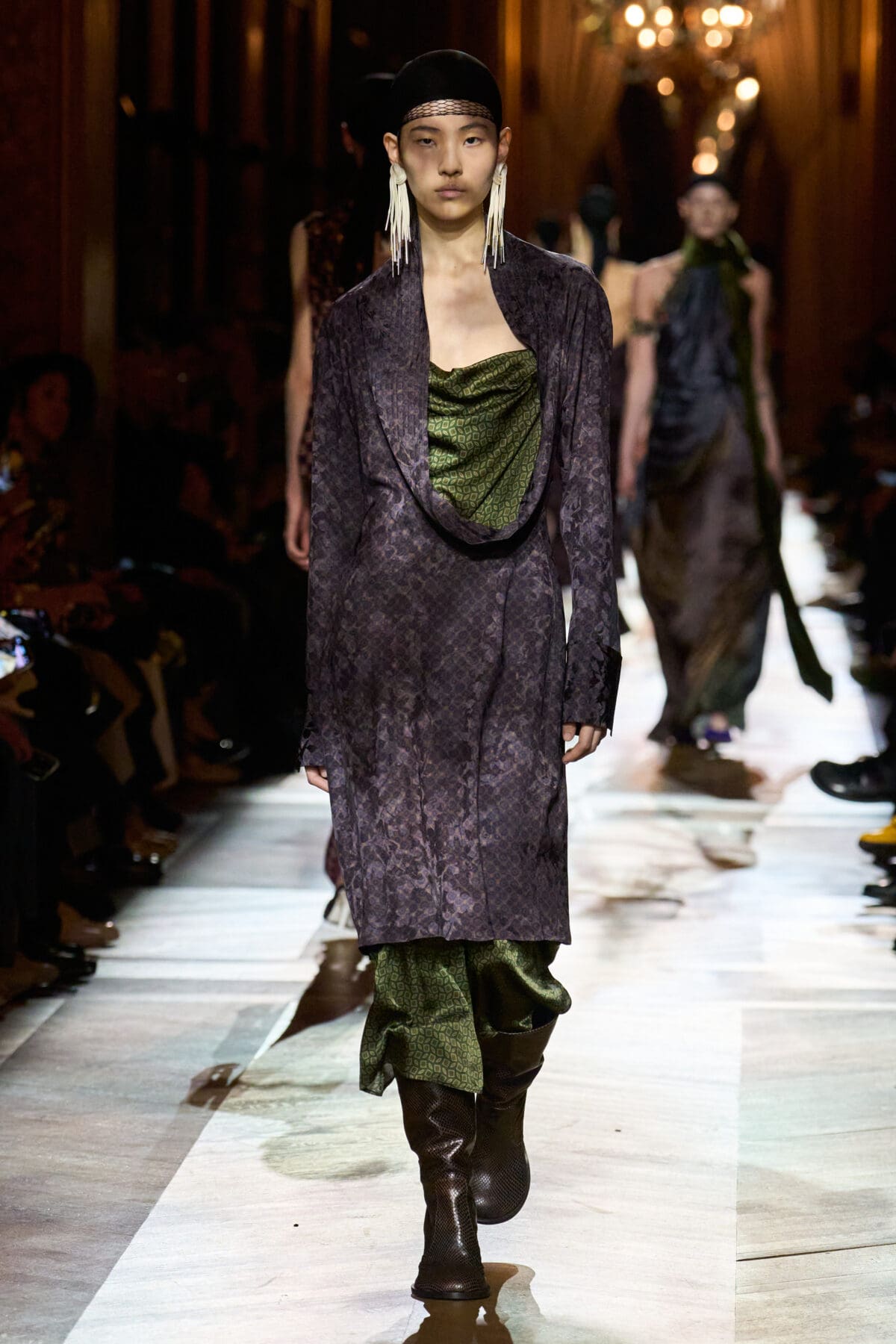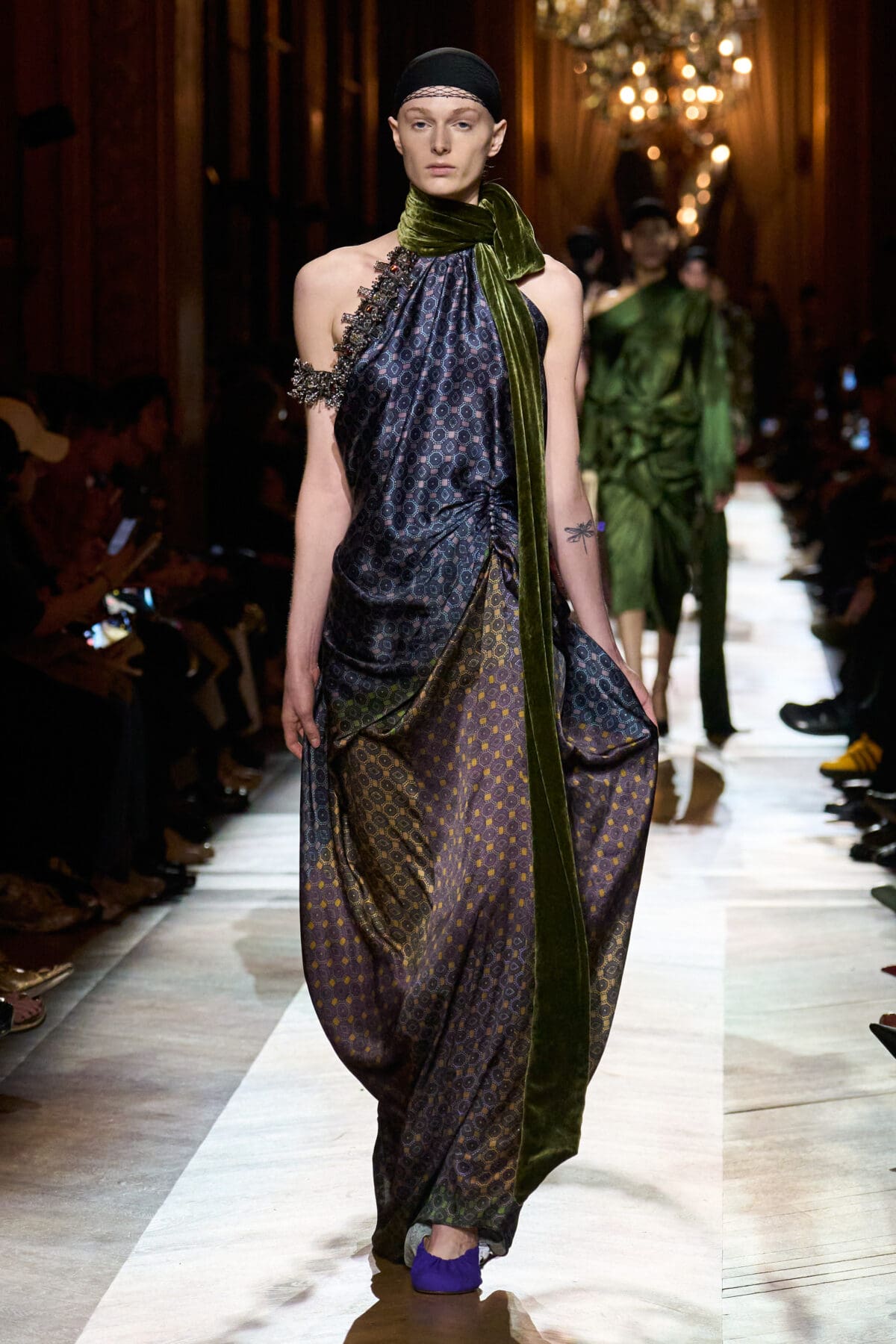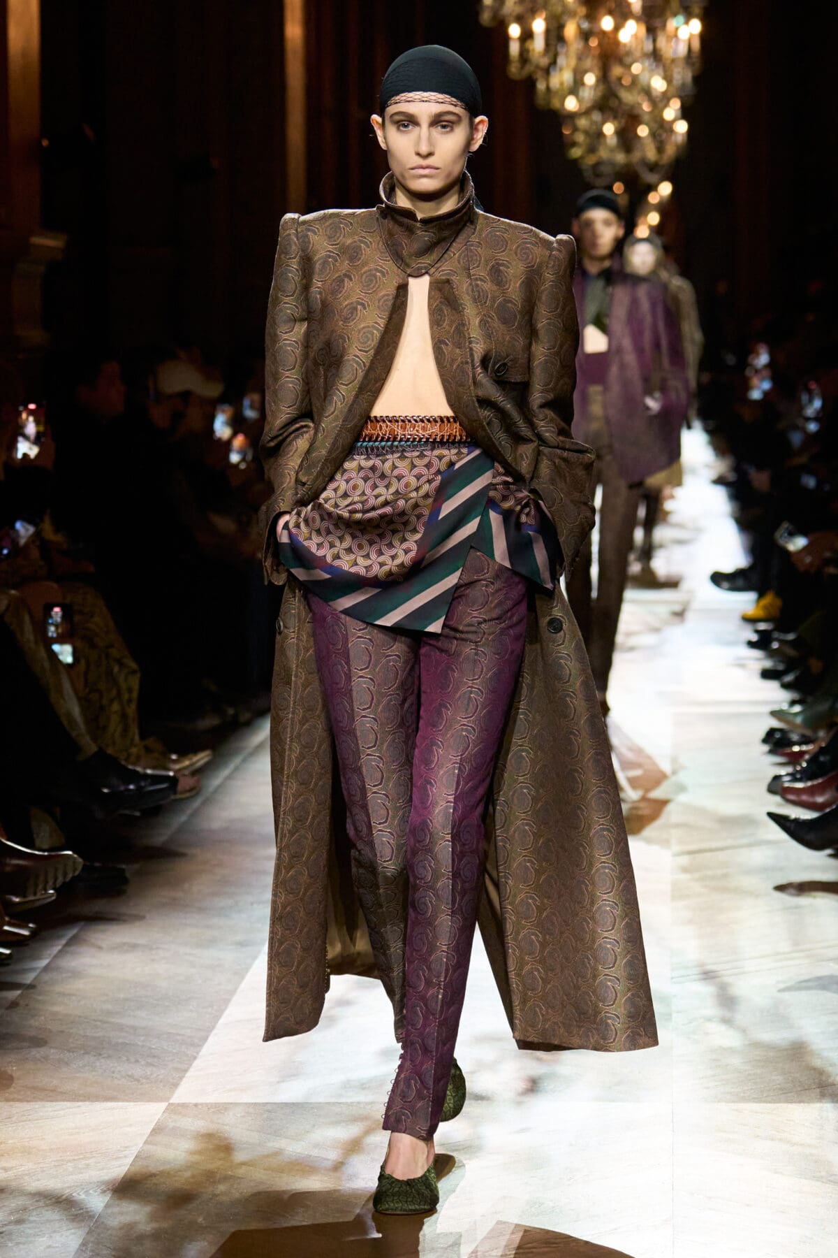 PARIS, FRANCE - MARCH 05: A model walks the runway during the Dries Van Noten Ready to Wear Fall/Winter 2025-2026 fashion show as part of the Paris Fashion Week on March 5, 2025 in Paris, France. (Photo by Victor VIRGILE/Gamma-Rapho via Getty Images)