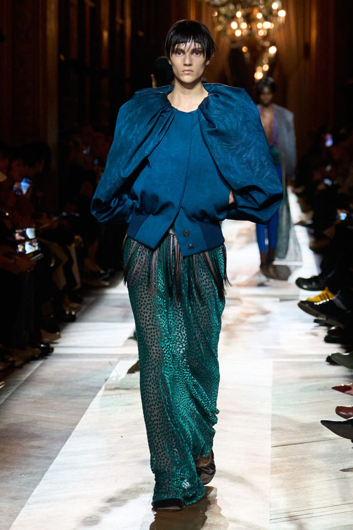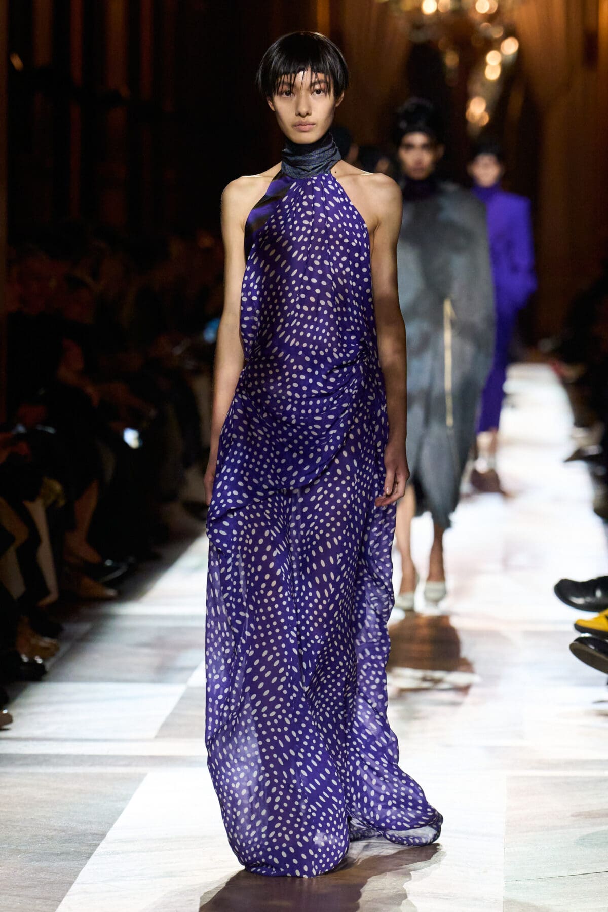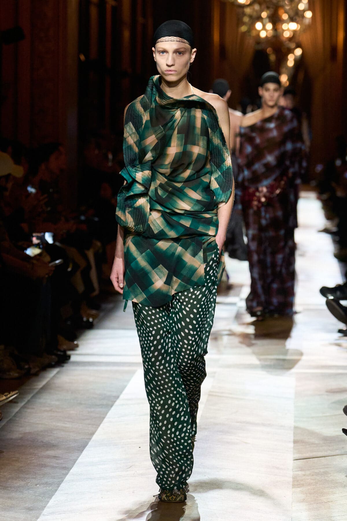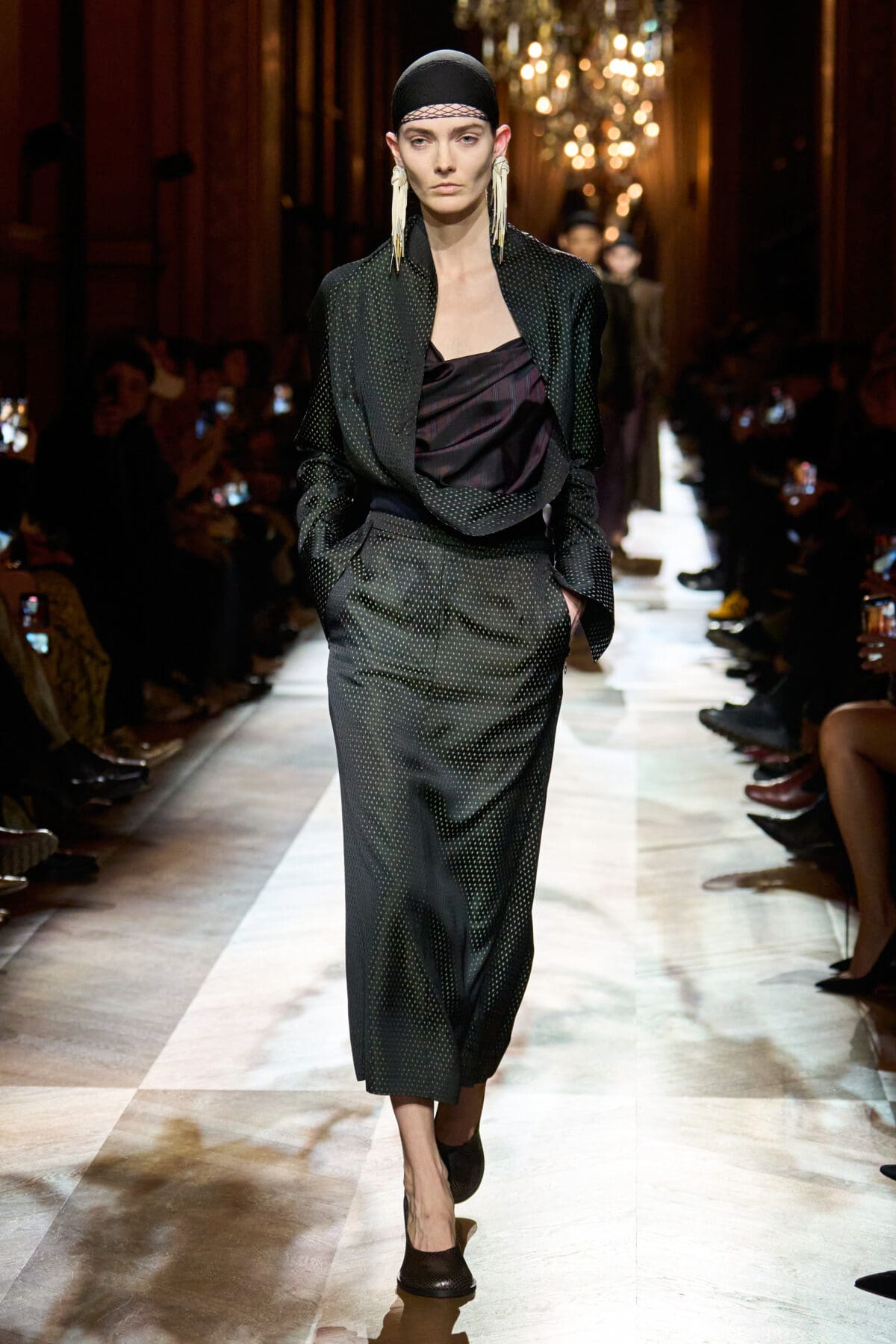 PARIS, FRANCE - MARCH 05: A model walks the runway during the Dries Van Noten Ready to Wear Fall/Winter 2025-2026 fashion show as part of the Paris Fashion Week on March 5, 2025 in Paris, France. (Photo by Victor VIRGILE/Gamma-Rapho via Getty Images)