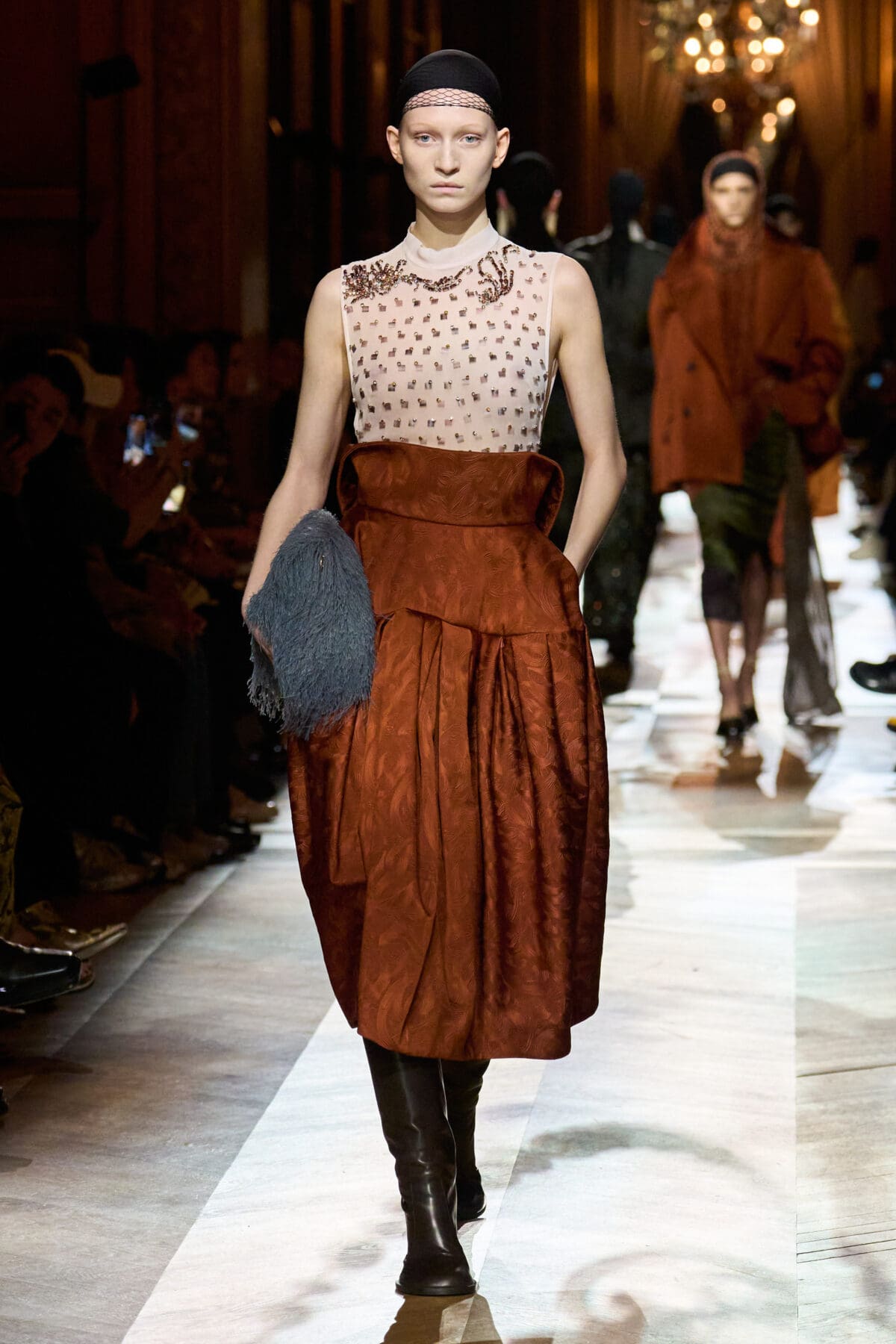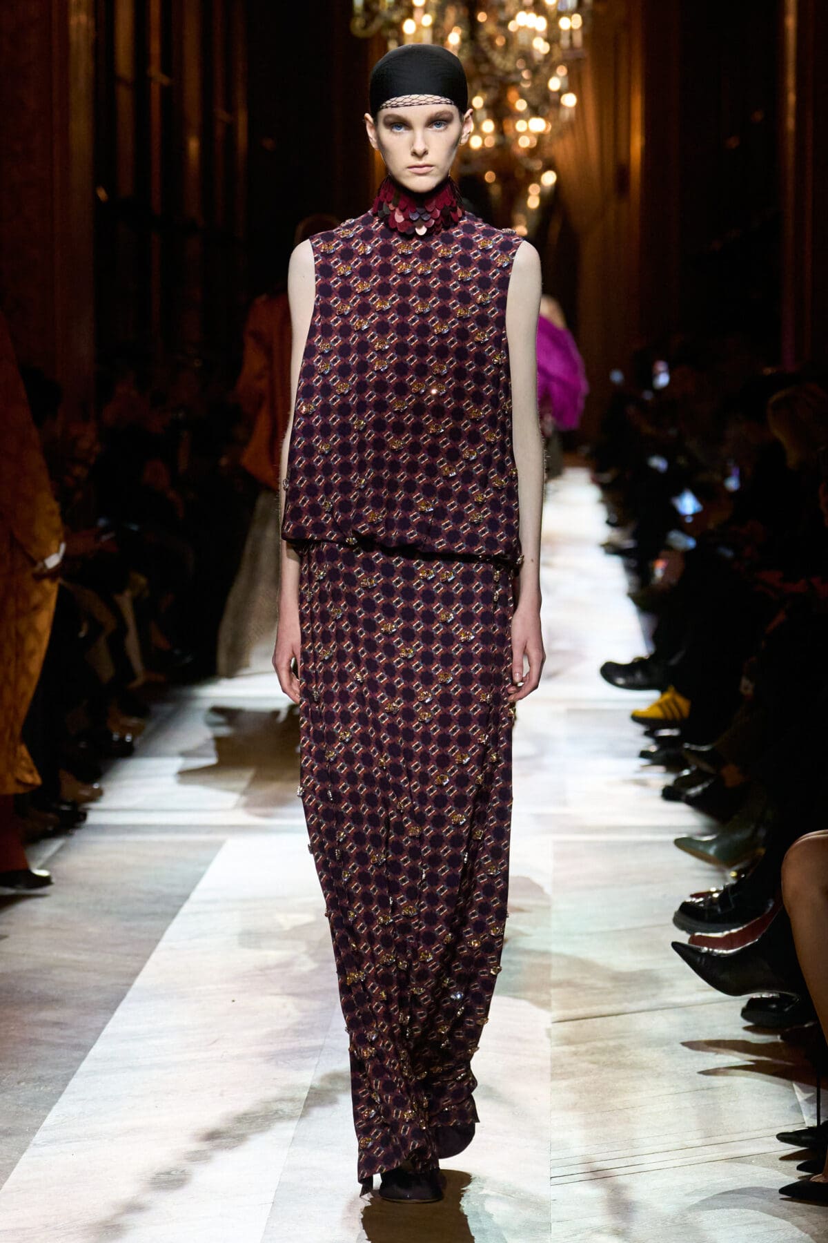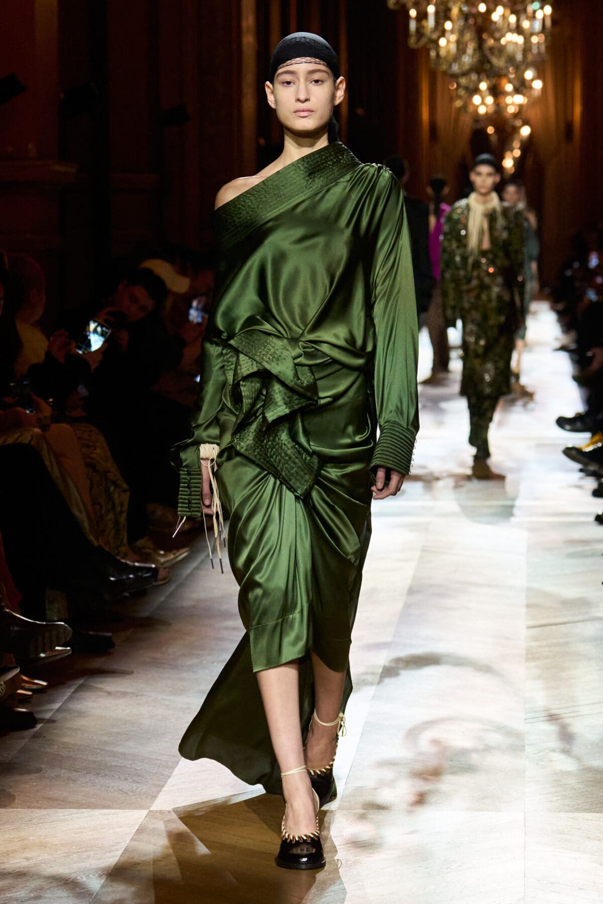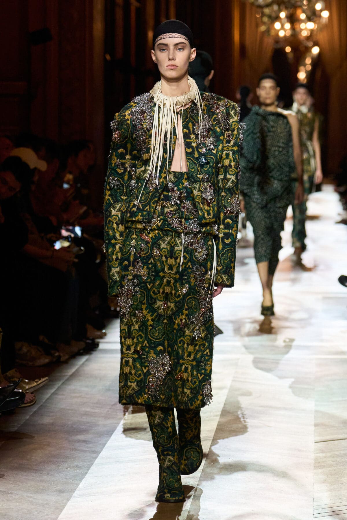 PARIS, FRANCE - MARCH 05: A model walks the runway during the Dries Van Noten Ready to Wear Fall/Winter 2025-2026 fashion show as part of the Paris Fashion Week on March 5, 2025 in Paris, France. (Photo by Victor VIRGILE/Gamma-Rapho via Getty Images)