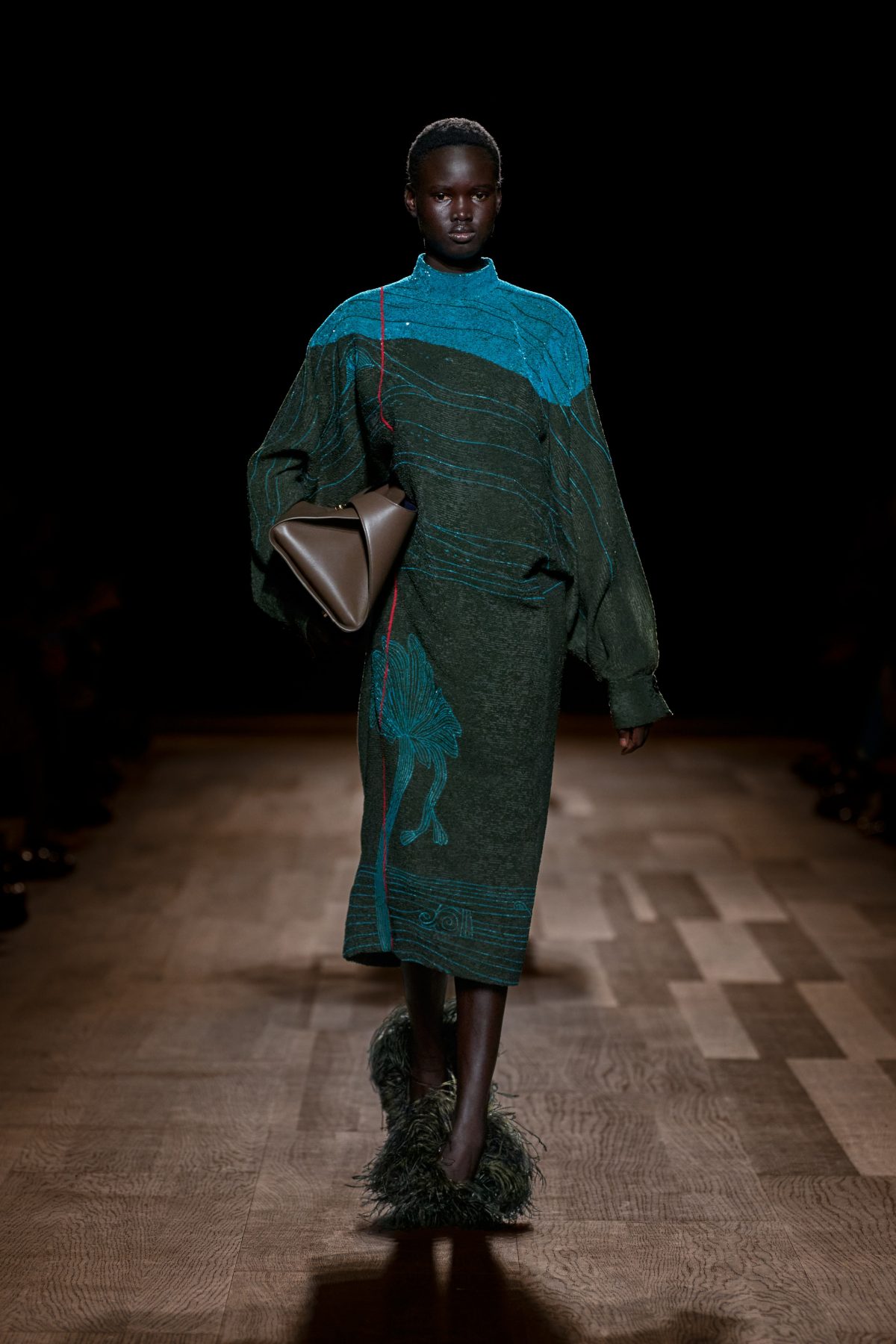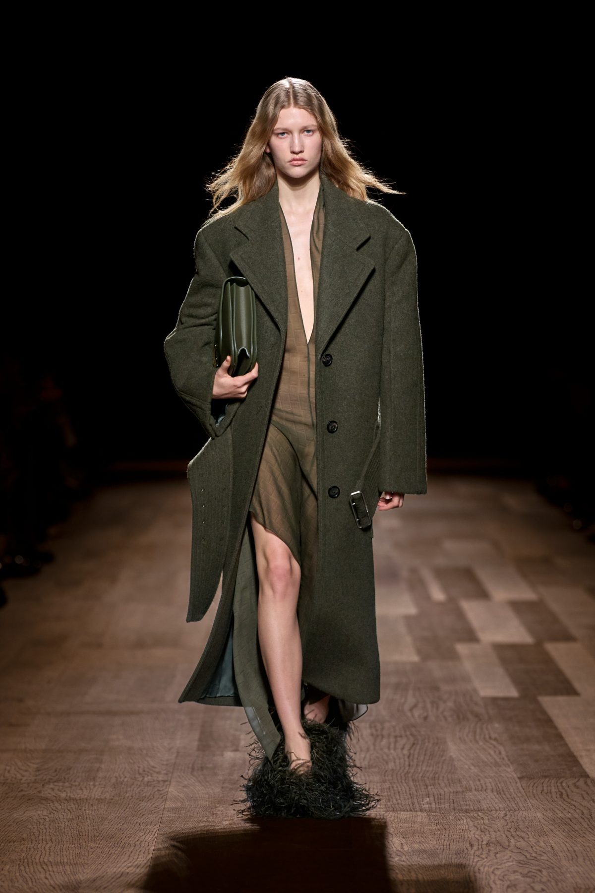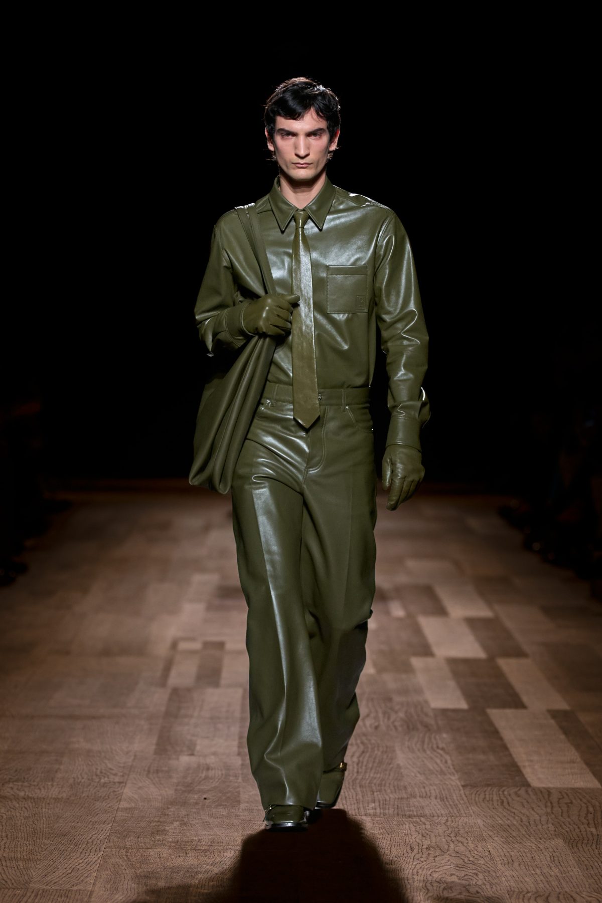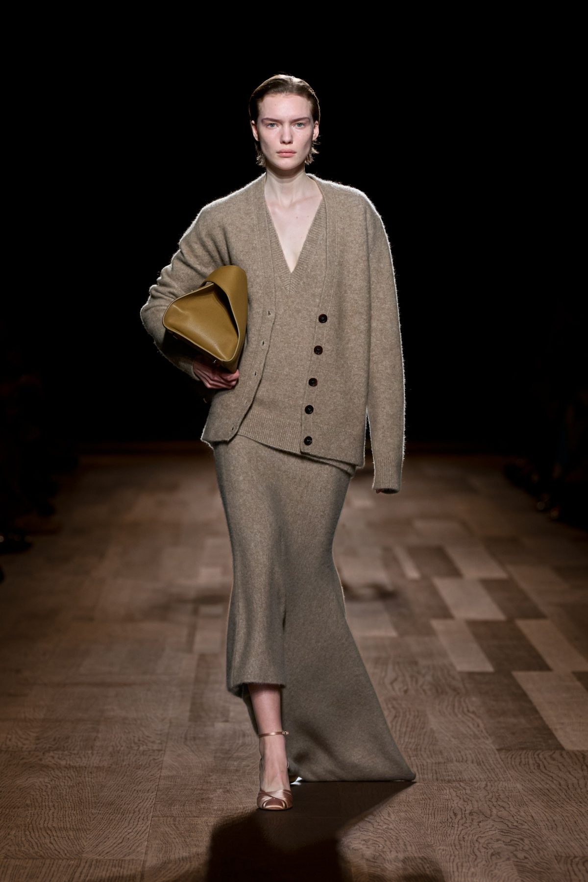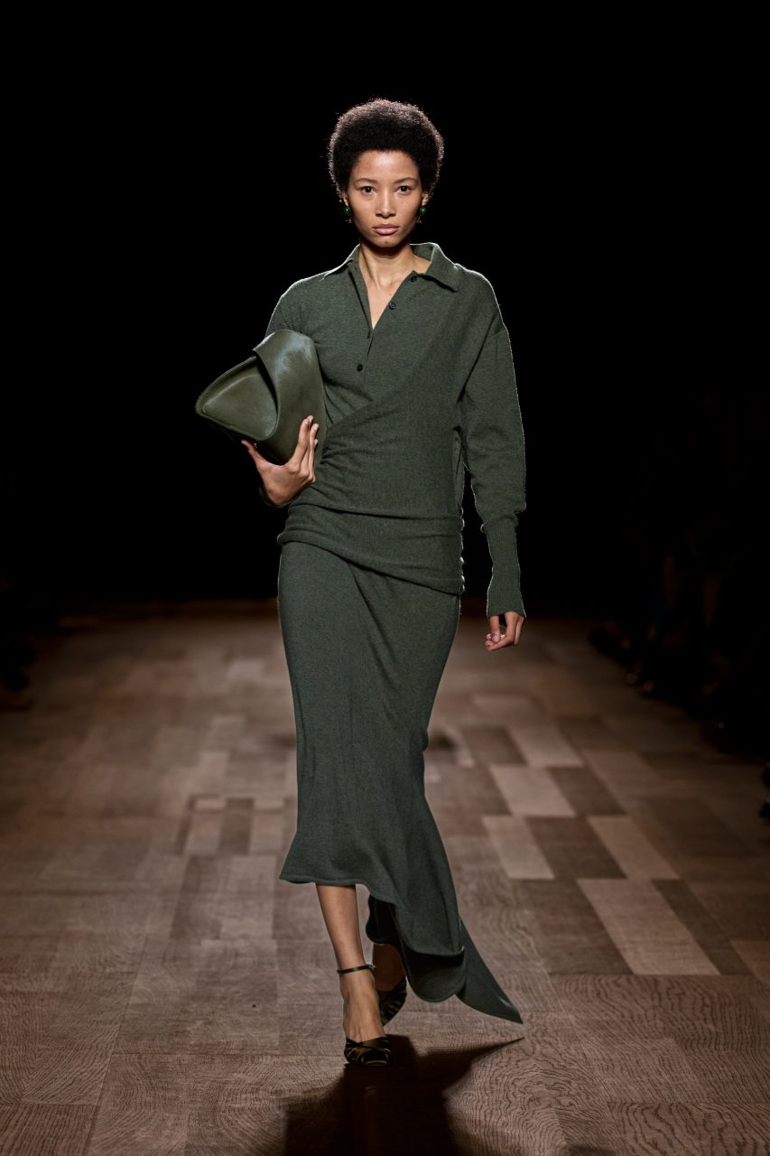 就整體趨勢而言,單色系趨勢在這裡依然能夠感受到餘熱,不論是鮮豔的亮紅和莓紅,還是柔和的橄欖綠和山楂紅,都佔據主場。整個系列猶如流水,絲滑細緻,乳膠皮質、羊毛大衣增添奢華氣質,但又不會產生遙遠的距離感。