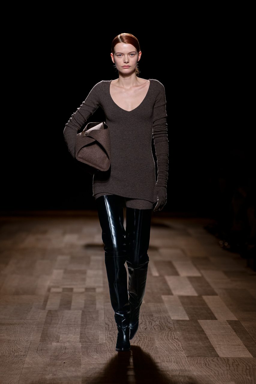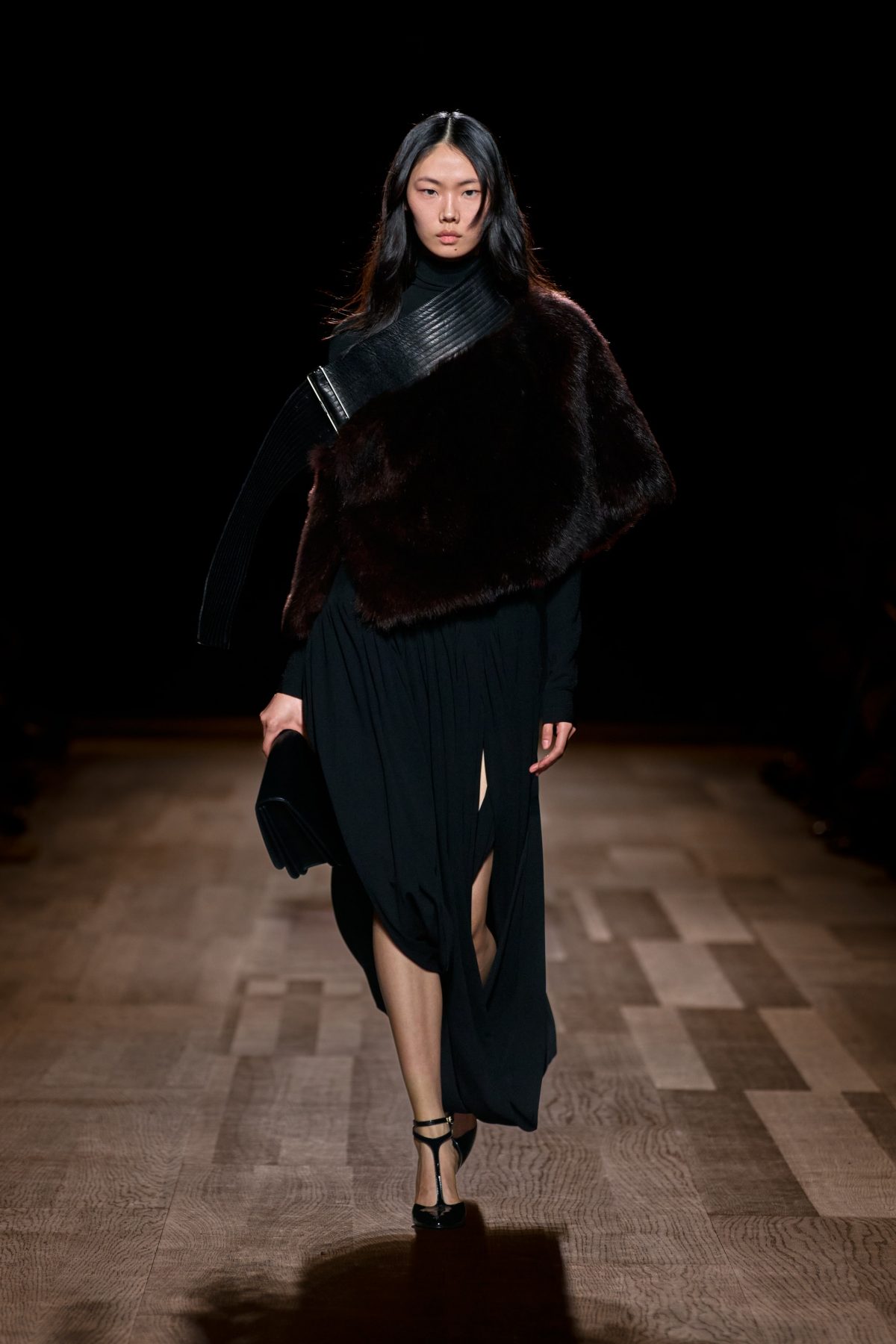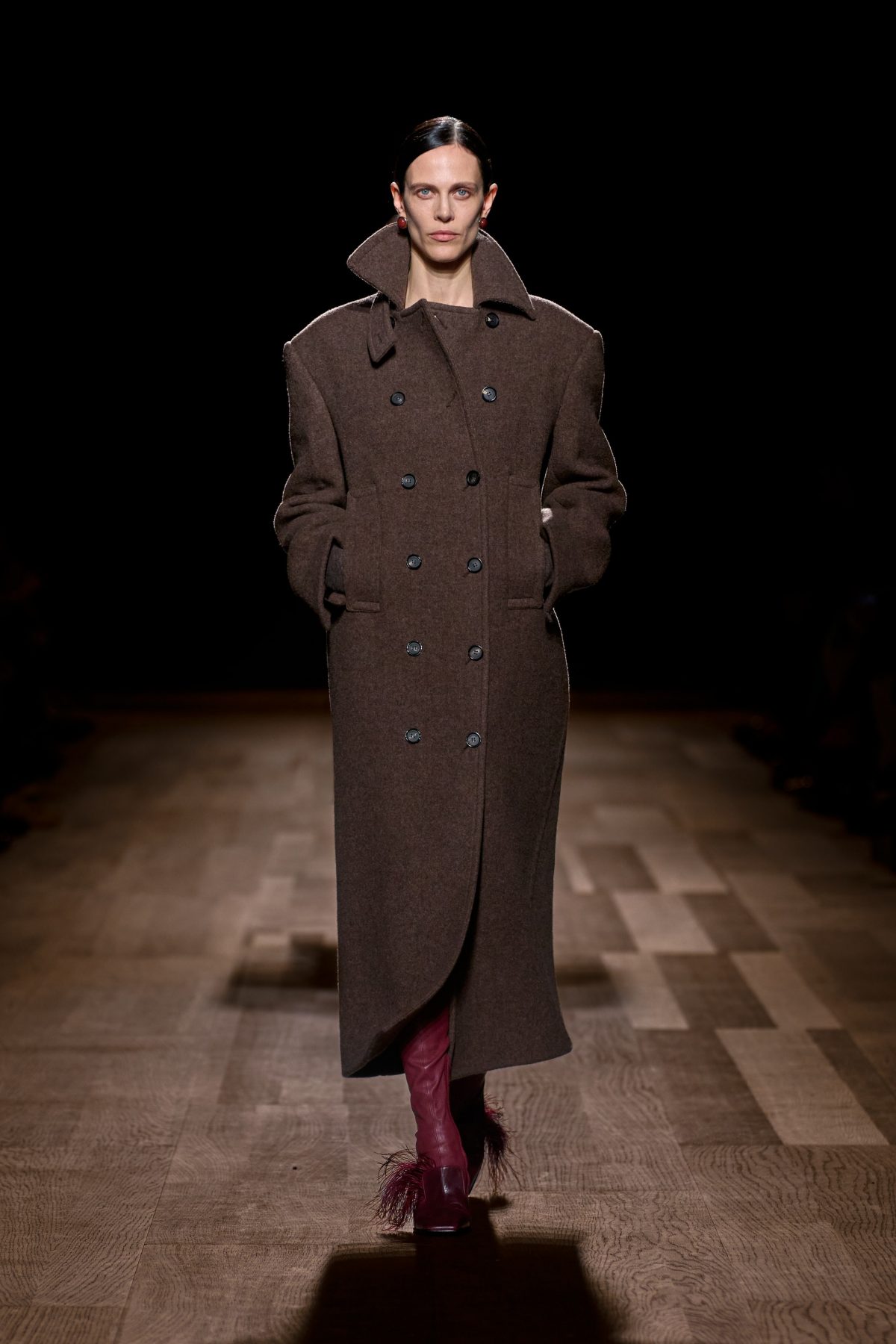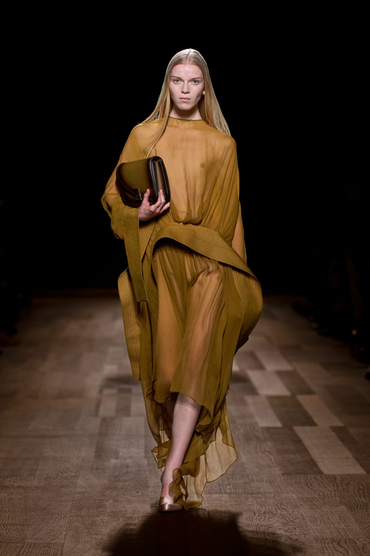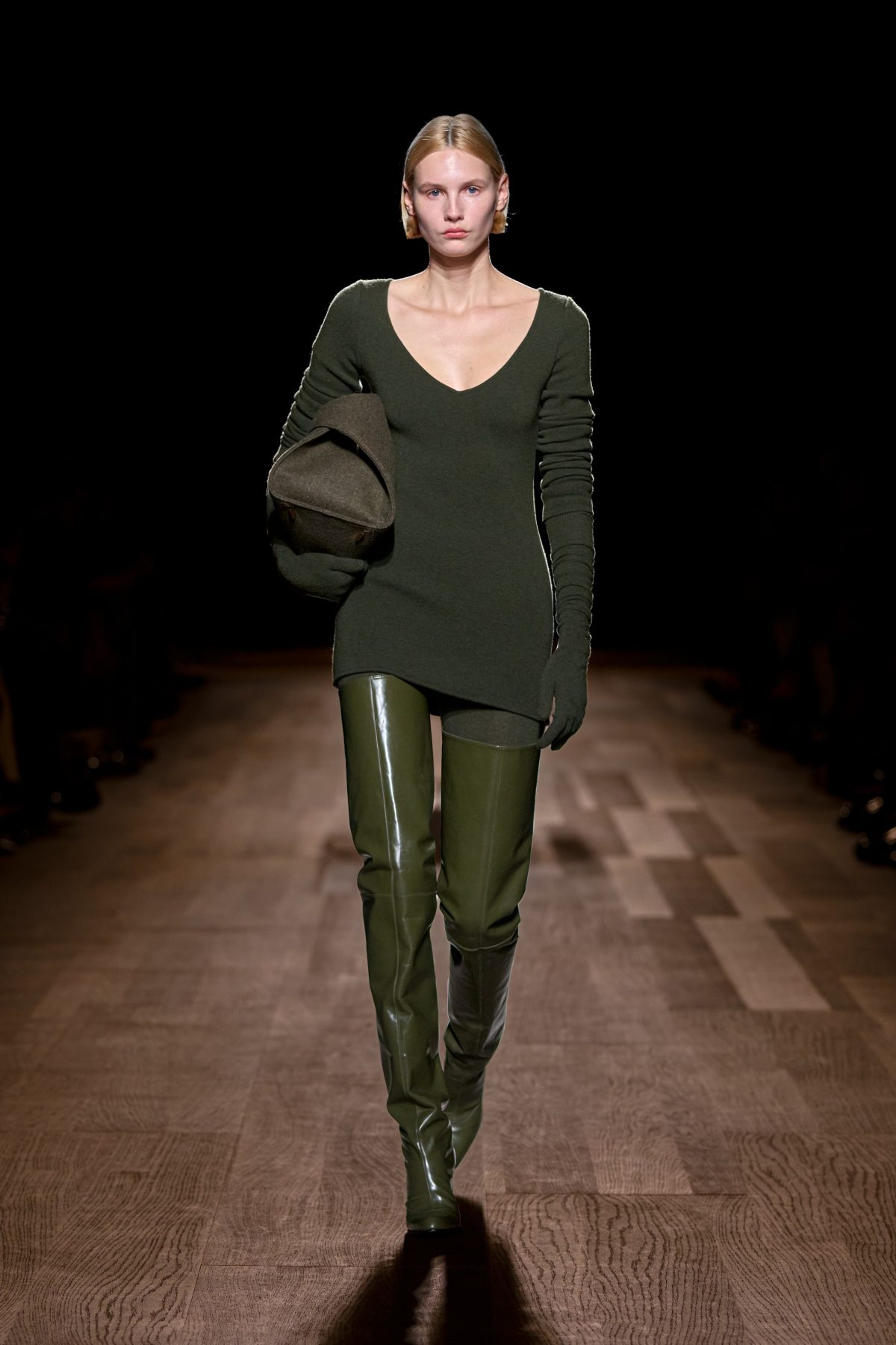 就整體趨勢而言,單色系趨勢在這裡依然能夠感受到餘熱,不論是鮮豔的亮紅和莓紅,還是柔和的橄欖綠和山楂紅,都佔據主場。整個系列猶如流水,絲滑細緻,乳膠皮質、羊毛大衣增添奢華氣質,但又不會產生遙遠的距離感。