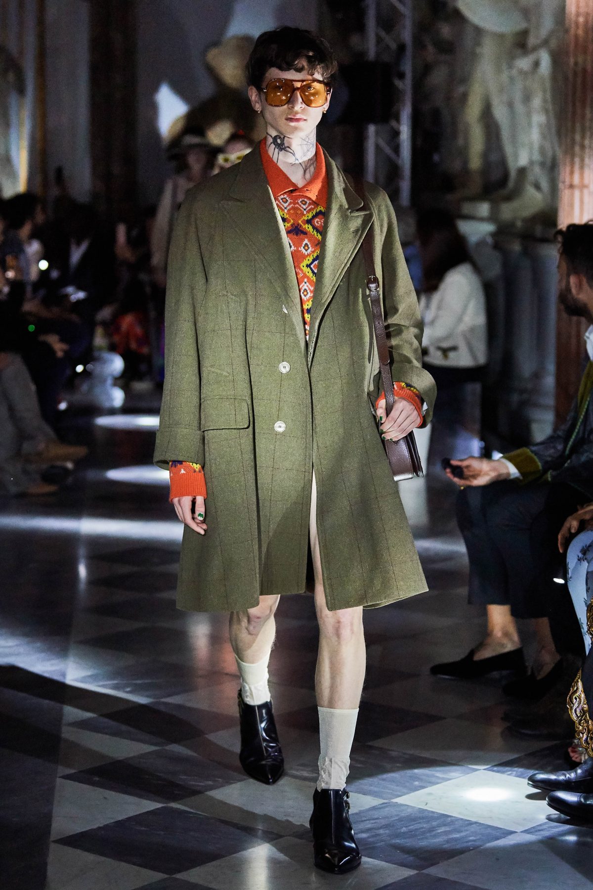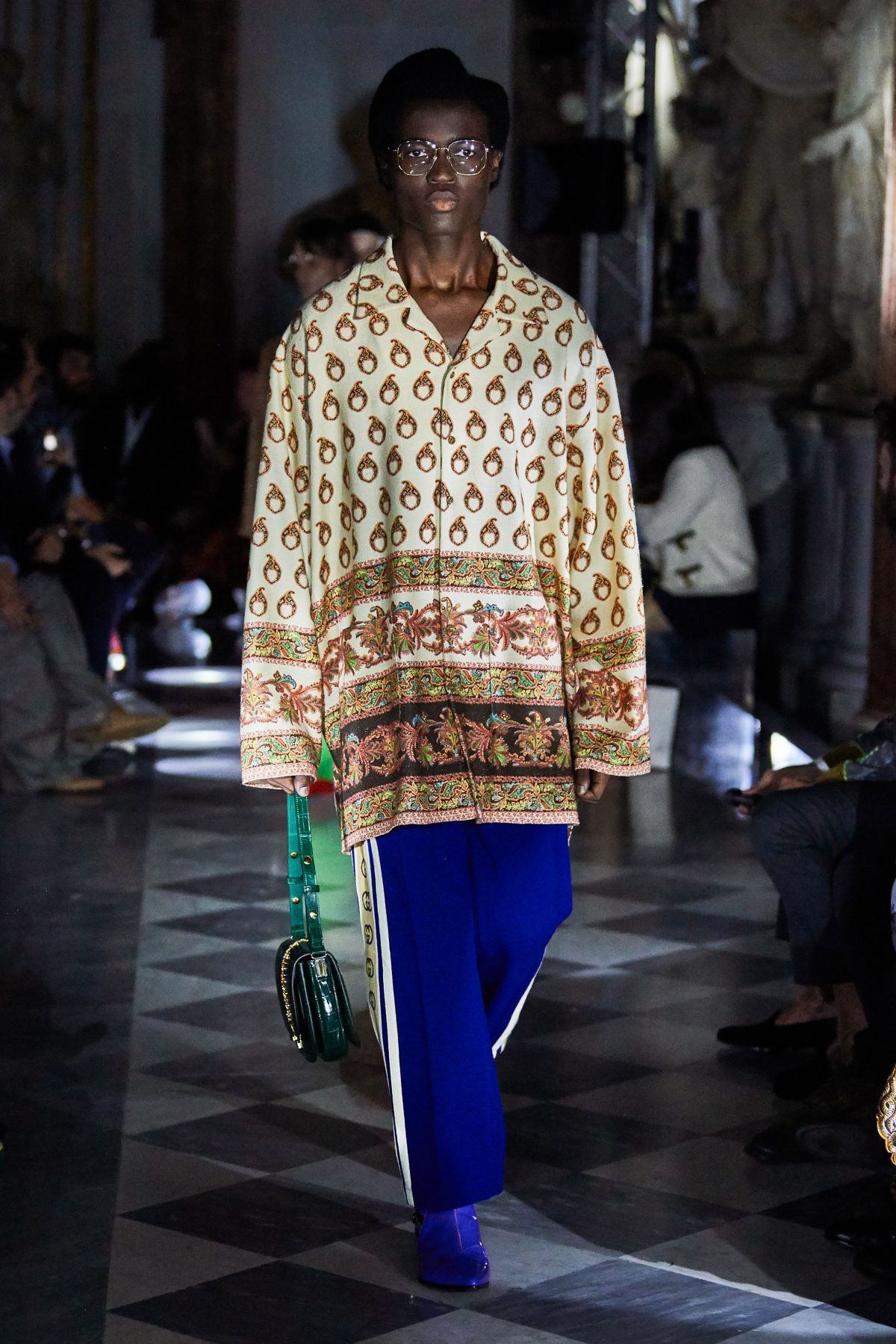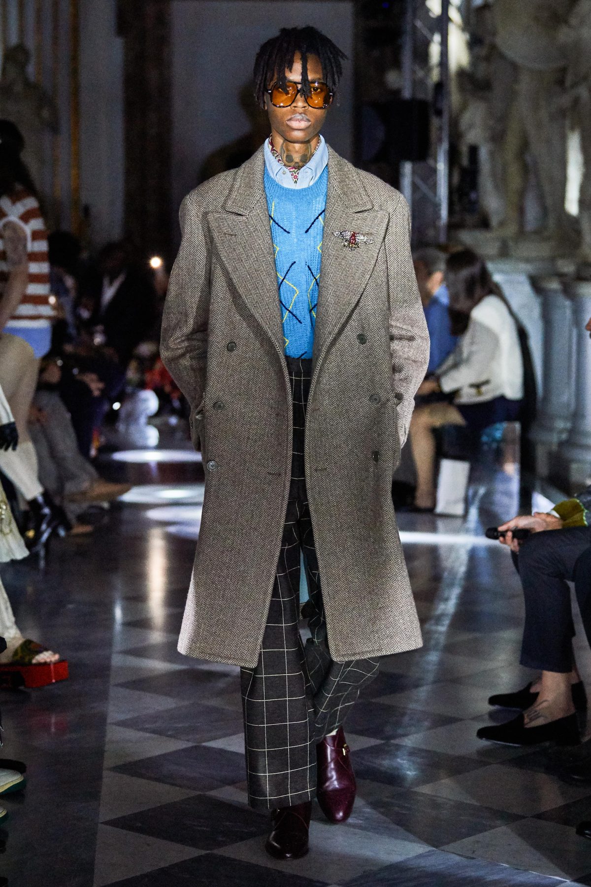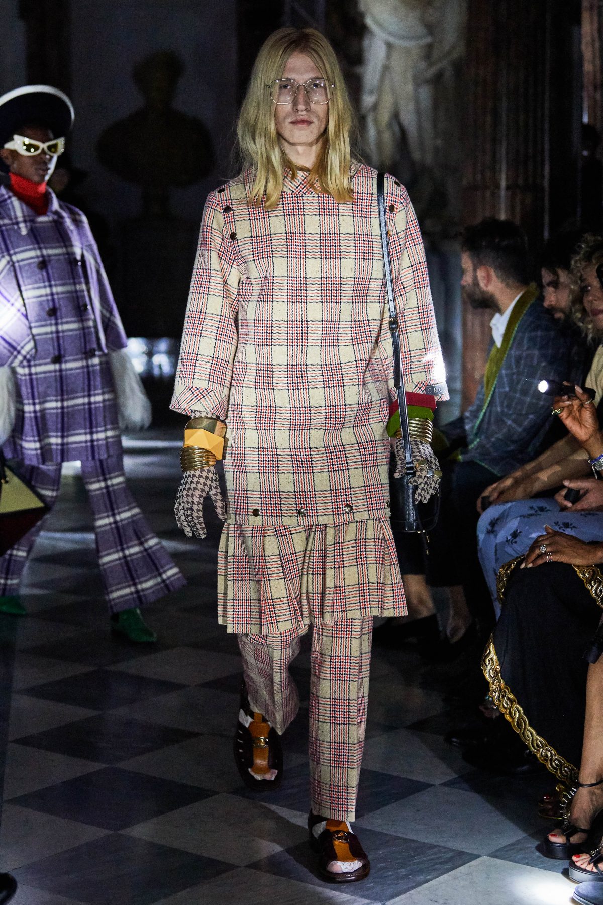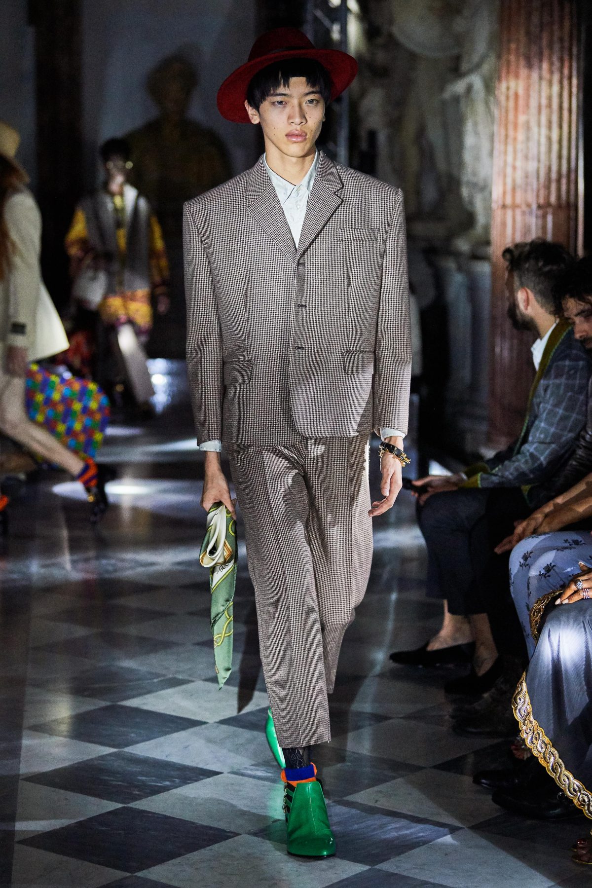 除了絢爛奪目的女裝服飾,男裝的格紋西裝外套、絲絨面料、燈芯絨喇叭褲互相呼應1970年代的氛圍,不過仔細看,Michele 筆下不再區分男女服裝或搭配外表,女性可以中性化、男士可以女性化,任何人都能配搭出錯綜複雜的柔和優雅風格,毫無遺和感,也從不讓人失望。