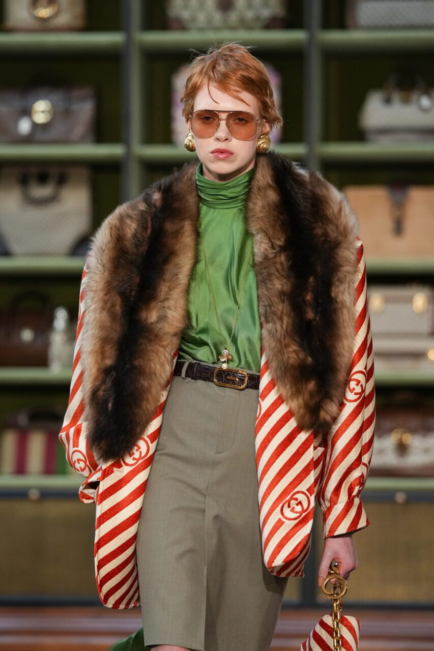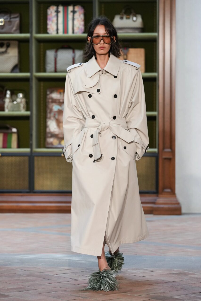 與Pomellato合作的高級珠寶系列Monili也首度登場,皮革、黃金與密鑲鑽石鑲嵌而成的標誌性作品。在時裝展的最後,一個象徵性的動作:模特兒們走到廣場上,將Gucci帶回到城市的生活中心。因為Gucci就是佛羅倫斯,佛羅倫斯就是Gucci。