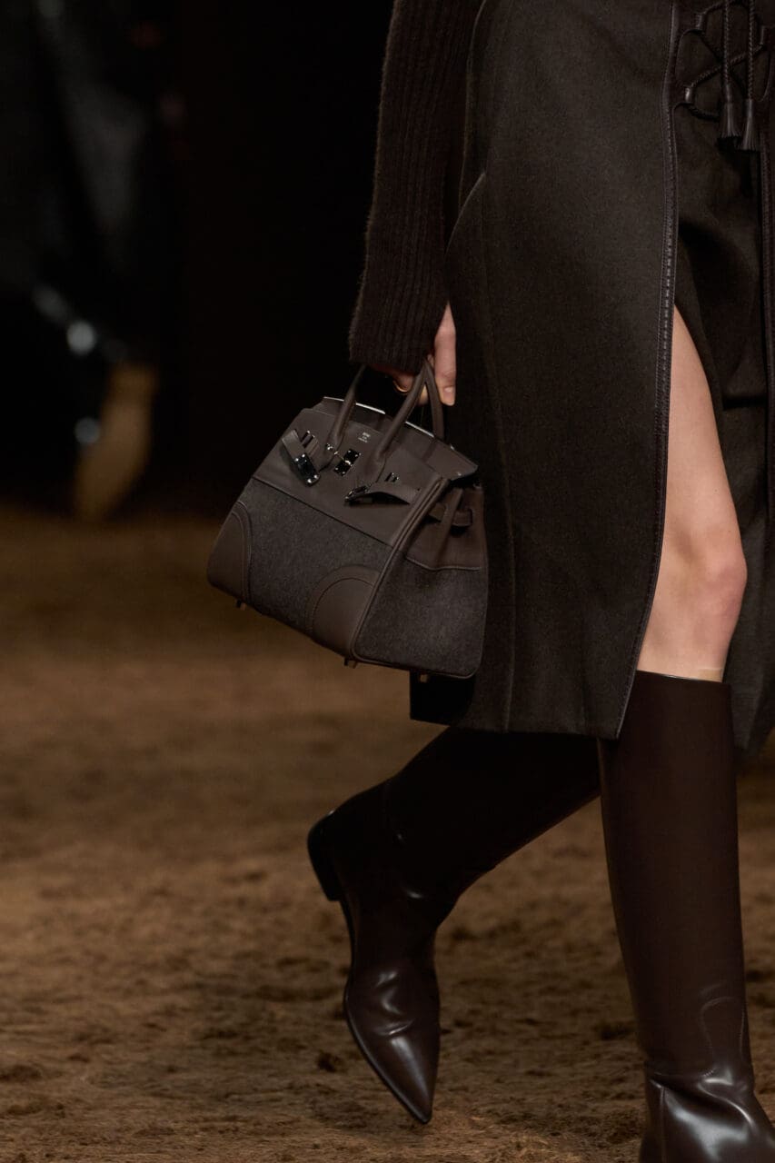 「這一切關乎自信與力量,關乎性感與精緻——並且完全掌握它。」在國際婦女節這天,聽到Nadège Vanhée說出這番話,實在令人振奮。更令人驚豔的是,她所推出的深色、線條俐落的系列作品,搭配平底尖頭靴與高跟雕花鞋,漫步於Hermès的舞台上。