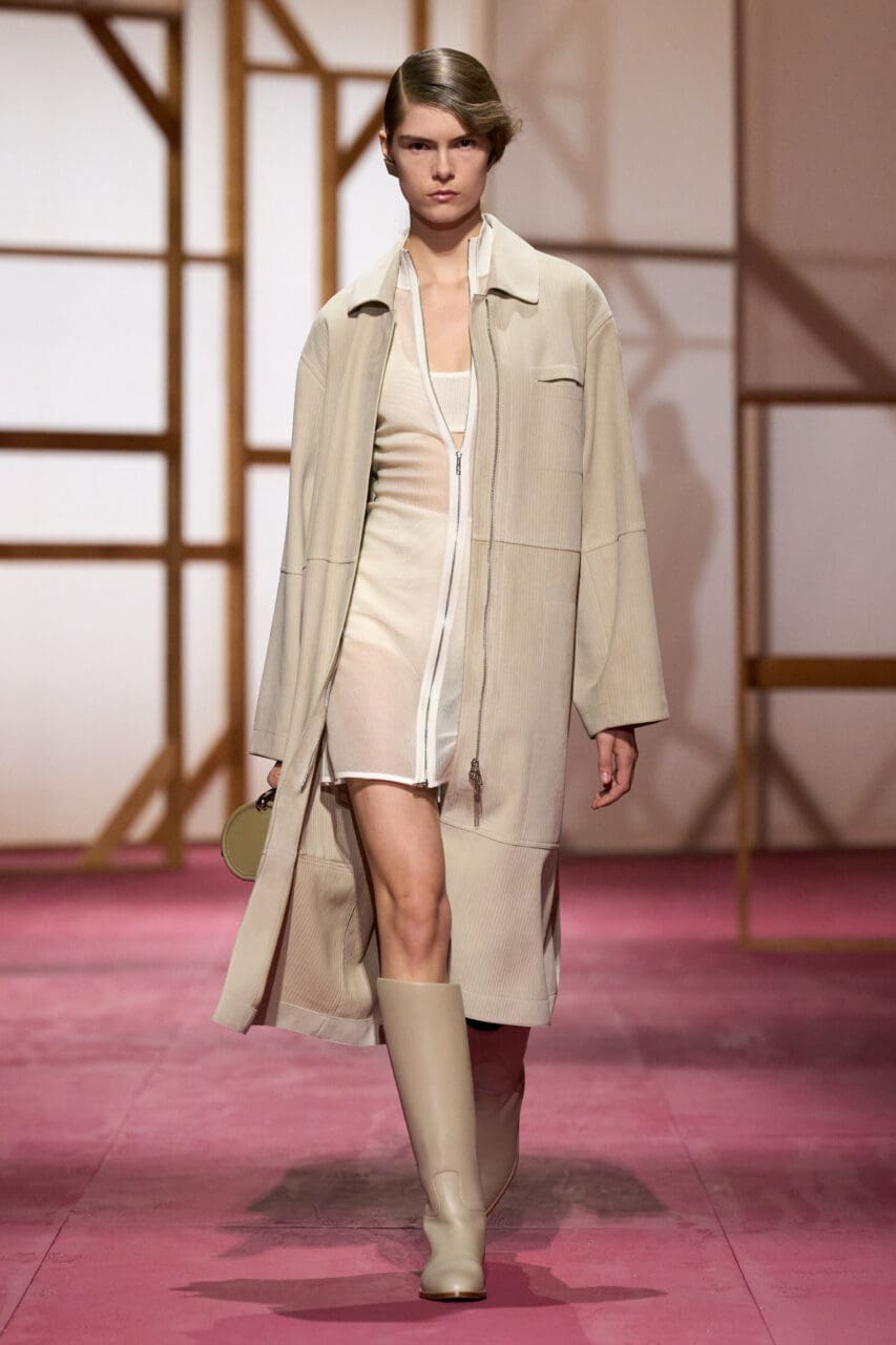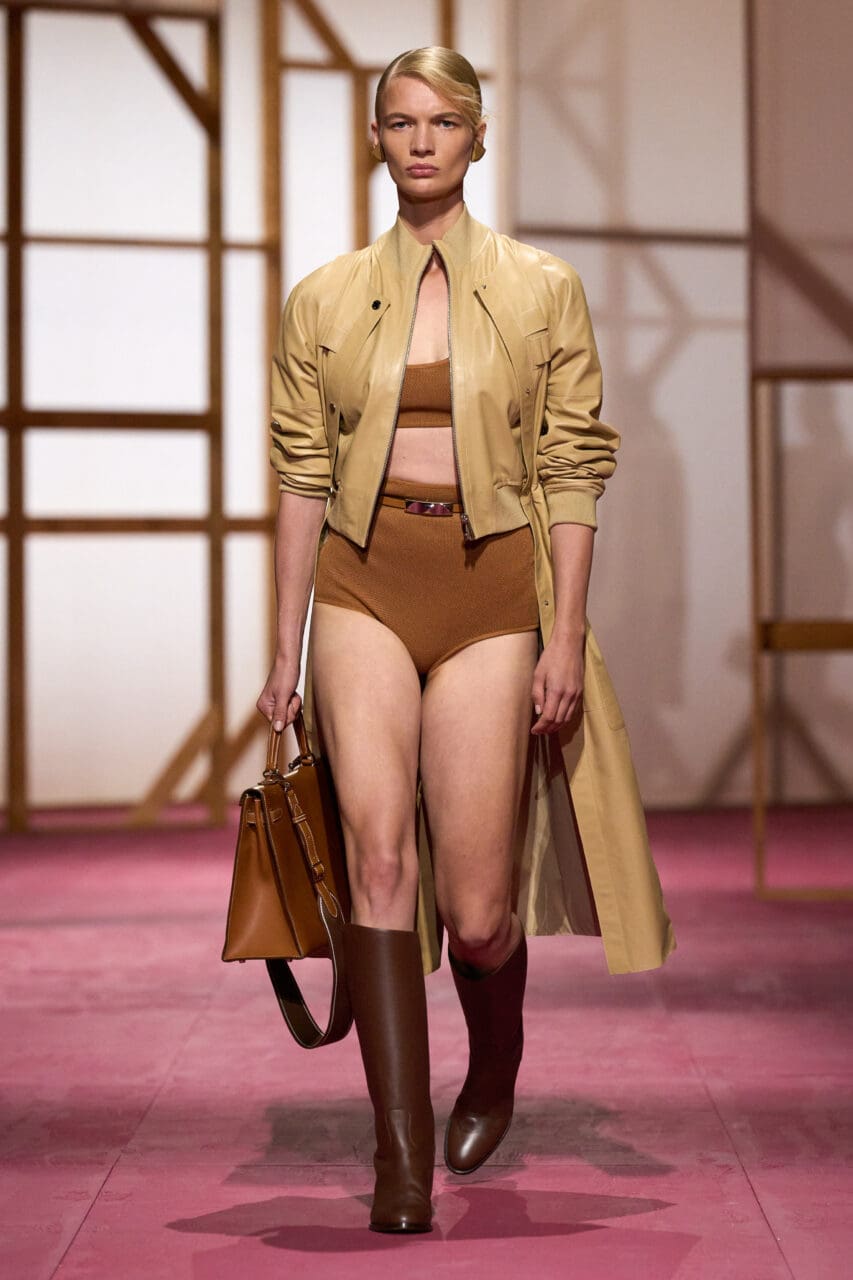 Hermès 2025 春夏系列完美地融合了傳統工藝與現代精緻,聚焦實用美學,女性氣質游走於溫柔、張力與堅韌之間。這種多元的女性氣質微妙而強大,既可見又可感受,且能被輕鬆掌控。