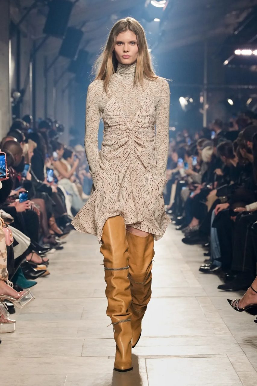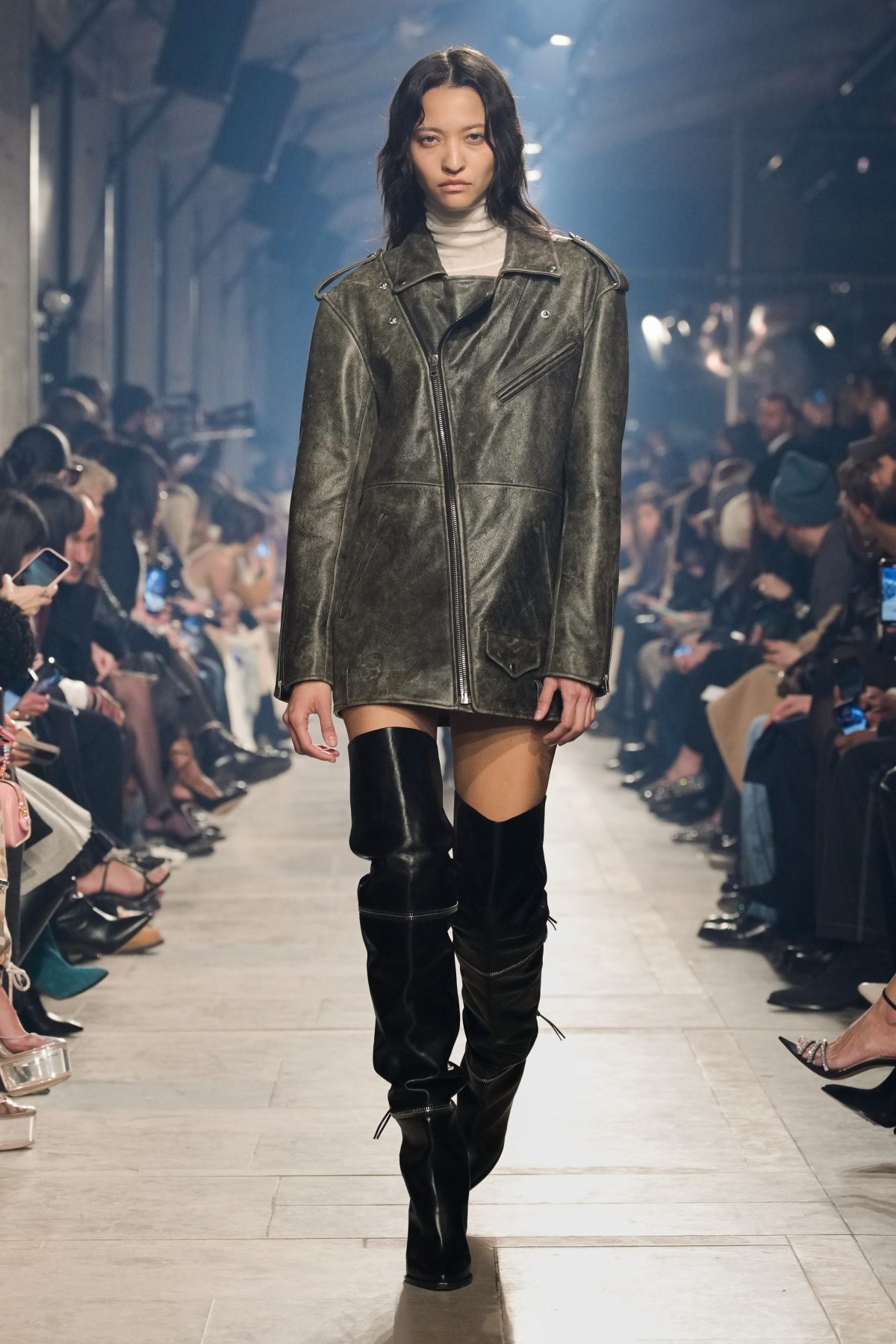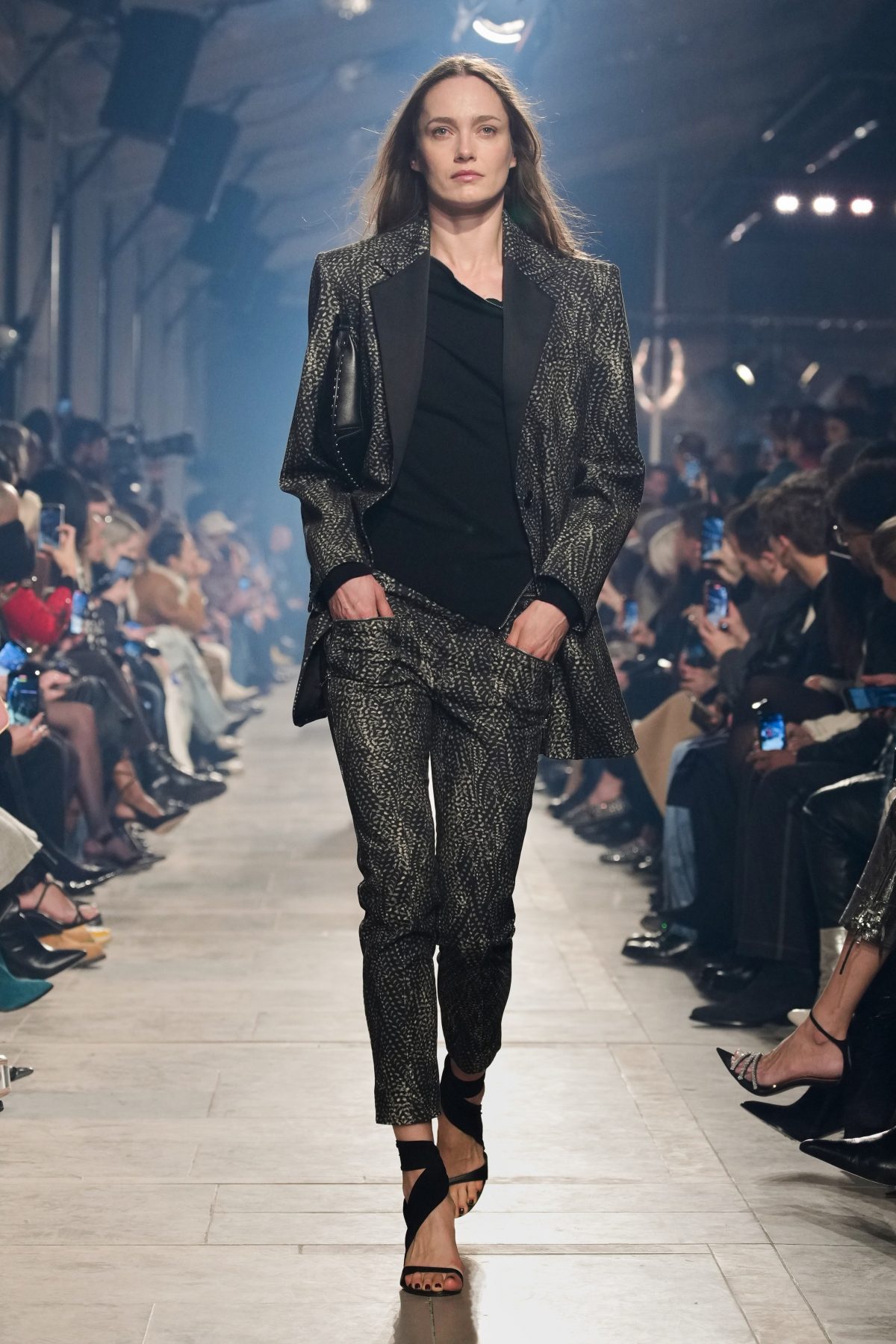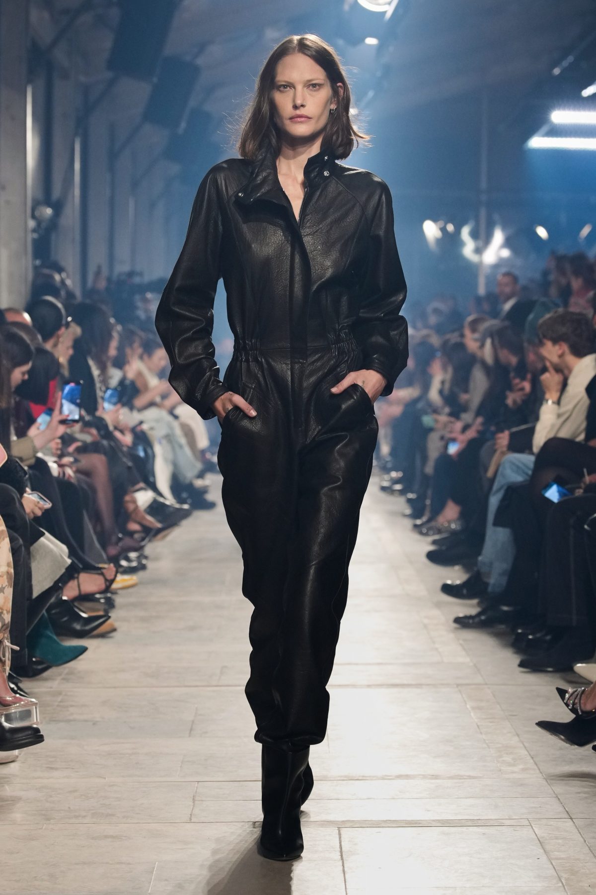 Isabel Marant全新系列帶點叛逆不敬,展現出打破常規的性感姿態,舒適的針織衫和大衣包裹身體,為秋冬帶來溫暖感。藏外,系列主打皮革,配以金屬拉鍊,令造型昇華。拉鍊不但應用於外套和口袋,亦化作點綴領口或連身裙分衩的精巧細節,盡顯設計心思。值得一提的是,流麗飄逸的連身裙採用鏤空或低領口設計,透薄的面料若隱若現,不經意地突顯出身材。柔軟嫵媚的面料,與厚重的麻花扭紋針織、染色牛仔服、羊毛和 shearling 形成對比。