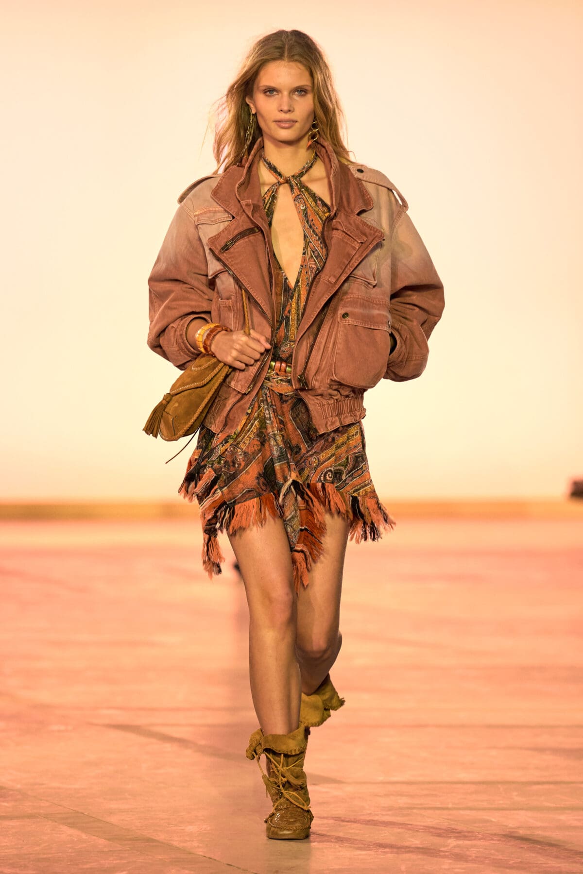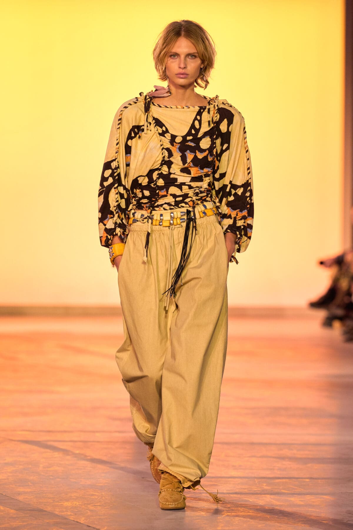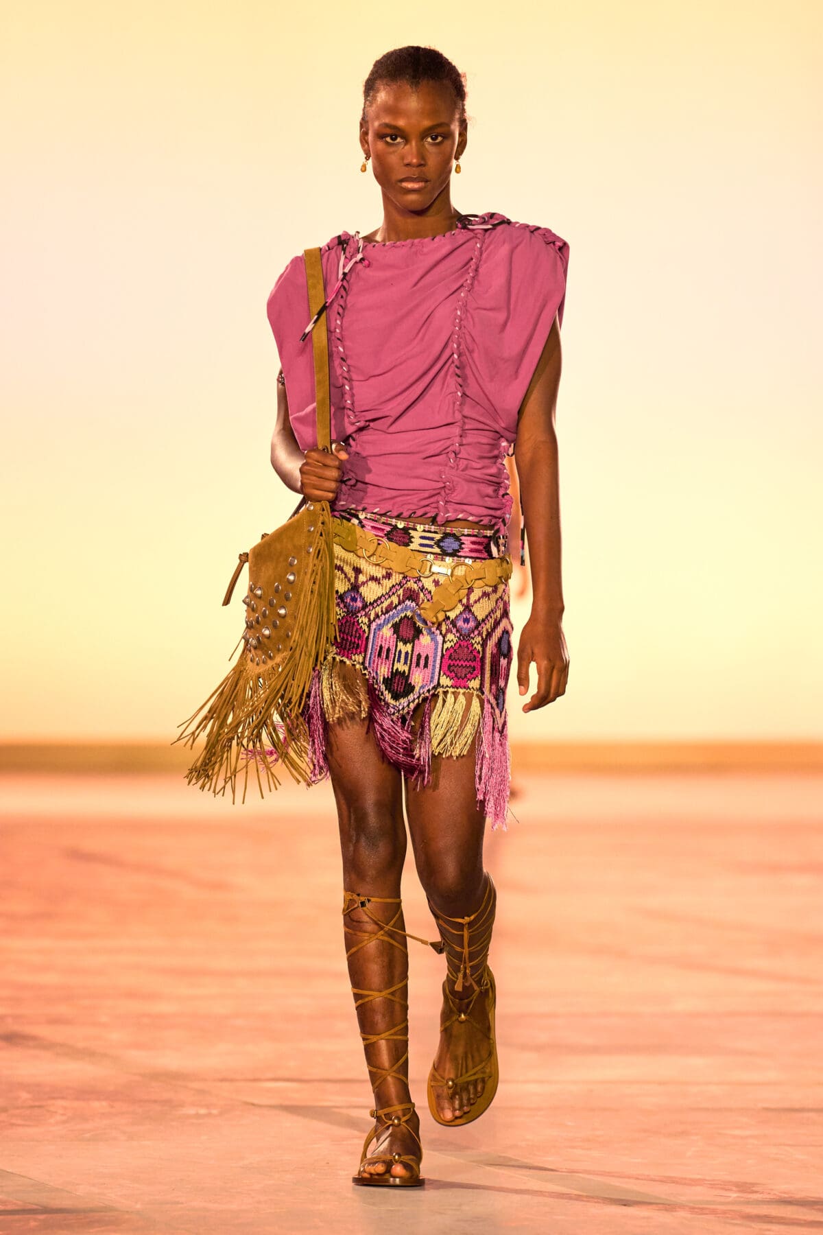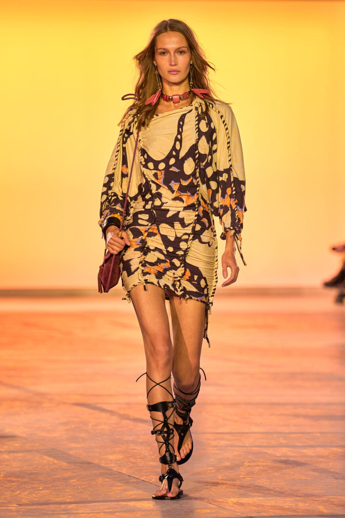 「我想回到我們的根基,做一些真正手工藝的東西,這是關於一群非常強大的女性。而且有一點亞馬遜的氛圍。」Marant在《Vogue》Runway的採訪中說。系列的熱帶元素引人注目,如絲線編織圖案針織裙,靈感來自南美的蝴蝶。品牌工藝和DNA非常顯著,彩虹色調流蘇的絲質外套、米色和抽象印花拼接而成的上衣,還有由銀色珍珠光澤物料構成的金屬灰色長裙,透出身體肌膚,賦予性感又慵懶的氣息。